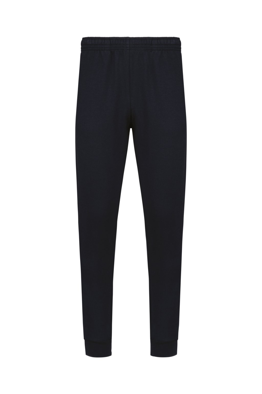 Rovný střih, elastický pas s plochou stahovací šňůrkou, žebrované manžety na koncích nohavic, 2 boční kapsy, zdrsněná vnitřní strana