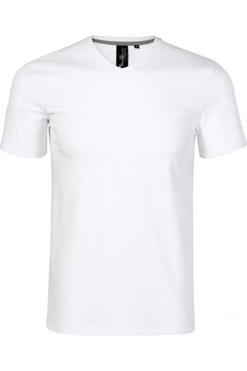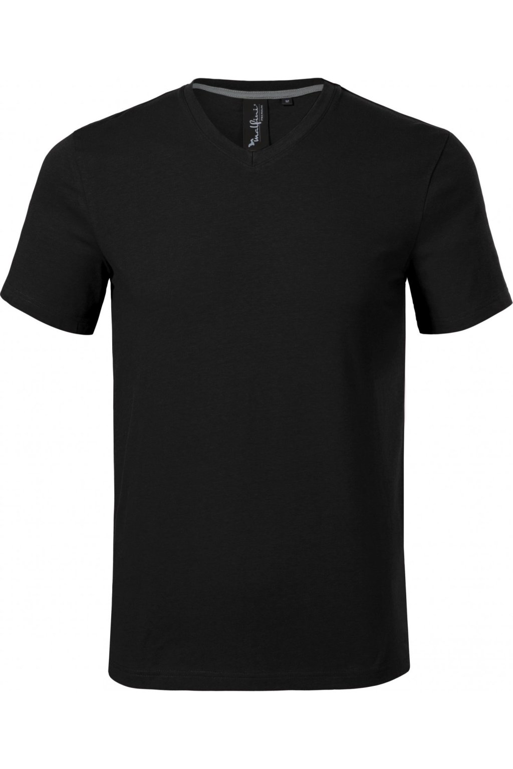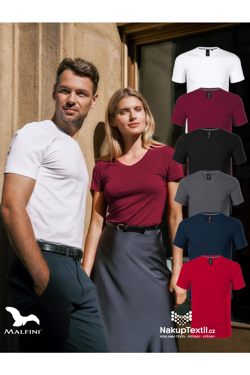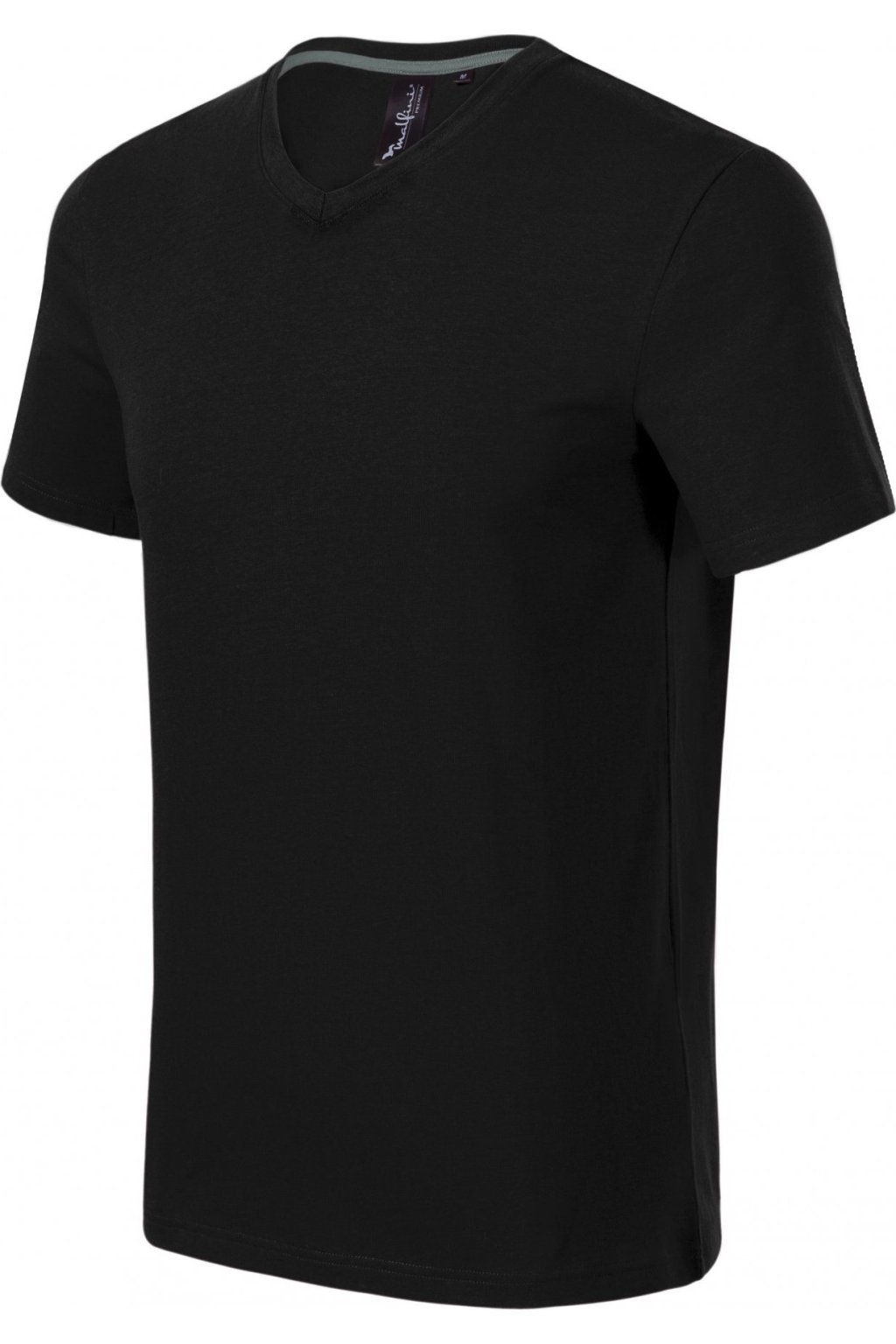 strečový materiál udržující stálost tvaru, přiléhavý střih s bočními švy, výstřih ve tvaru V, úzký lem průkrčníku z žebrového úpletu 1:1 s 5 % elastanu, vnitřní část průkrčníku začištěna kontrastní páskou, zpevnění ramenních švů páskou