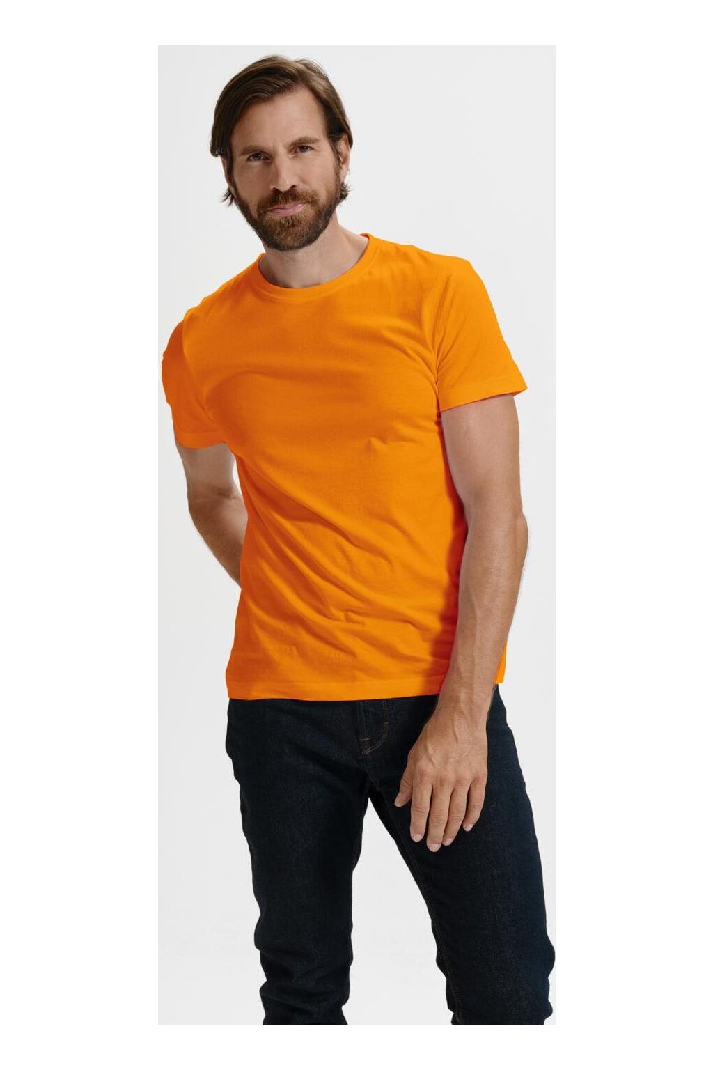 Vyrobené je z jemného úpletu Single Jersey ze 100% bavlny se silikonovou úpravou, která zajišťuje hladký povrch, příjemný dotek a delší životnost. Gramáž 160 g/m² je ideální pro celoroční nošení i potisk. Tričko má tubulární střih, takže perfektně sedí na většině postav, a úzký lem průkrčníku z žebrového úpletu 1:1 s 5 % elastanu, který drží tvar i po mnoha praních. Zpevňující páska od ramene k rameni zvyšuje odolnost při každodenním používání.
