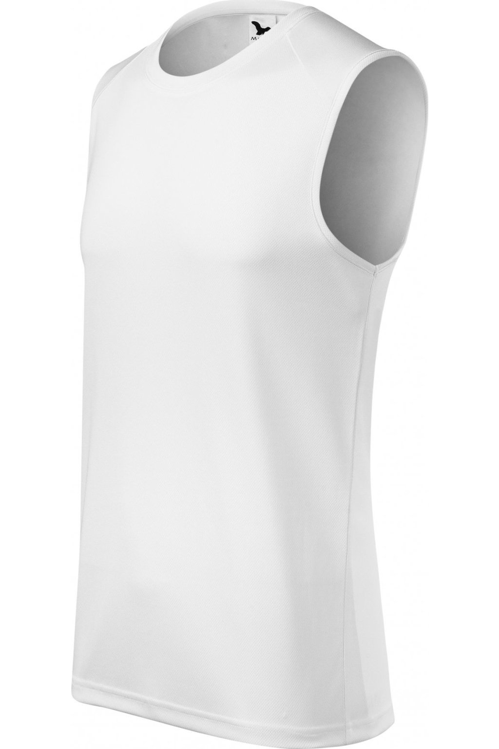 rychleschnoucí materiál, ideální pro sport a pohybové aktivity, střih s bočními švy, ramenní švy předsunuté na přední díl, lem průkrčníku z vrchového materiálu, vnitřní část průkrčníku začištěna páskou z vrchového materiálu, průramky lemovány vrchovým materiálem, vhodné pro sublimační potisk (světlé barvy)