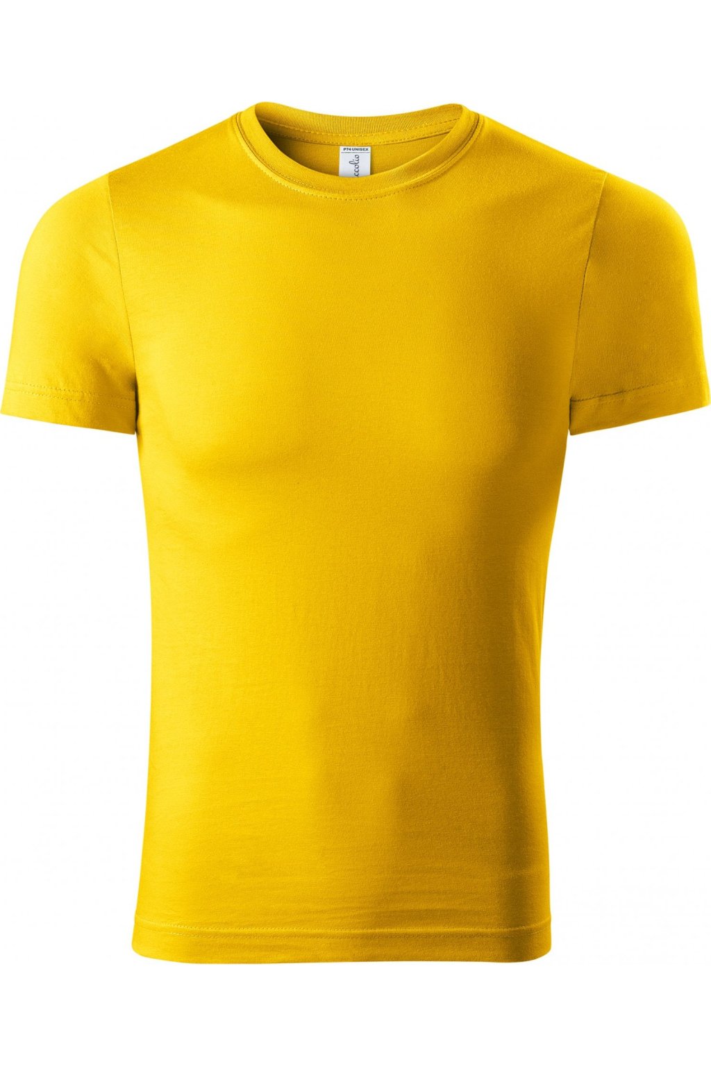 tubulární střih, lem průkrčníku z žebrového úpletu 1:1, vnitřní část průkrčníku začištěna páskou z vrchového materiálu, zpevnění ramenních švů páskou, odtrhávací etiketa