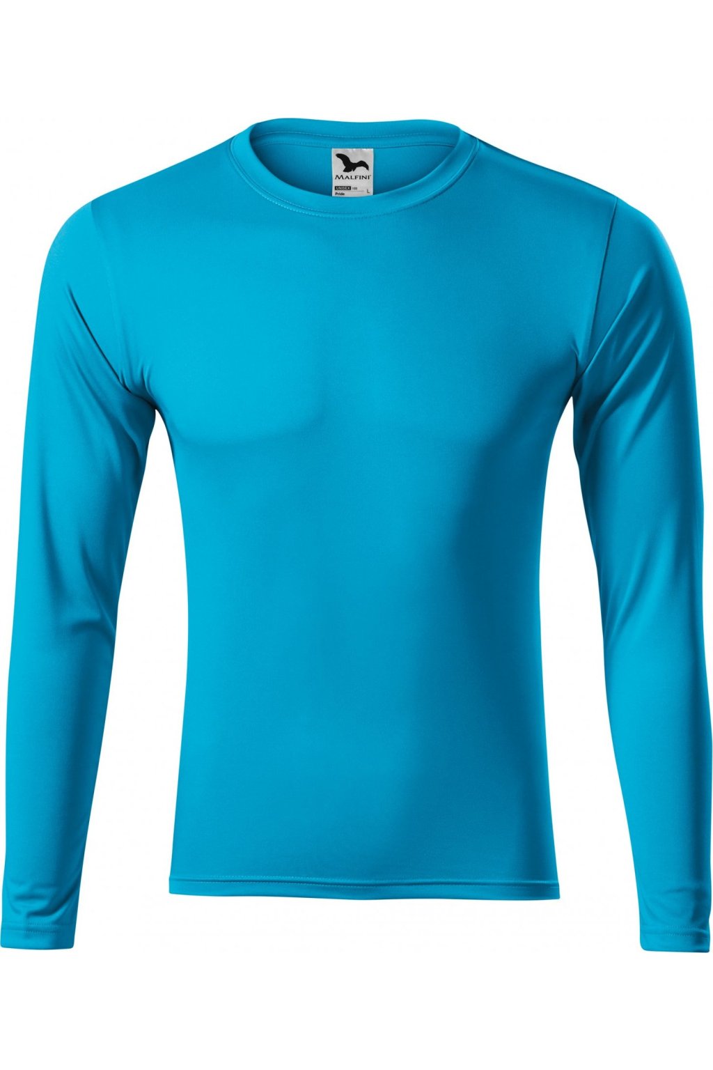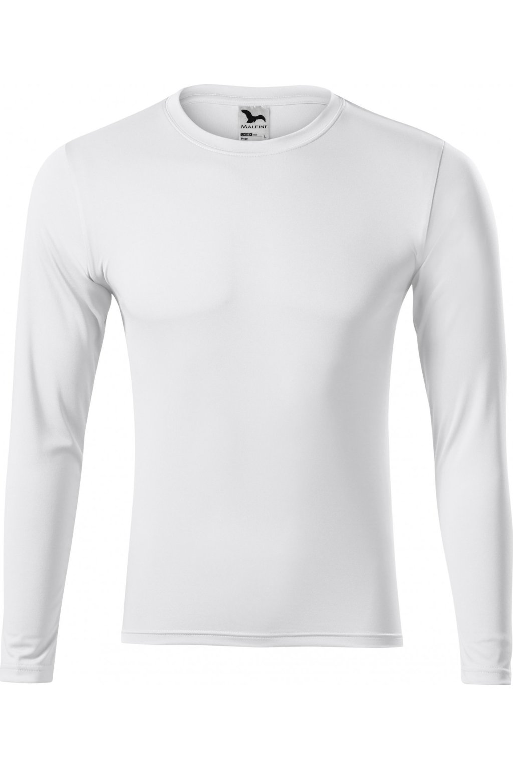 hladký rychleschnoucí materiál, střih s bočními švy, lem průkrčníku z vrchového materiálu, zpevňující páska od ramene k rameni, dlouhé rukávy, ideální pro sport a pohybové aktivity, vhodné pro sublimační potisk (světlé barvy)