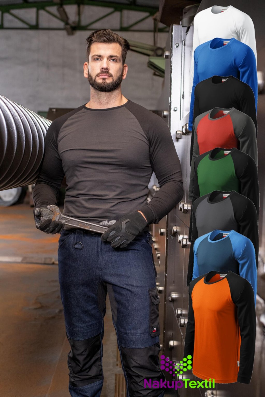 dvoubarevné provedení (vyjma barev 00, 01, 05), střih s bočními švy, úzký lem průkrčníku z žebrového úpletu 1:1 s 5 % elastanu, vnitřní část průkrčníku začištěna páskou z vrchového materiálu, dlouhé raglánové rukávy s manžetou, manžeta z žebrového úpletu 1:1 s 5 % elastanu, Přesunutí produktu pod značku RIMECK®. V rámci jedné zásilky se mohou objevit produkty s novým i původním brandingem. Tato skutečnost není důvodem k reklamaci.