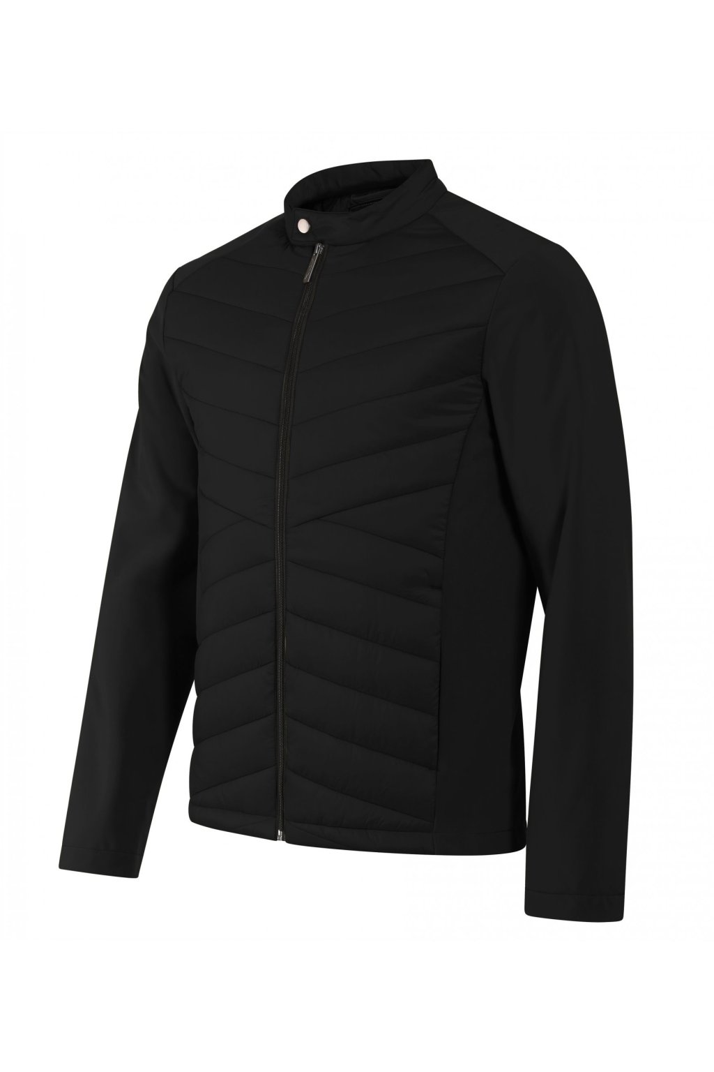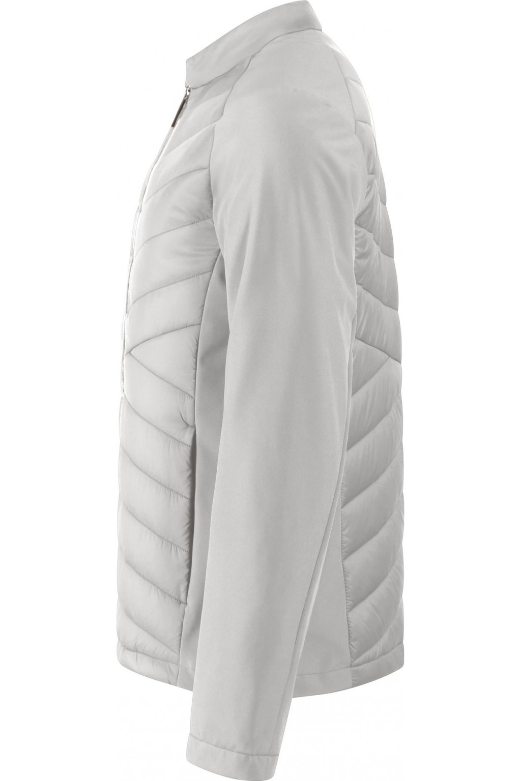 kombinace prošívaného a softshellového materiálu, rovný střih s bočními díly, stojáček na druk, celopropínací spirálový zip , boční kapsy se spirálovým zipem, vnitřní náprsní kapsa na zip, vstup pro branding v podšívce zadního dílu
