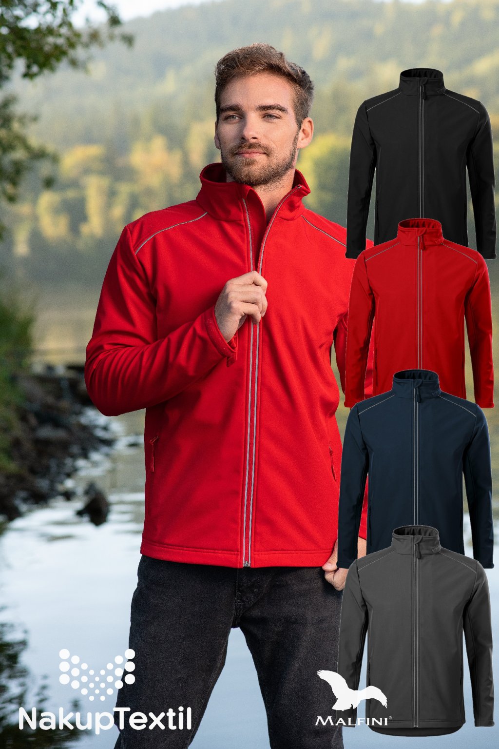 3vrstvý softshell s membránou, vsadky na ramenou, celopropínací reverzní spirálový zip s krytkou brady, lemy rukávů nastavitelné suchým zipem, kapsy s reverzním spirálovým zipem, vnitřní náprsní kapsa na zip, vnitřní kapsa na zip se vstupem pro branding, dolní lem na stažení elastickou šňůrkou, tvarovaný a mírně prodloužený zadní díl , reflexní prvky, vnitřní fleece s antipilingovou úpravou, Údržbové informace pro softshellový materiál