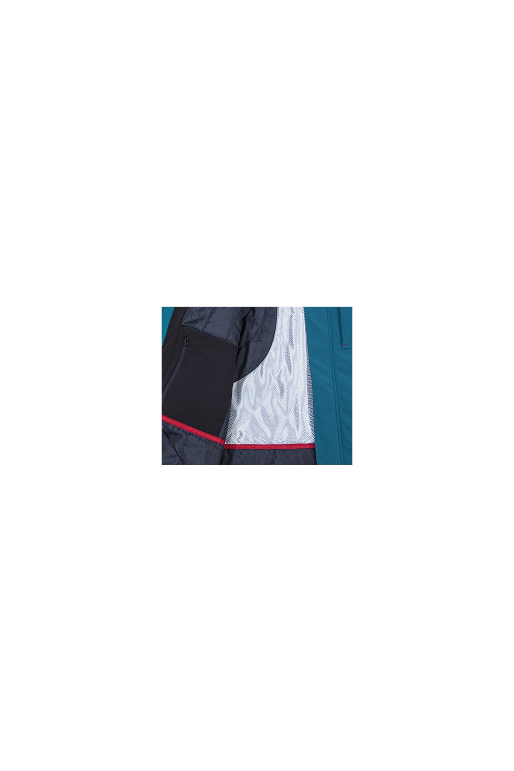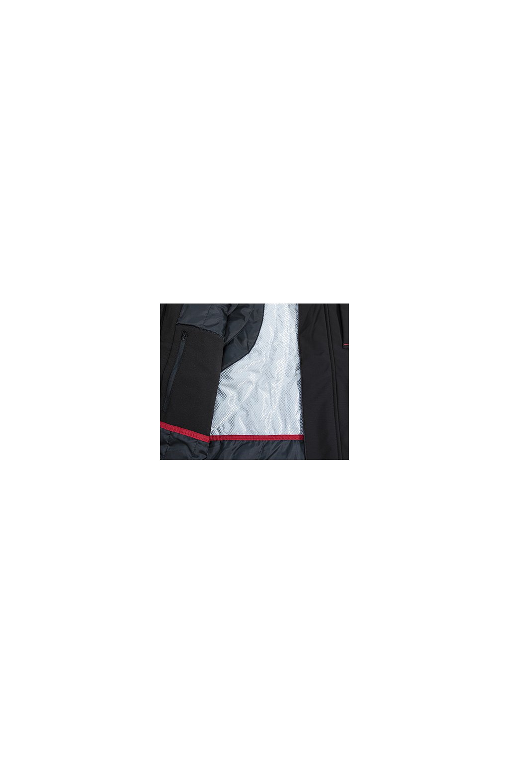 Materiál Softshell (94 % polyester, 6 % elastan) s TPU membránou. Voděodolnost 10 000 mm. Vnitřní zateplení a termoreflexní zóna. Odnímatelná kapuce.
