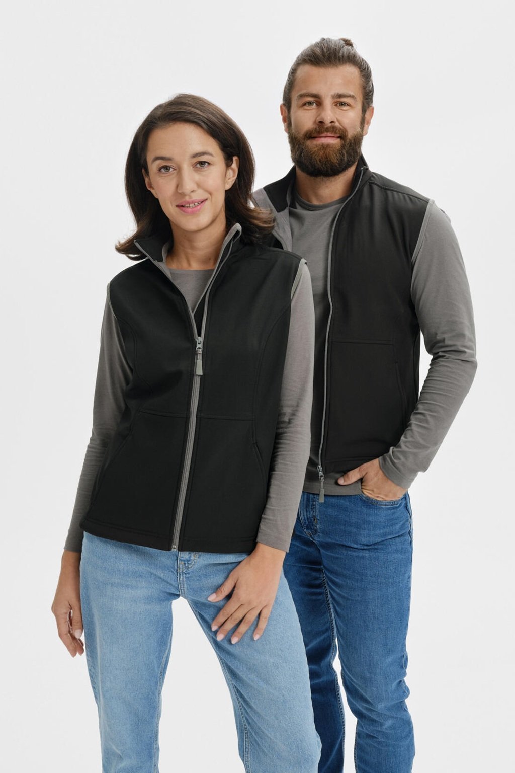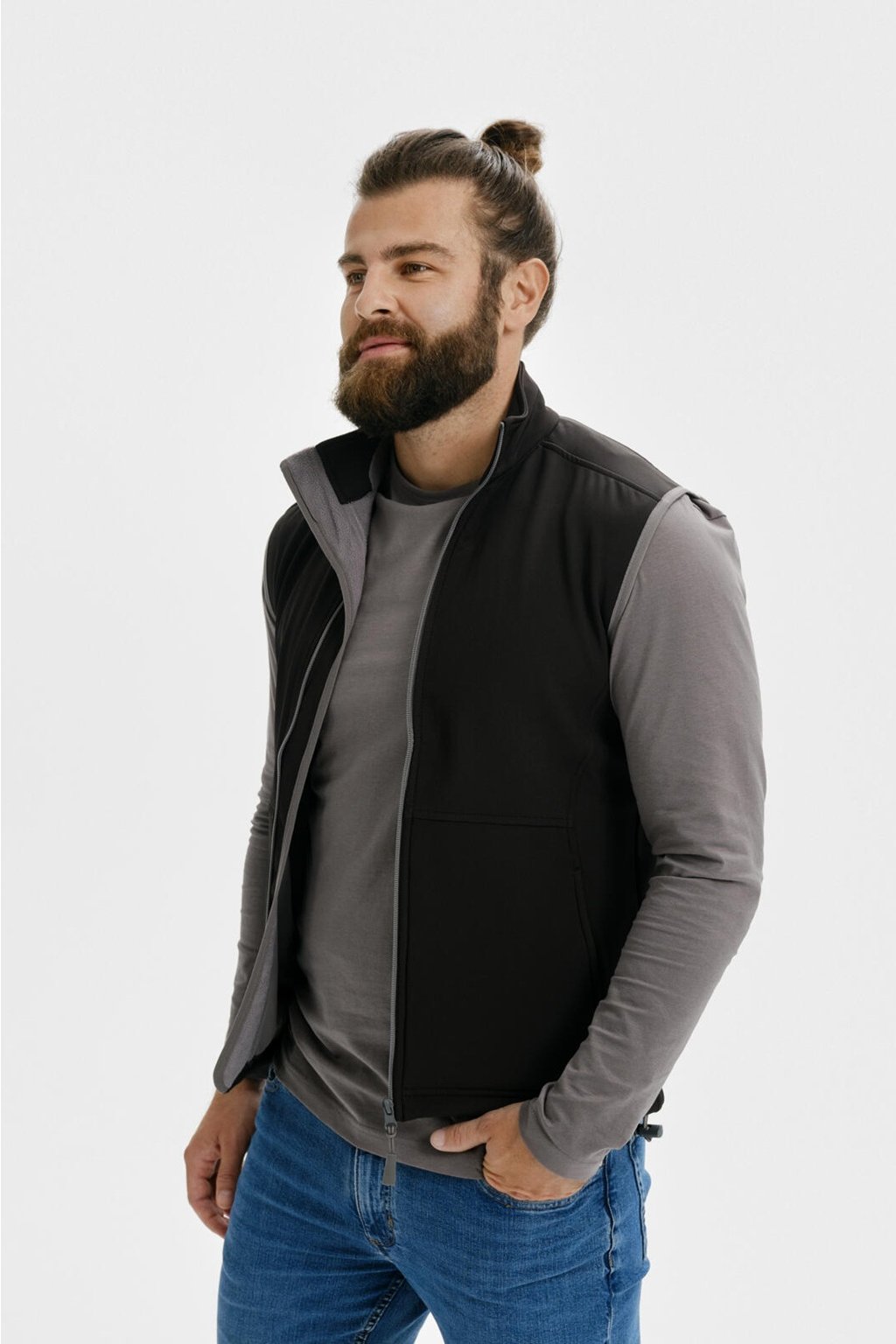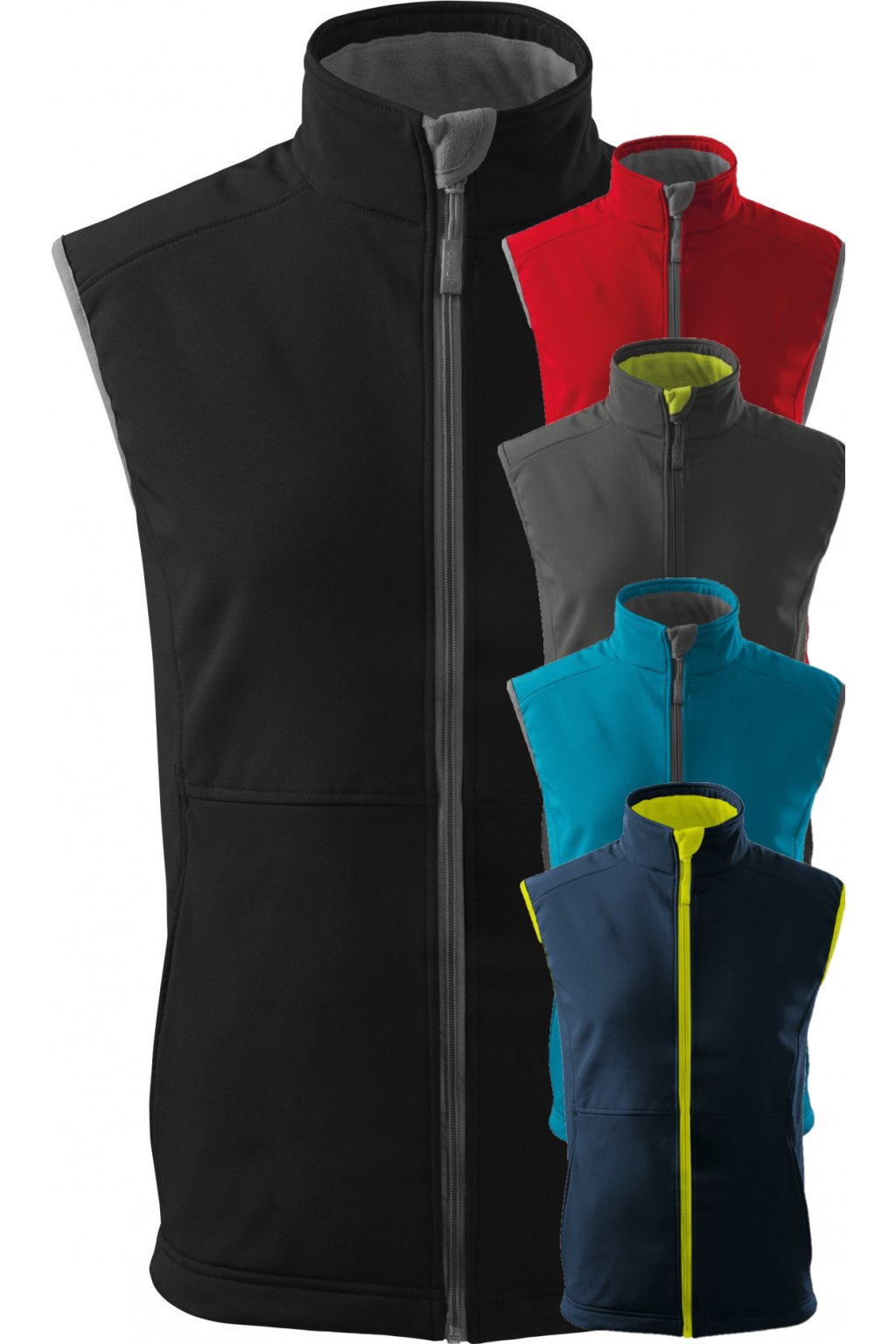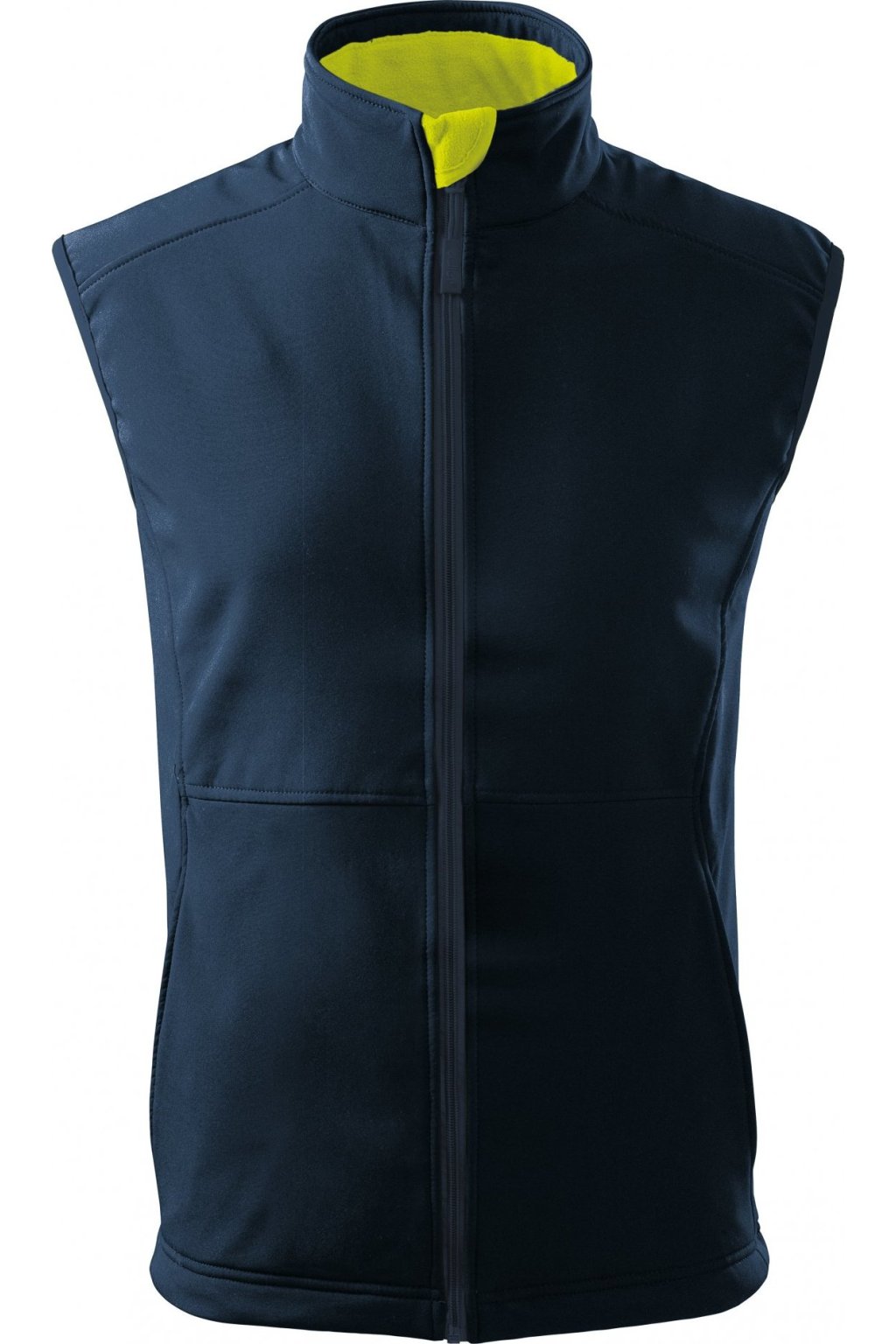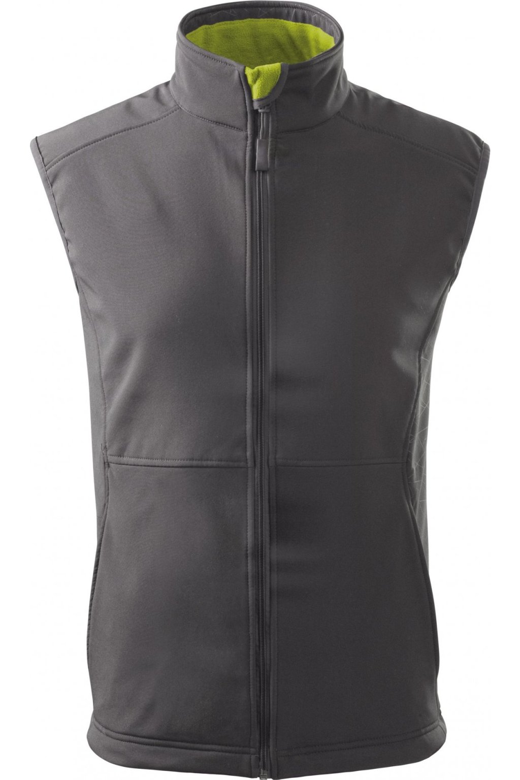 Vesta je vyrobena z materiálu Softshell (94 % polyester, 6 % elastan) o gramáži 280 g/m2. Vnitřní vrstvu tvoří fleece, který zajišťuje příjemné teplo a pohodlí. Díky elastanu je vesta pružná a neomezuje v pohybu. Dvě boční kapsy na zip jsou dostatečně prostorné. Dolní lem se dá stáhnout elastickou šňůrkou.