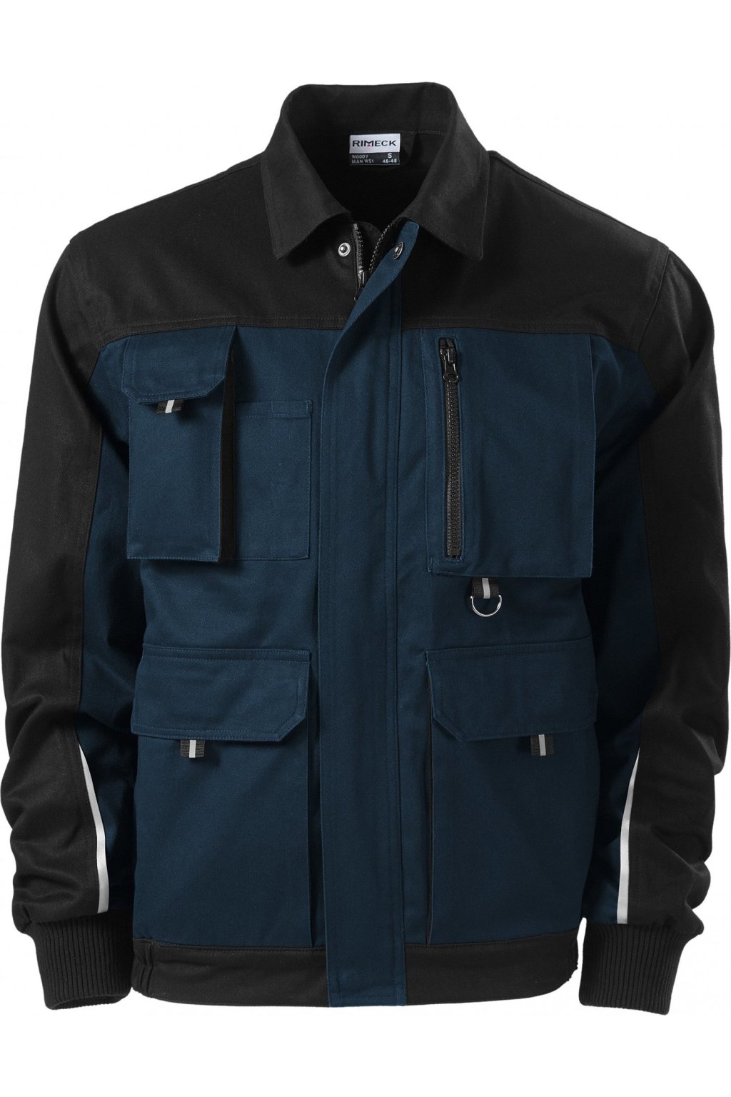 Materiál je kepr (100% bavlna, 270 g/m2). Celopropínací kostěný zip s klopou. Multifunkční kapsy. Elastické manžety na rukávech.