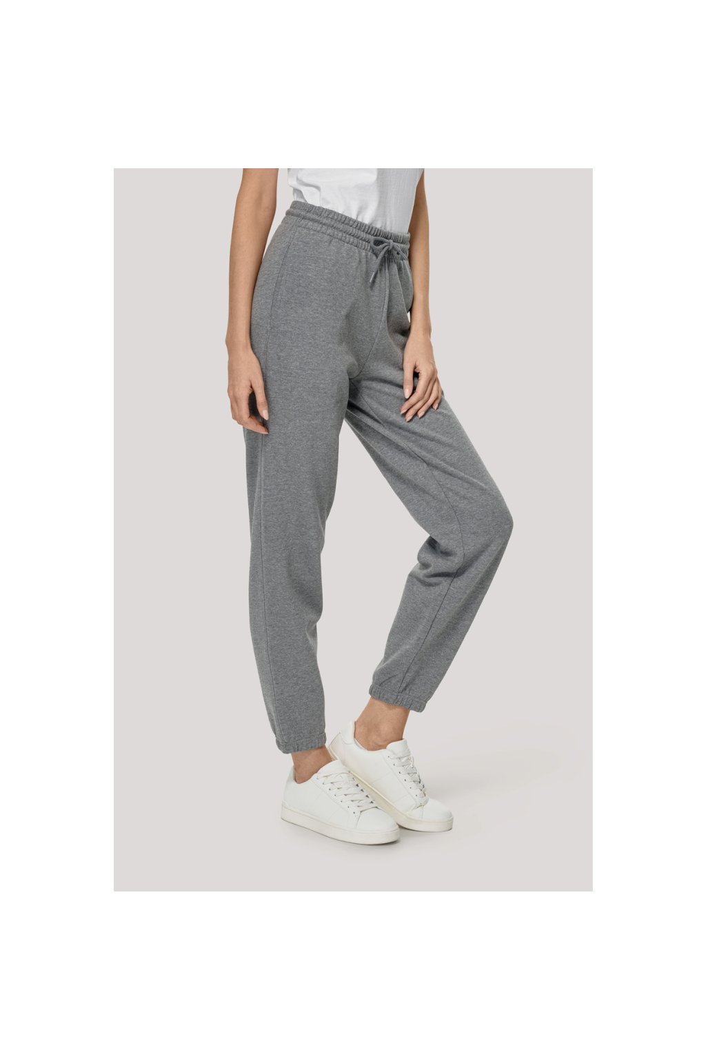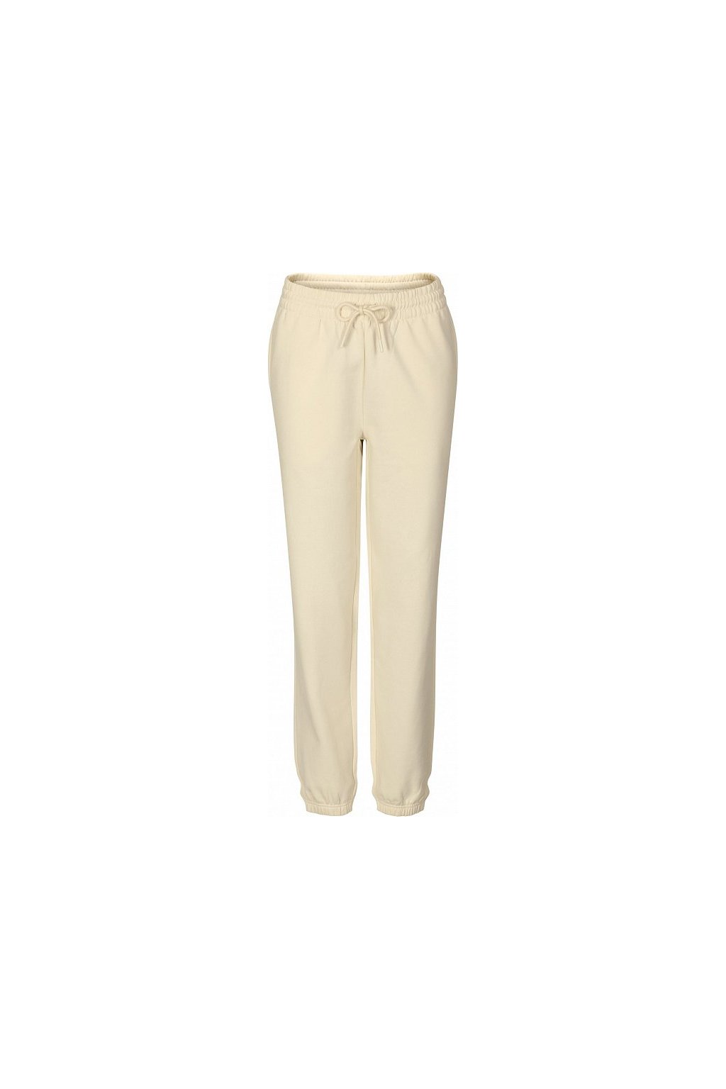 bez etikety - připraveno na rebranding, volnější střih nohavic, neutrální velikostní štítek , pasový límec s pruženkou, na stažení šňůrkou, lištové kapsy v bočních švech, dolní lem stažený pruženkou, vnitřní strana počesaná