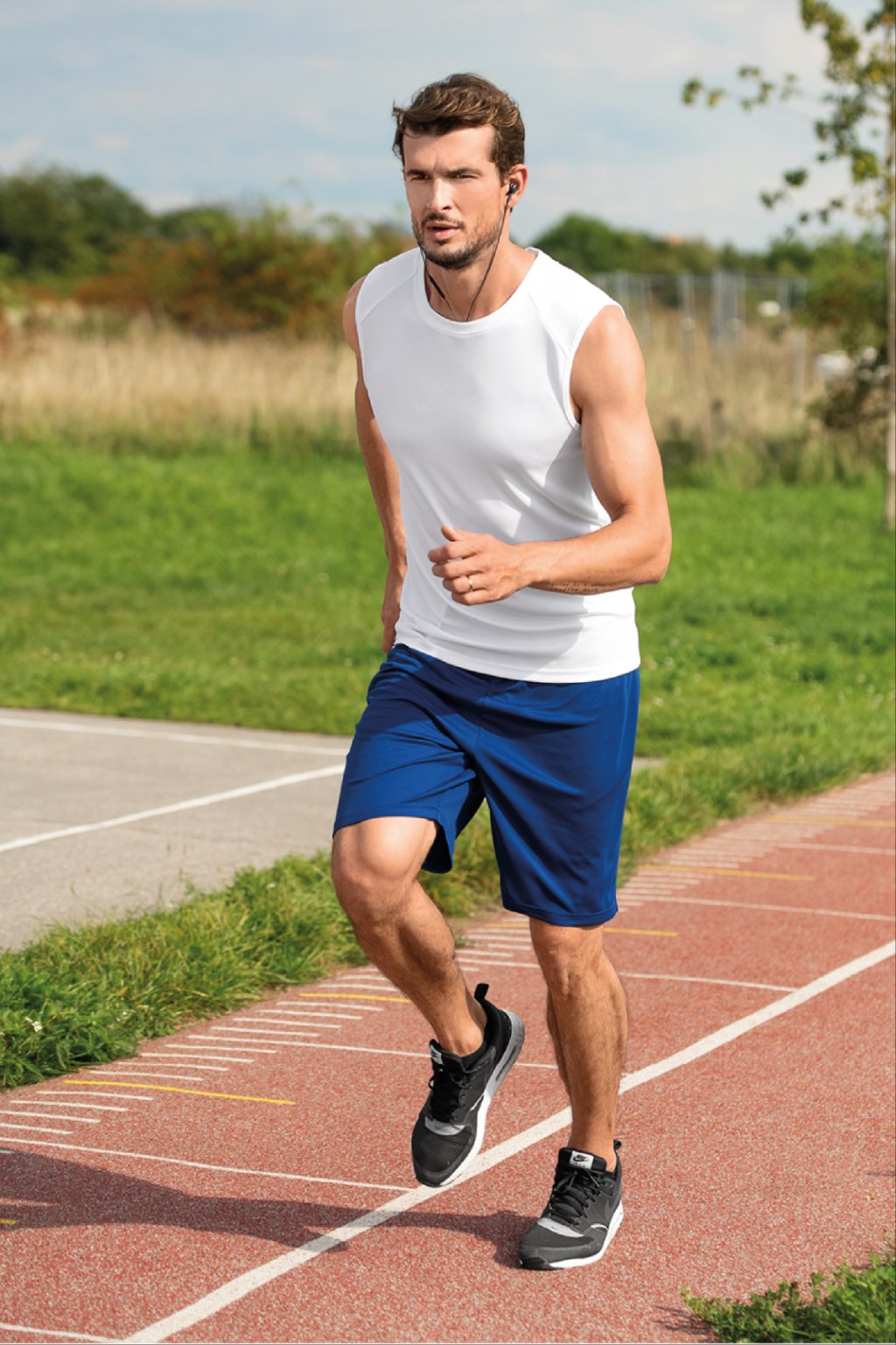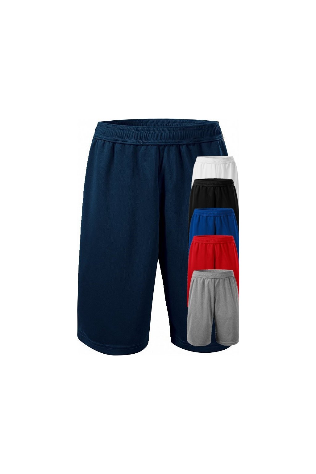 rychleschnoucí materiál, ideální pro sport a pohybové aktivity, délka nad kolena, pasový límec s pruženkou, na stažení šňůrkou, malá vnitřní kapsička, kapsy v bočních švech, vhodné pro sublimační potisk (světlé barvy)