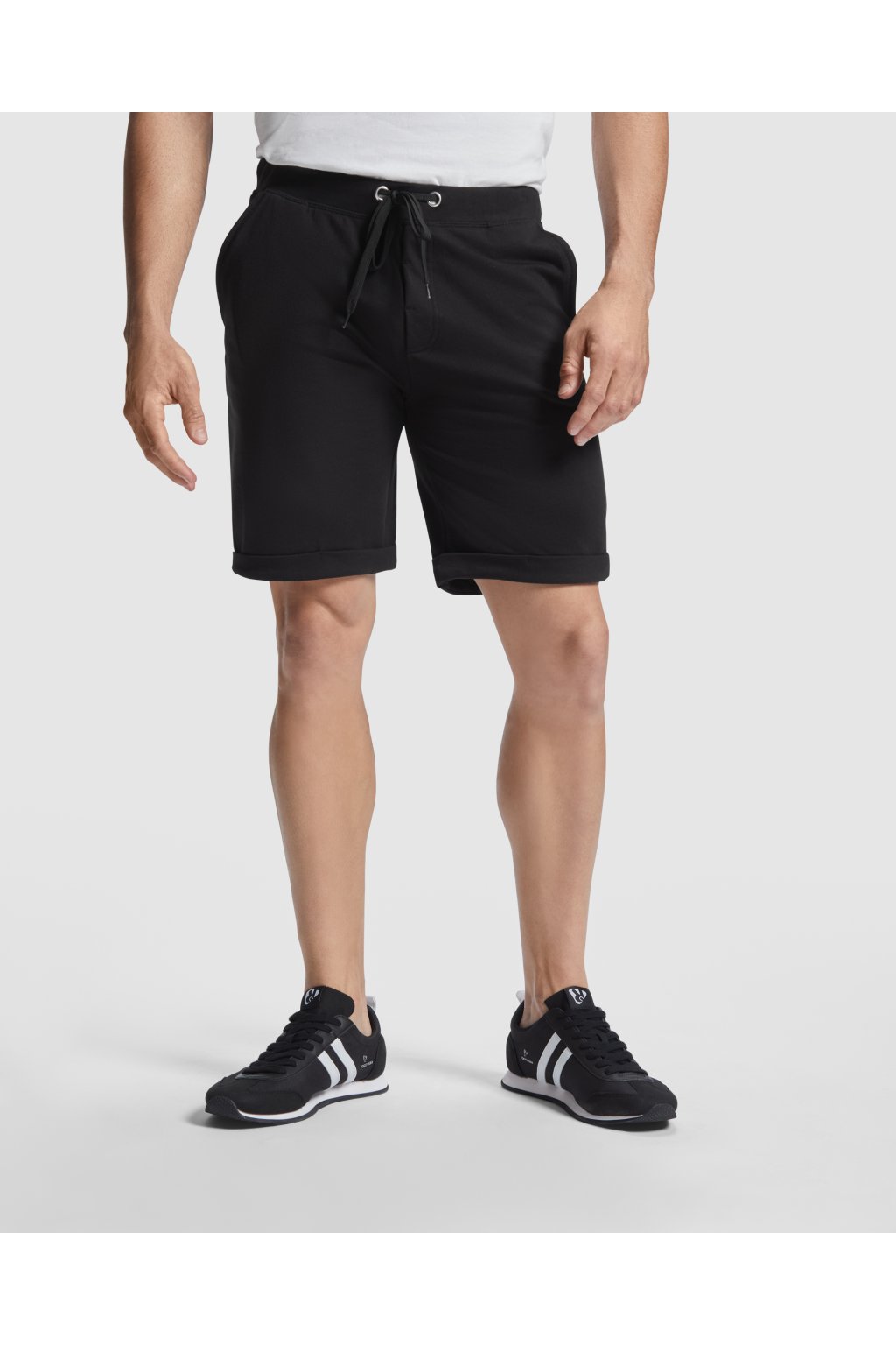 Sportovní krátké kalhoty s širokým elastickým pasem nastavitelným tkaničkou. Boční kapsy s krytým zipem, zadní kapsa a spodní lem se zesíleným švem