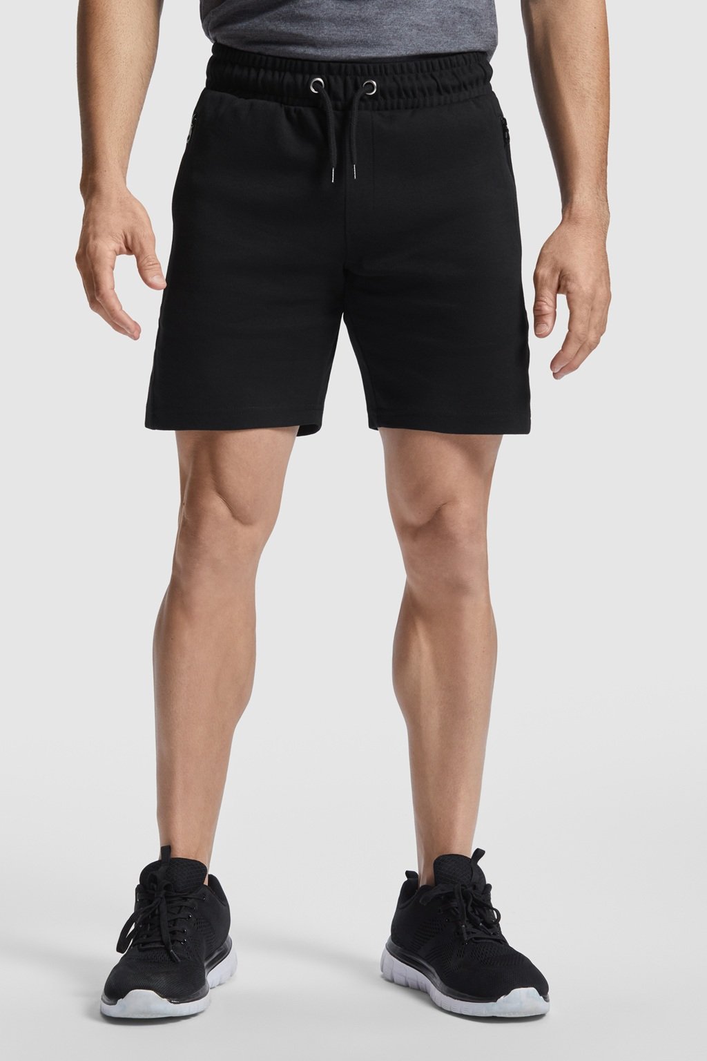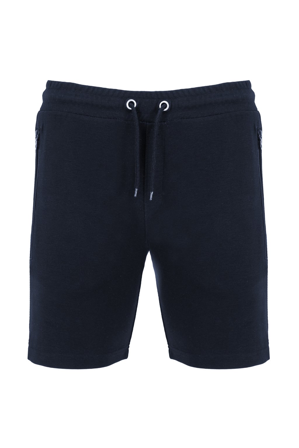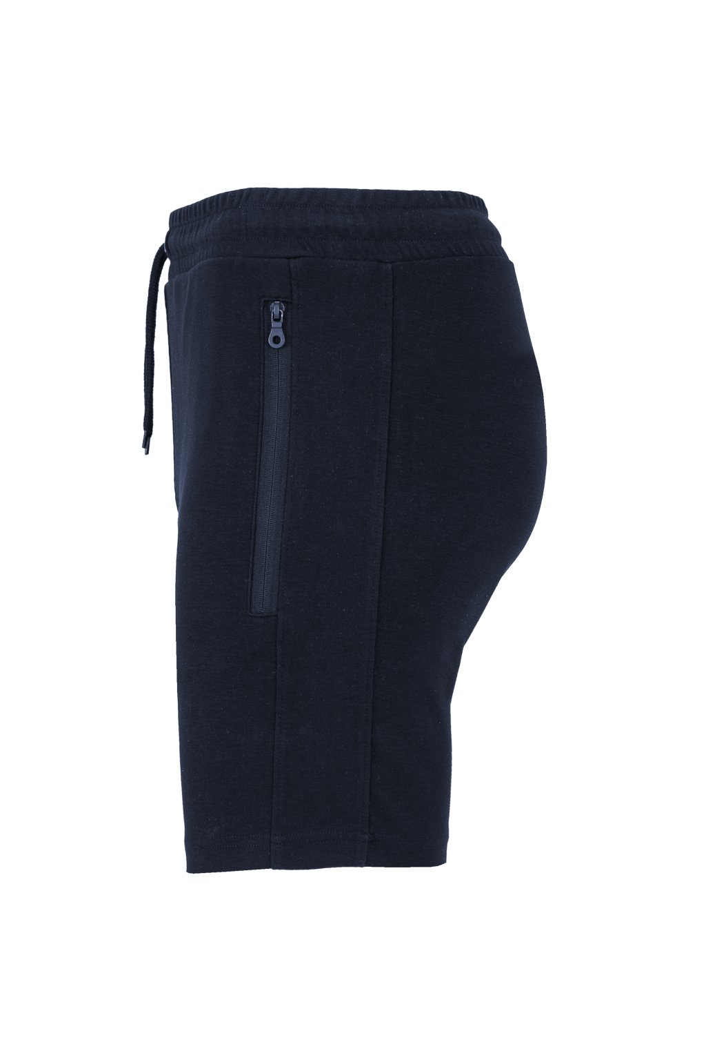 Pánské šortky s elastickým pasem, stahovací šňůrkou a kovovými očky. Dvě postranní kapsy se zipem. Ozdobné prošití poklopce. Zadní kapsa na patent. Odnímatelný štítek.