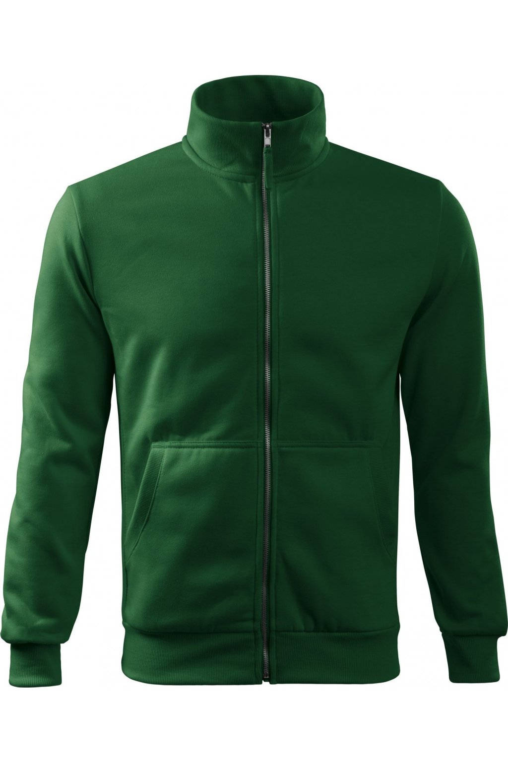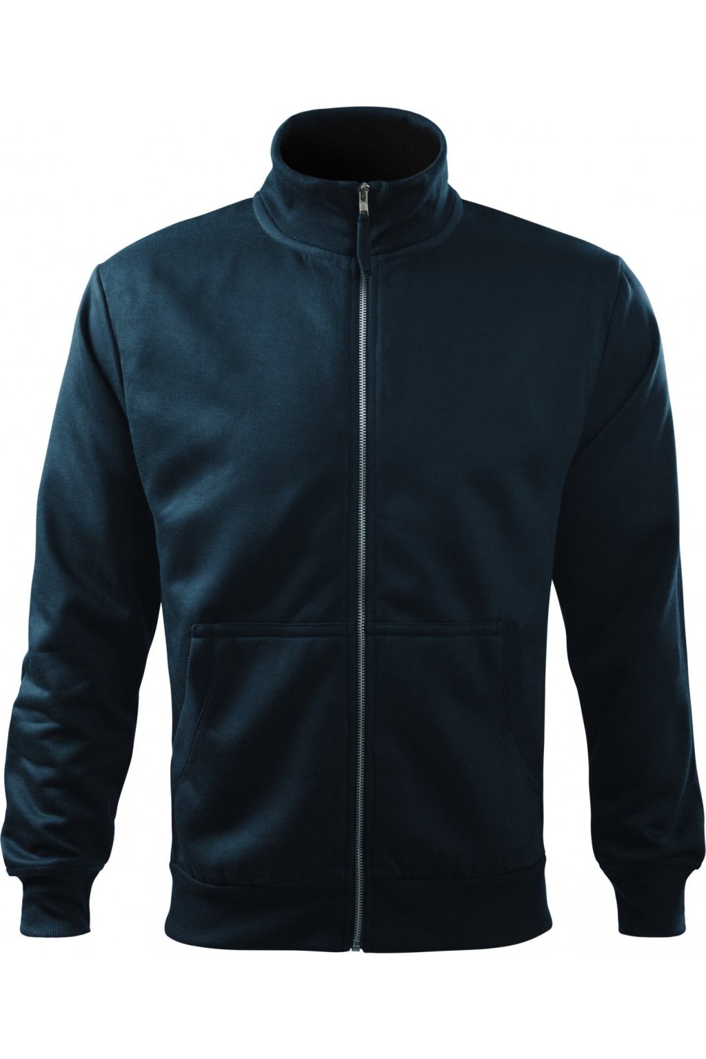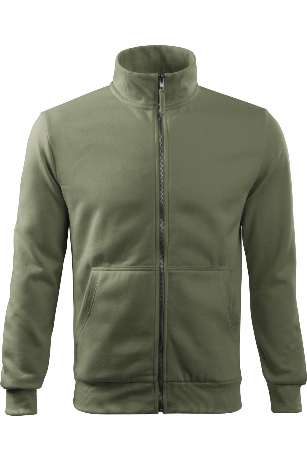 rovný střih s bočními díly, celopropínací kovový zip, stojáček a boční díly z žebrového úpletu 2:2 s 5 % elastanu, vnitřní průkrčník začištěn kontrastní páskou, nakládané kapsy ve stylu klokanky, dolní lem, manžety a lemy kapes z žebrového úpletu 2:2 s 5 % elastanu, vnitřní strana počesaná