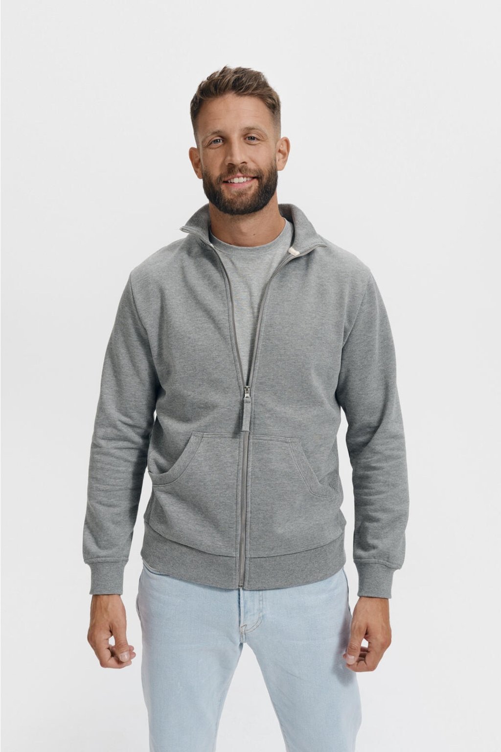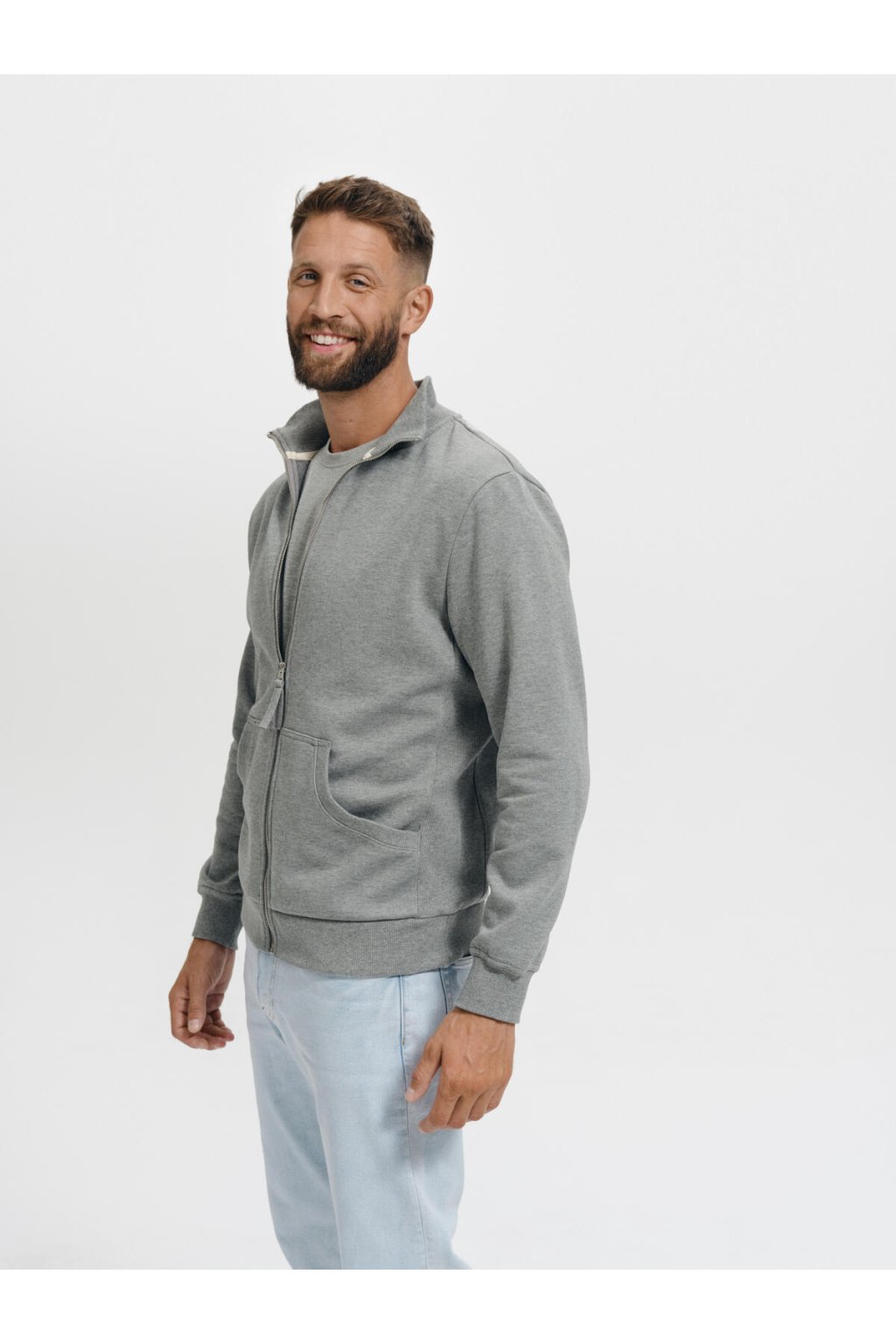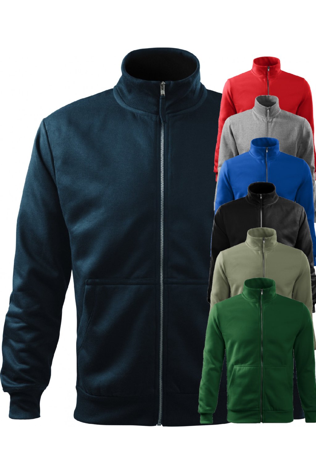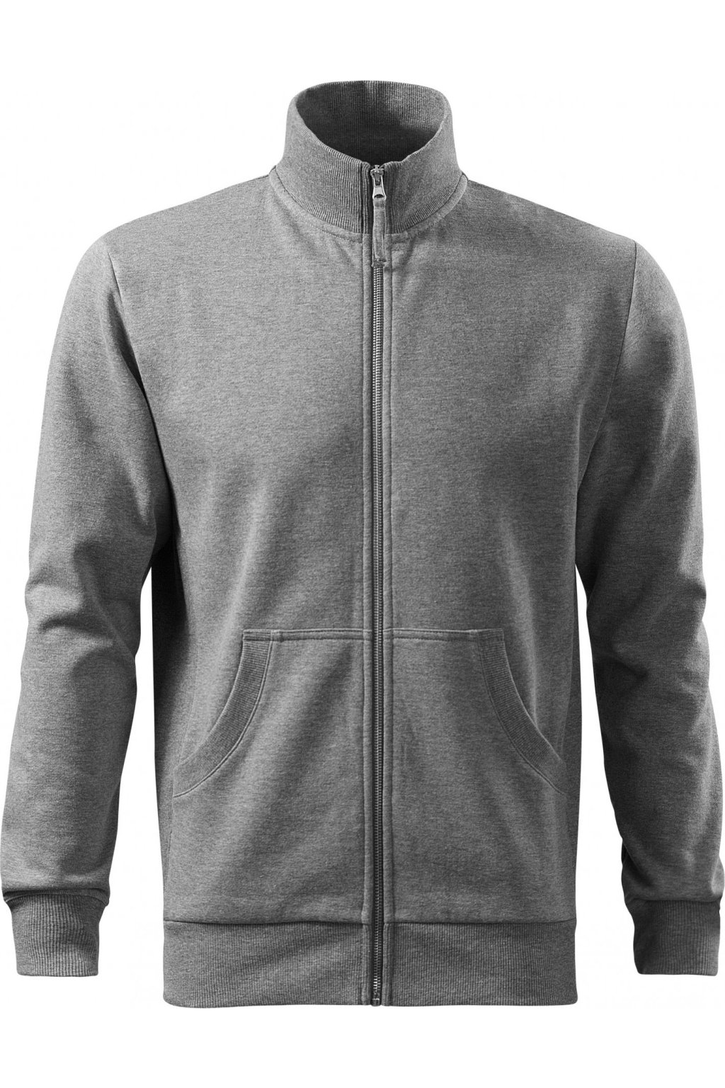 rovný střih s bočními díly, celopropínací kovový zip, stojáček a boční díly z žebrového úpletu 2:2 s 5 % elastanu, vnitřní průkrčník začištěn kontrastní páskou, nakládané kapsy ve stylu klokanky, dolní lem, manžety a lemy kapes z žebrového úpletu 2:2 s 5 % elastanu, vnitřní strana počesaná