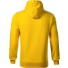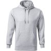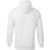 rovný střih s bočními švy, kapuce s podšívkou, na stažení šňůrkou, vnitřní část průkrčníku začištěna páskou v barvě vrchového materiálu, nakládaná kapsa ve stylu klokanky, dolní lem a manžety rukávů z žebrového úpletu 2:2 s 5 % elastanu, vnitřní strana počesaná