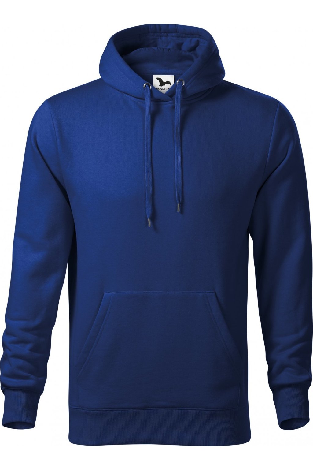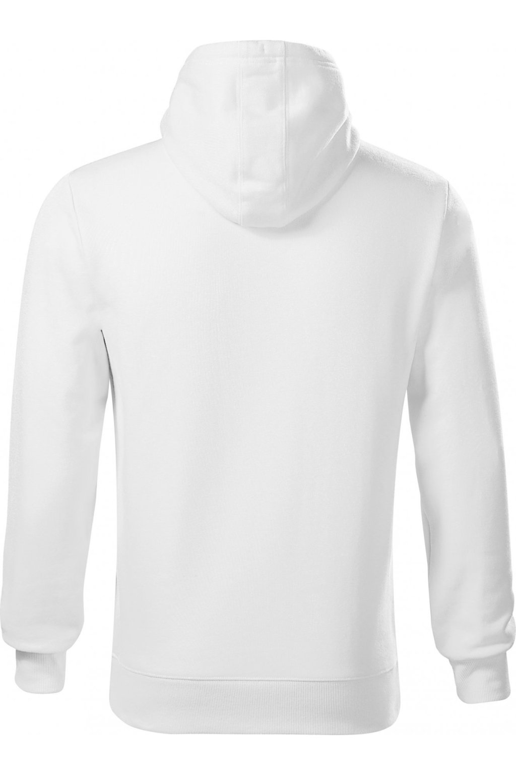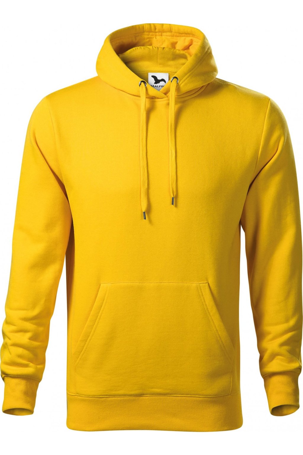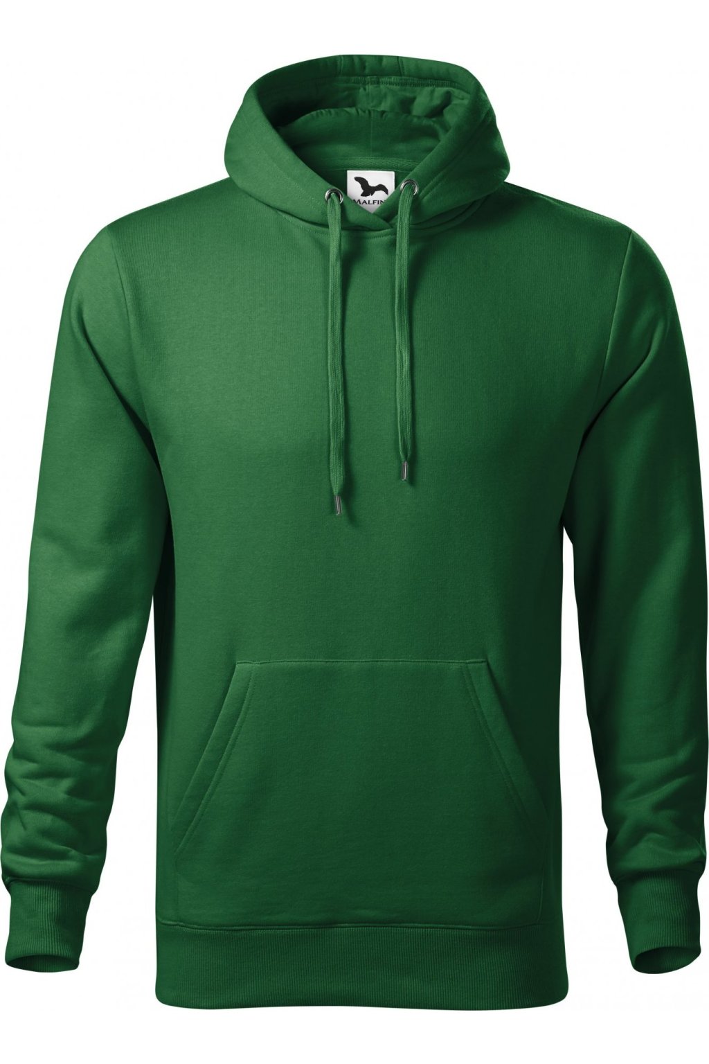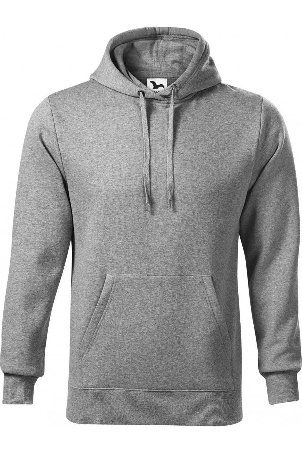 rovný střih s bočními švy, kapuce s podšívkou, na stažení šňůrkou, vnitřní část průkrčníku začištěna páskou v barvě vrchového materiálu, nakládaná kapsa ve stylu klokanky, dolní lem a manžety rukávů z žebrového úpletu 2:2 s 5 % elastanu, vnitřní strana počesaná