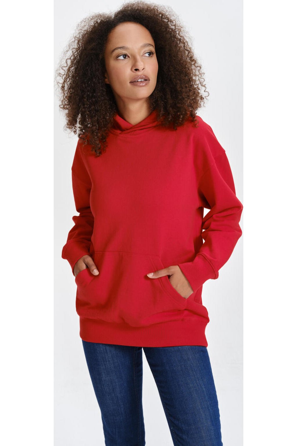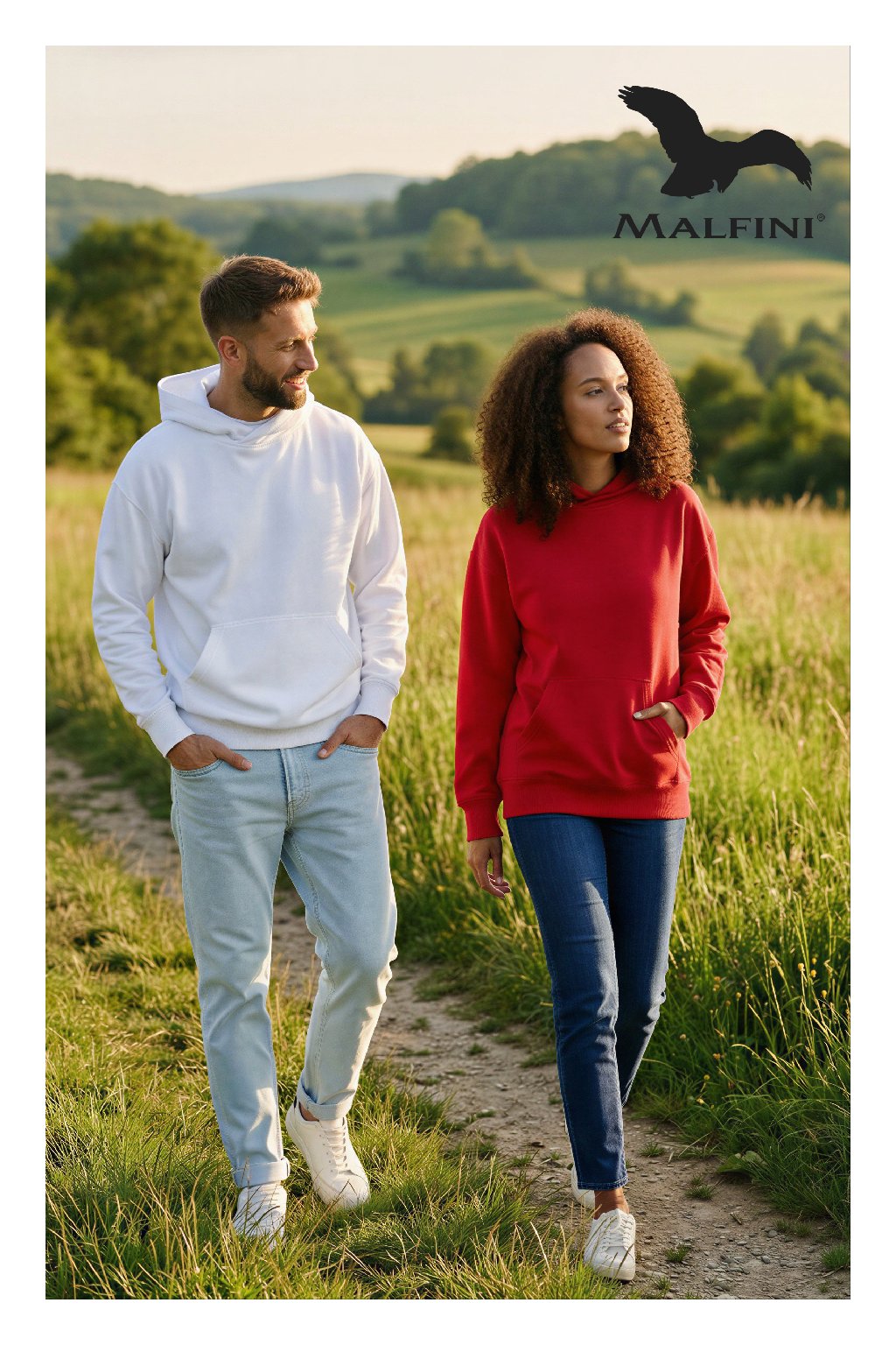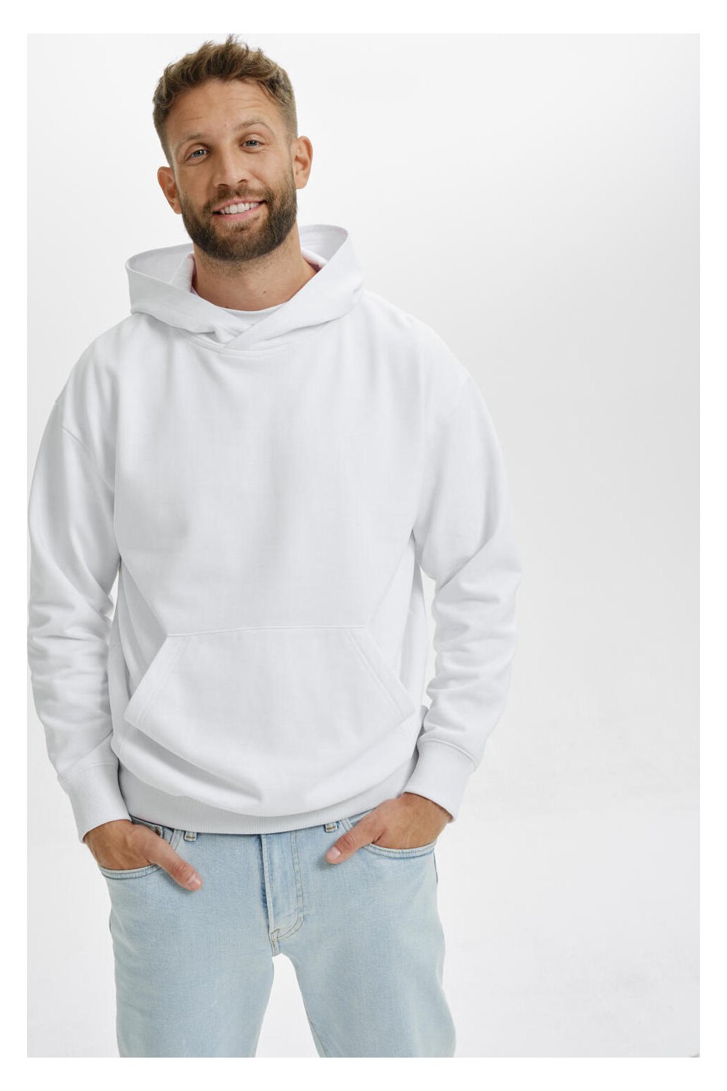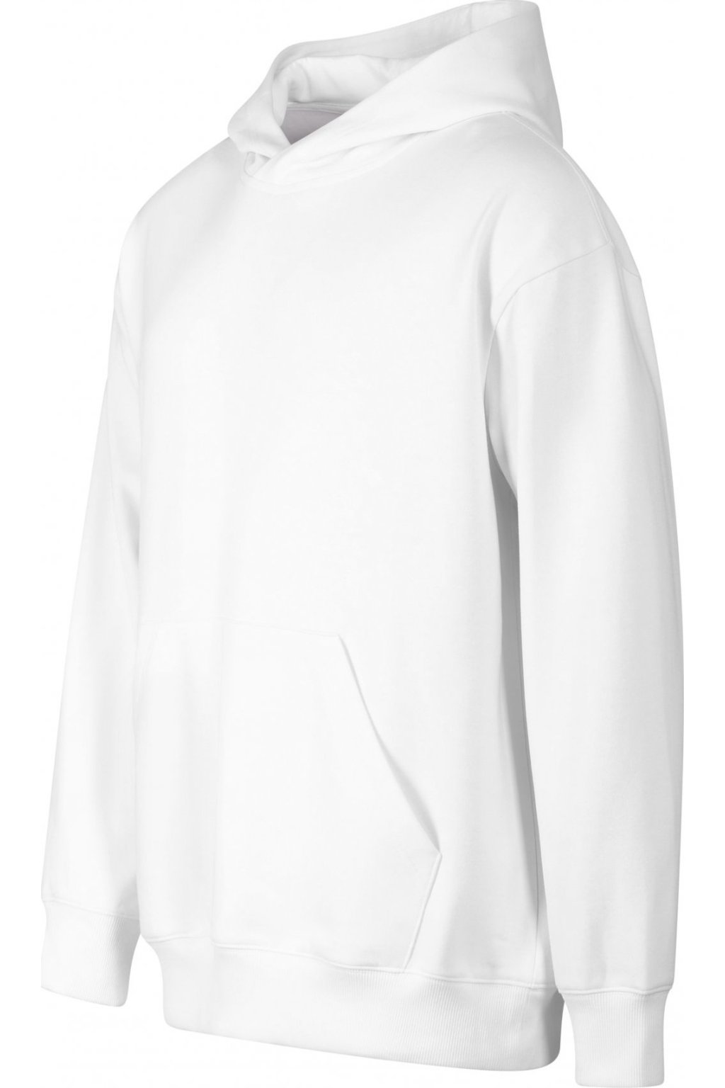 bez etikety - připraveno na rebranding, volný střih s bočními švy, kapuce s podšívkou , neutrální velikostní štítek v boční části průkrčníku, vnitřní část průkrčníku začištěna páskou, nízkohlavicové rukávy, nakládaná kapsa ve stylu klokanky, dolní lem a manžety rukávů z žebrového úpletu 2:2 s 5 % elastanu, vnitřní strana počesaná