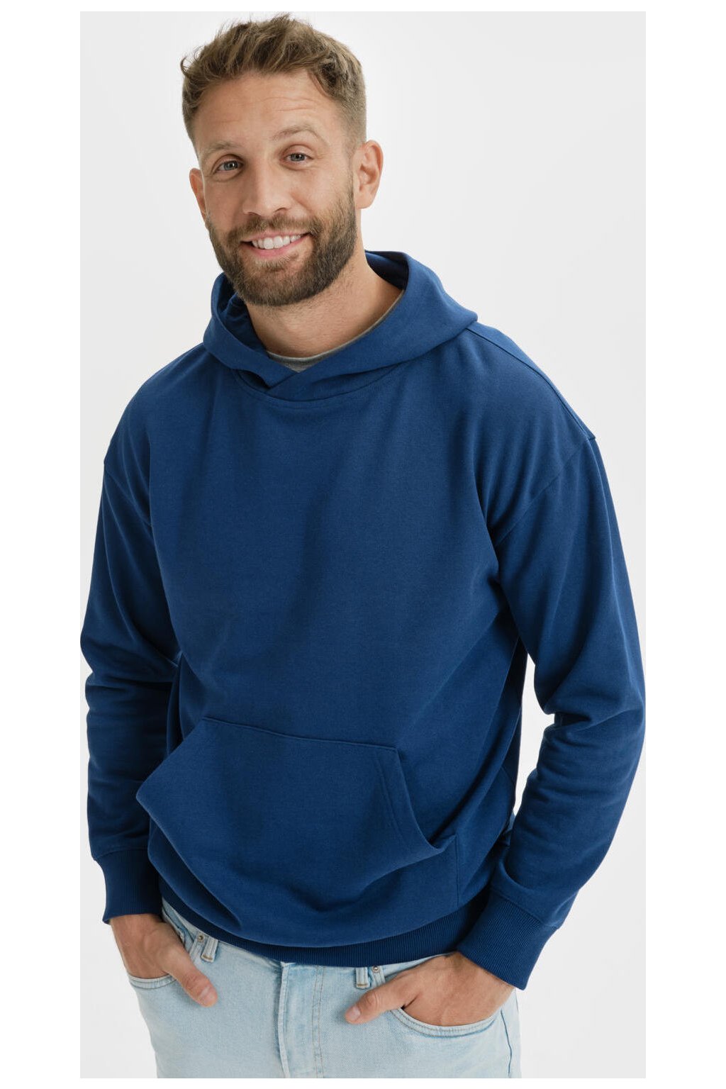 bez etikety - připraveno na rebranding, volný střih s bočními švy, kapuce s podšívkou , neutrální velikostní štítek v boční části průkrčníku, vnitřní část průkrčníku začištěna páskou, nízkohlavicové rukávy, nakládaná kapsa ve stylu klokanky, dolní lem a manžety rukávů z žebrového úpletu 2:2 s 5 % elastanu, vnitřní strana počesaná