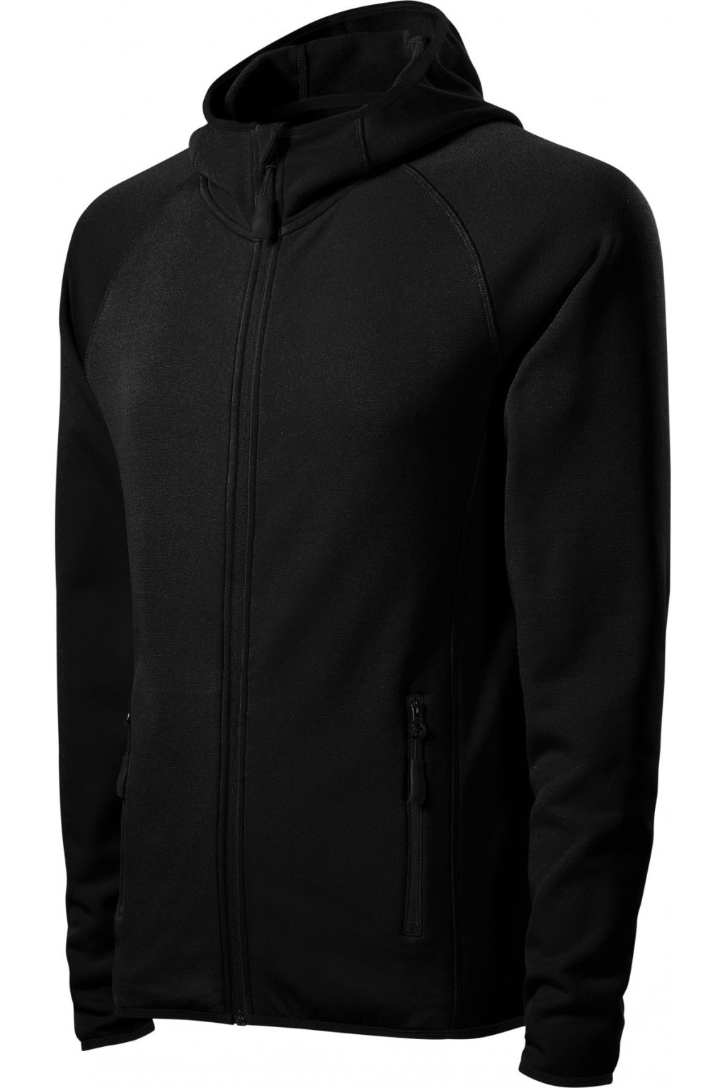 hladký strečový rychleschnoucí materiál, ideální pro sport a pohybové aktivity, rovný střih s bočními díly, celopropínací reverzní spirálový zip, kapuce s krytkou brady, vnitřní průkrčník začištěn páskou, raglánové rukávy, kapsy na zip, lemování elastickým proužkem, tvarovaný a mírně prodloužený zadní díl, kontrastní prvky (vyjma barvy 01), etiketa v podobě odnímatelné nálepky