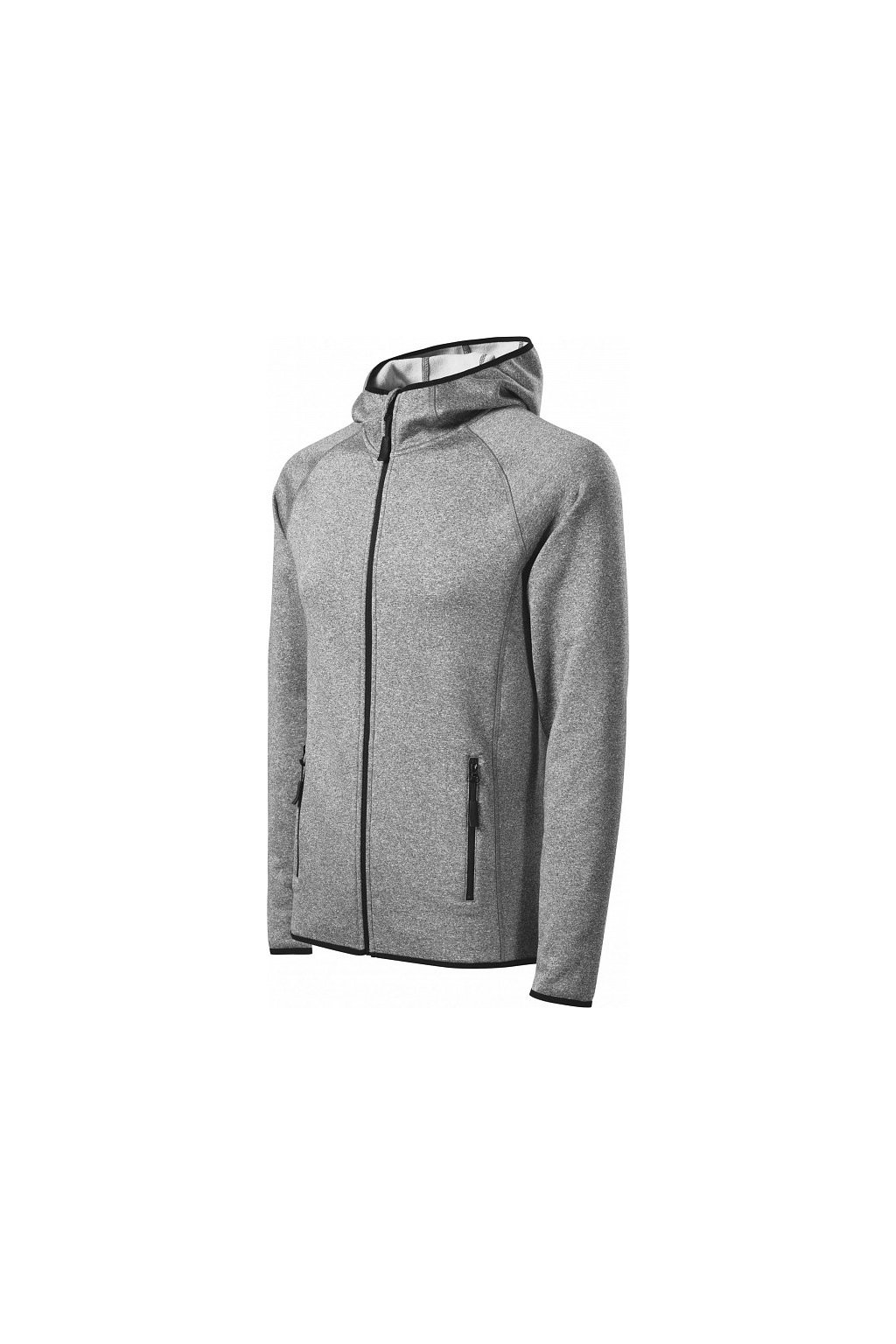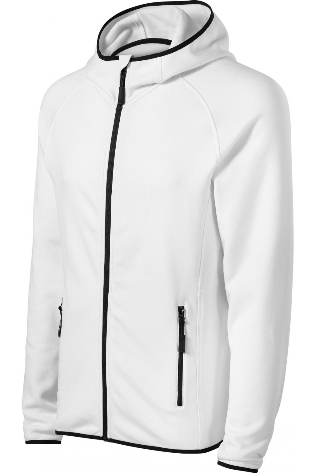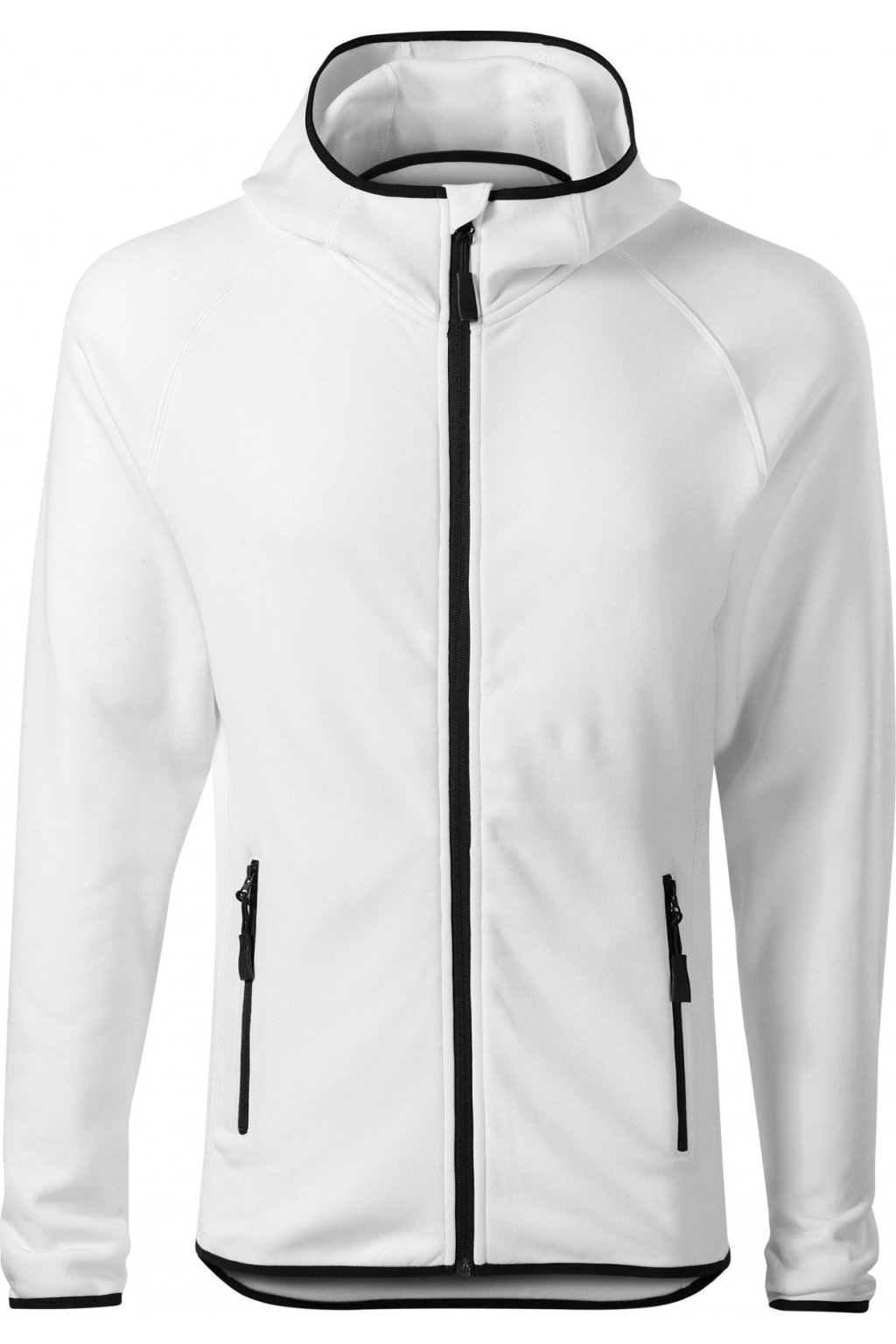 hladký strečový rychleschnoucí materiál, ideální pro sport a pohybové aktivity, rovný střih s bočními díly, celopropínací reverzní spirálový zip, kapuce s krytkou brady, vnitřní průkrčník začištěn páskou, raglánové rukávy, kapsy na zip, lemování elastickým proužkem, tvarovaný a mírně prodloužený zadní díl, kontrastní prvky (vyjma barvy 01), etiketa v podobě odnímatelné nálepky