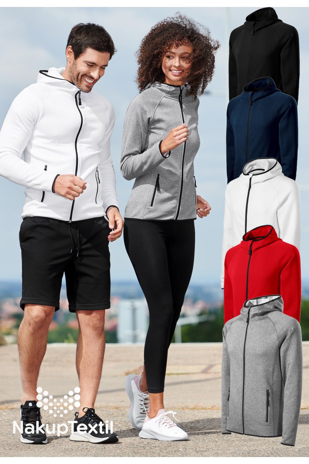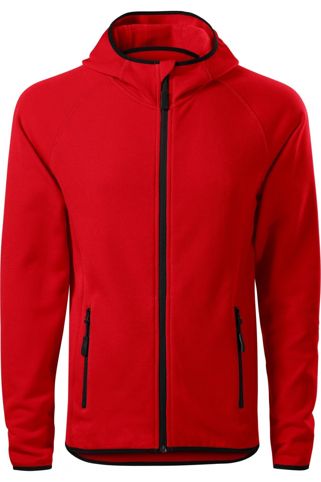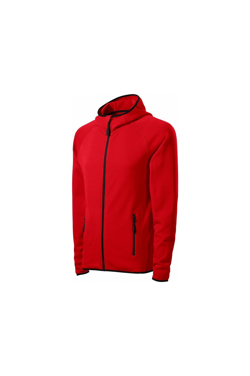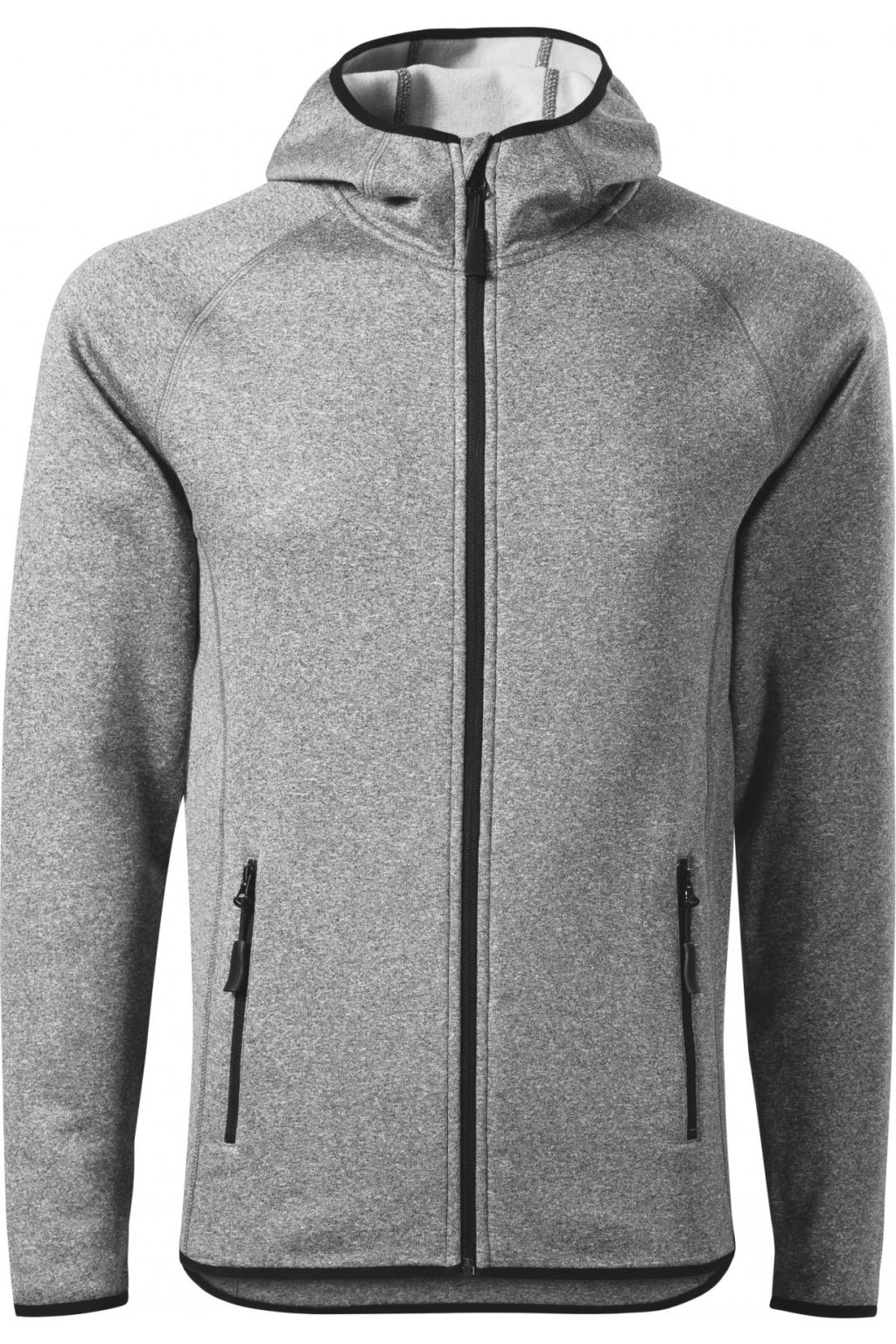 hladký strečový rychleschnoucí materiál, ideální pro sport a pohybové aktivity, rovný střih s bočními díly, celopropínací reverzní spirálový zip, kapuce s krytkou brady, vnitřní průkrčník začištěn páskou, raglánové rukávy, kapsy na zip, lemování elastickým proužkem, tvarovaný a mírně prodloužený zadní díl, kontrastní prvky (vyjma barvy 01), etiketa v podobě odnímatelné nálepky