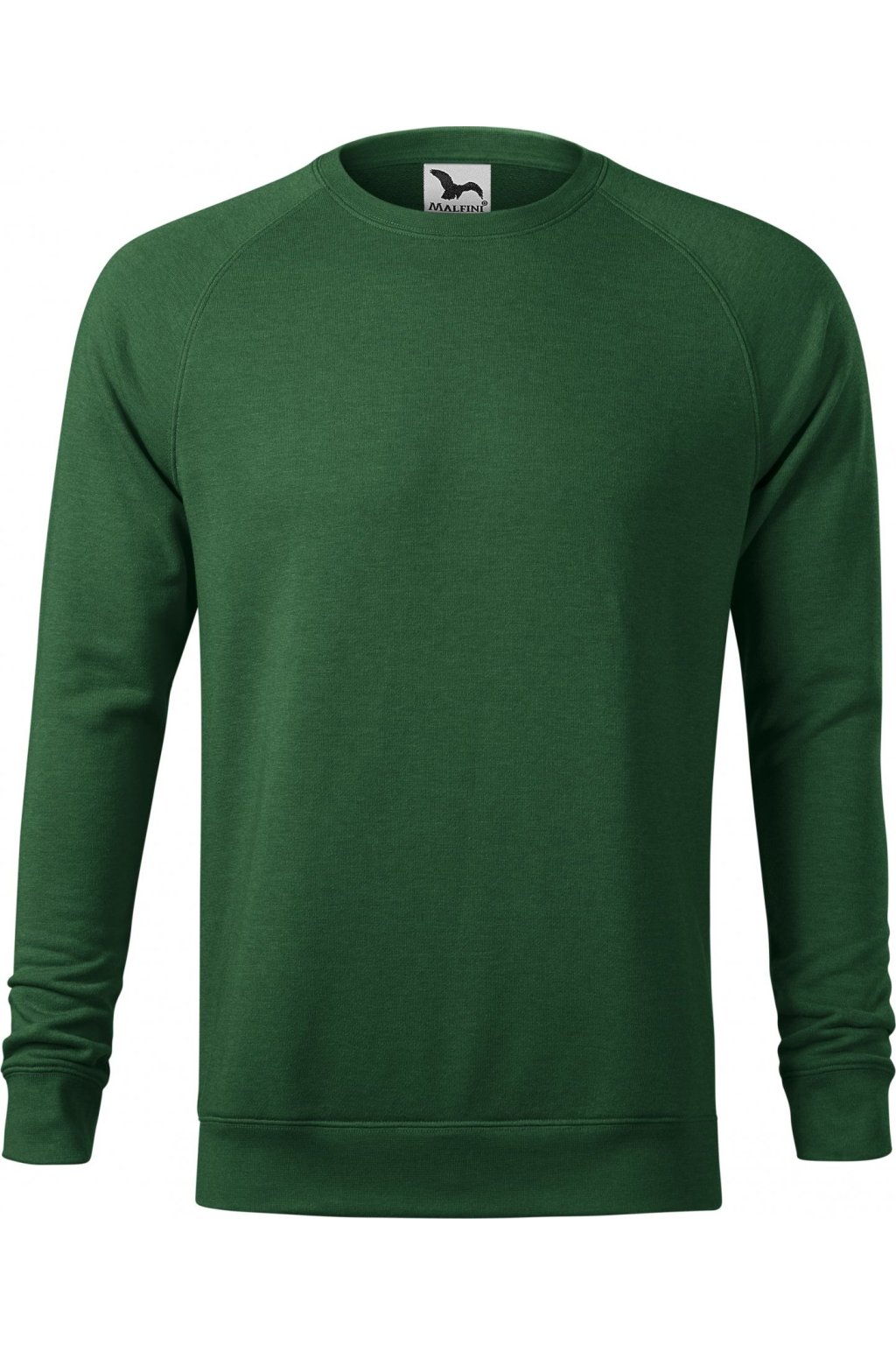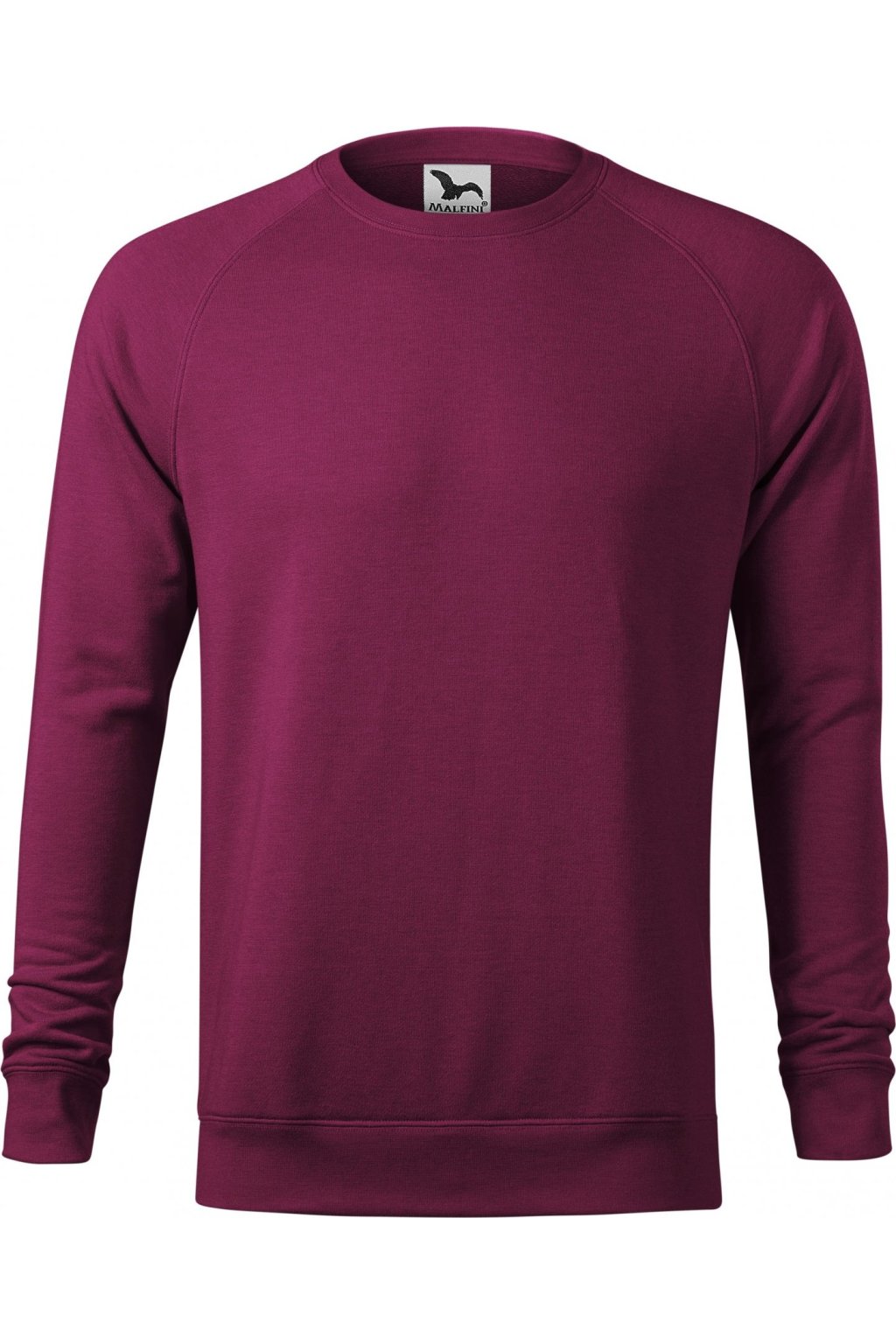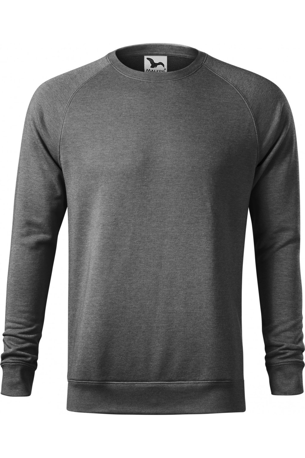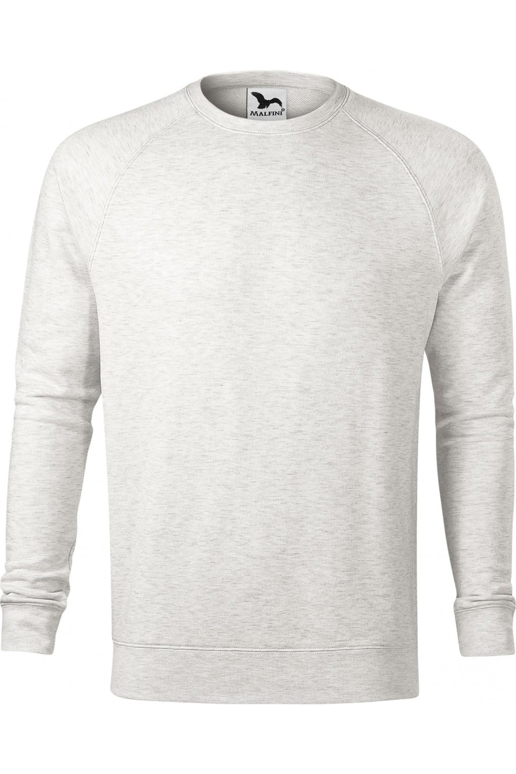rovný střih s bočními švy, vnitřní část průkrčníku začištěna páskou v barvě vrchového materiálu, raglánové rukávy s dvojitým prošitím, dolní lem, manžety a průkrčník z žebrového úpletu 1:1 s 5 % elastanu, vnitřní strana nepočesaná