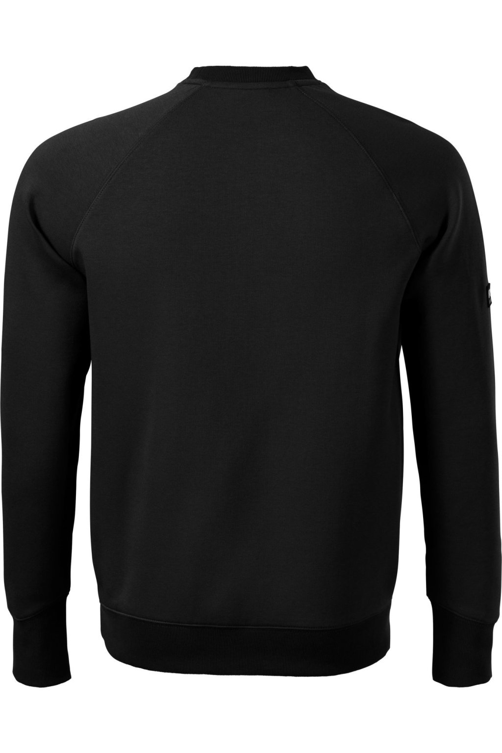 rovný střih s bočními švy, vnitřní část průkrčníku začištěna kontrastní páskou, raglánové rukávy s dvojitým prošitím, dolní lem, manžety a průkrčník z žebrového úpletu 2:2 s 5 % elastanu, manžety s otvorem pro palec, kontrastní prvky