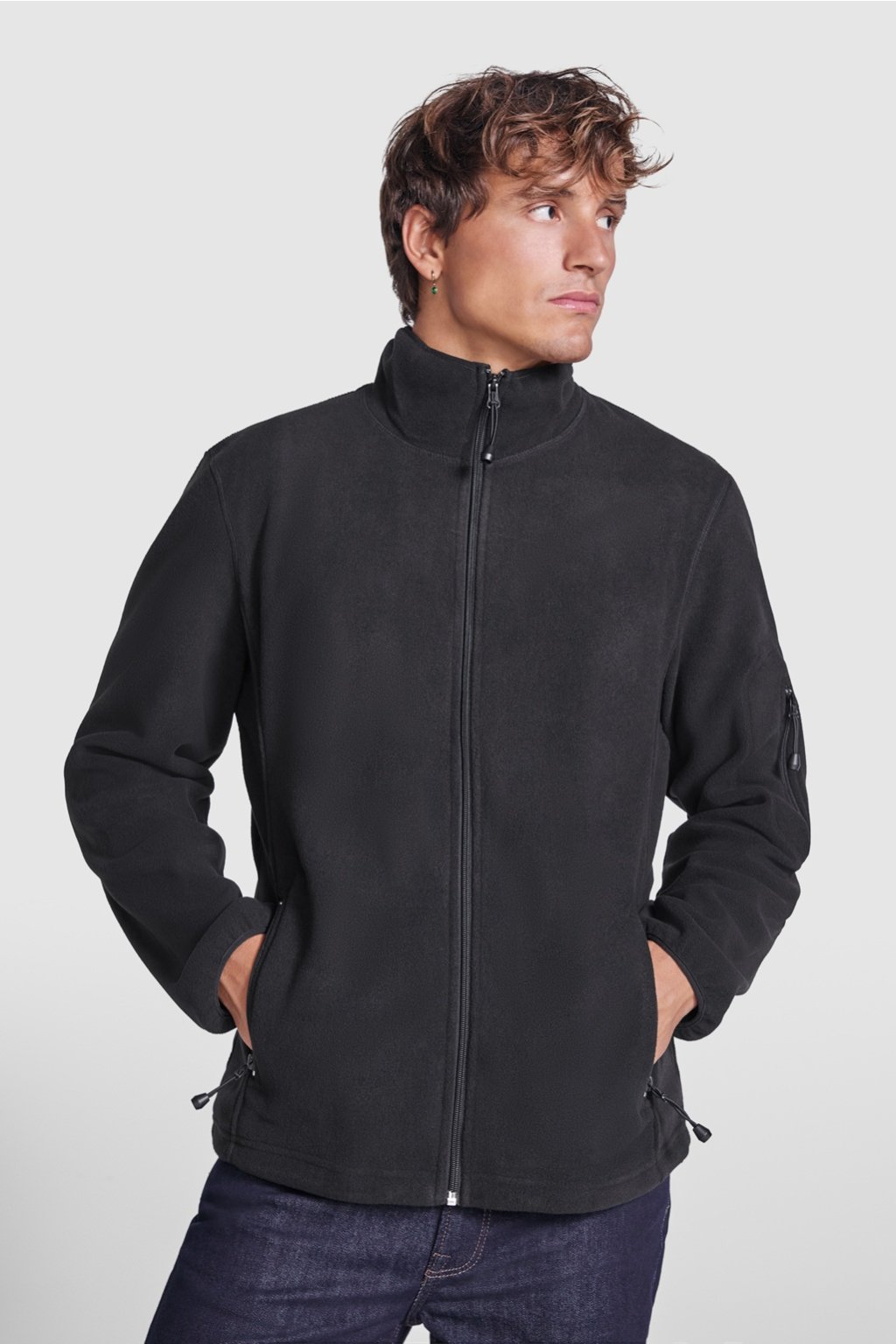 Pánská mikrofleecová sportovní mikina s vysokým límcem, dlouhým rukávem a lemováním v kontrastní barvě. Celopropínací zip. Boční kapsa a kapsa na levém rukávu na zip. Prošívání na bočních stranách a na hrudi. Nášivka na lokti ze stejného materiálu.