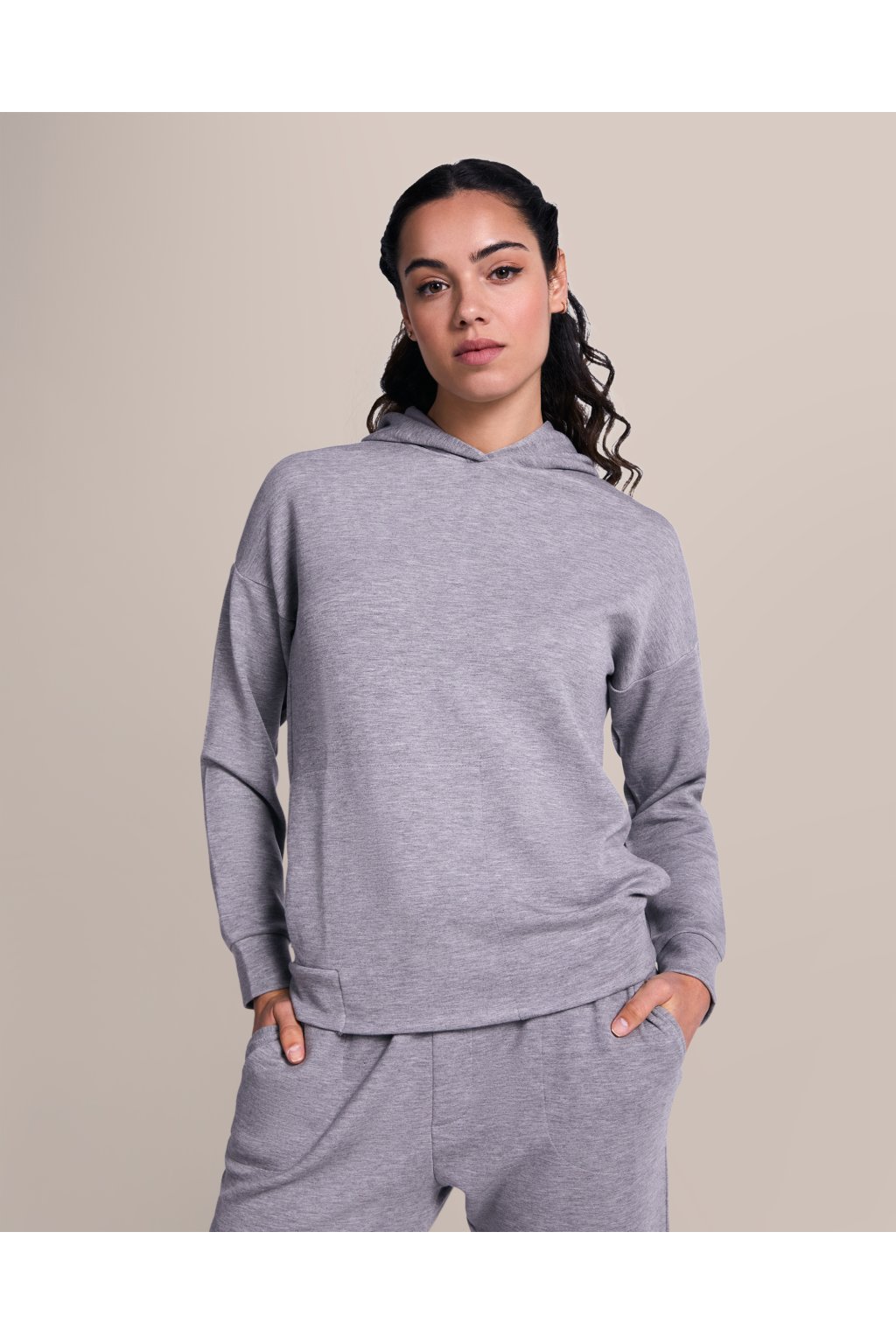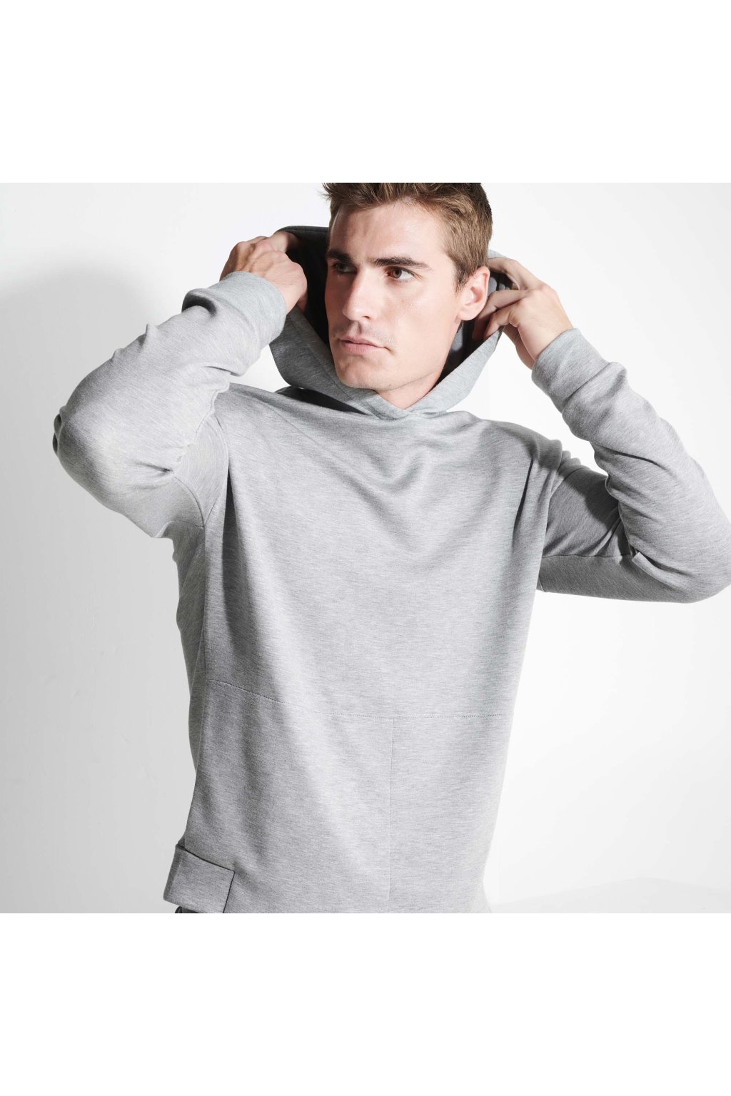 Mikina s kapucí z lehkého materiálu. Boční kapsy.