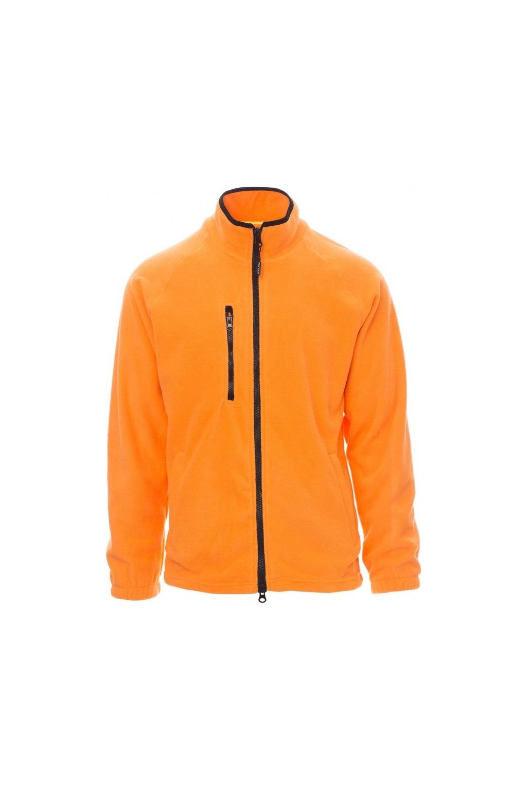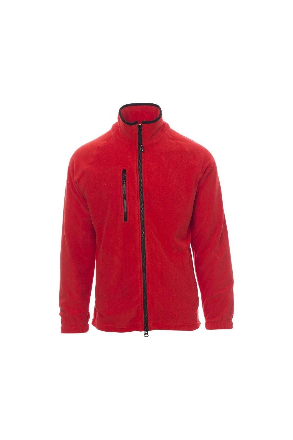 Pánská flísová bunda s 8mm černým plastovým celozipem, raglánové rukávy, stahovací šňůrka v pase, elastické stahovací manžety na zápěstí, dvě kapsy se skrytým zipem, jedna přední kapsa na zip, kontrastní výztuž límečku, zesílené švy.