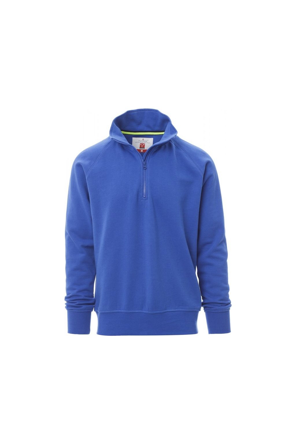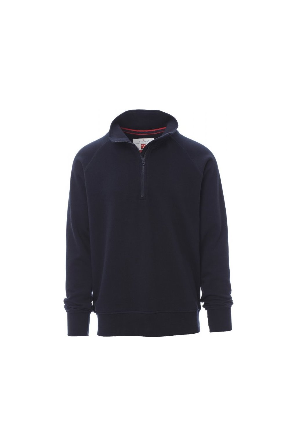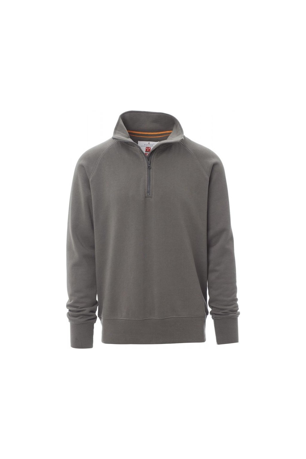 Pánská mikina s barevně sladěným plastovým polozipem s kovovým jezdcem s pogumovaným efektem, raglánové rukávy, manžety a pas s elastickým žebrováním, zesílené švy.