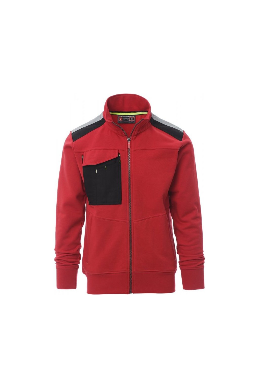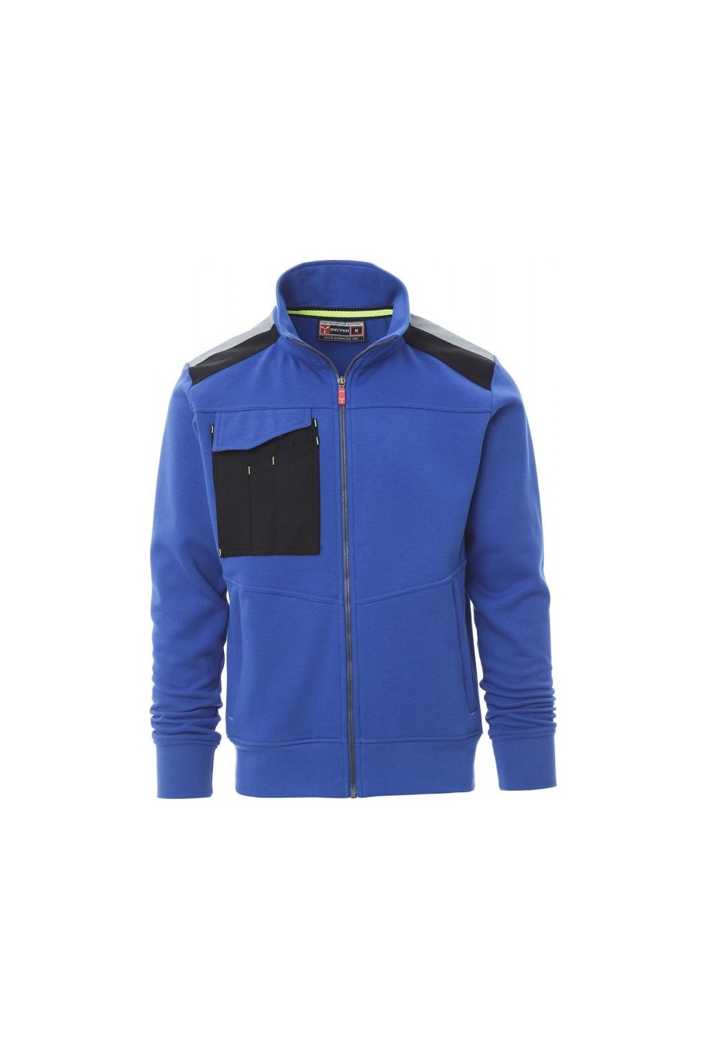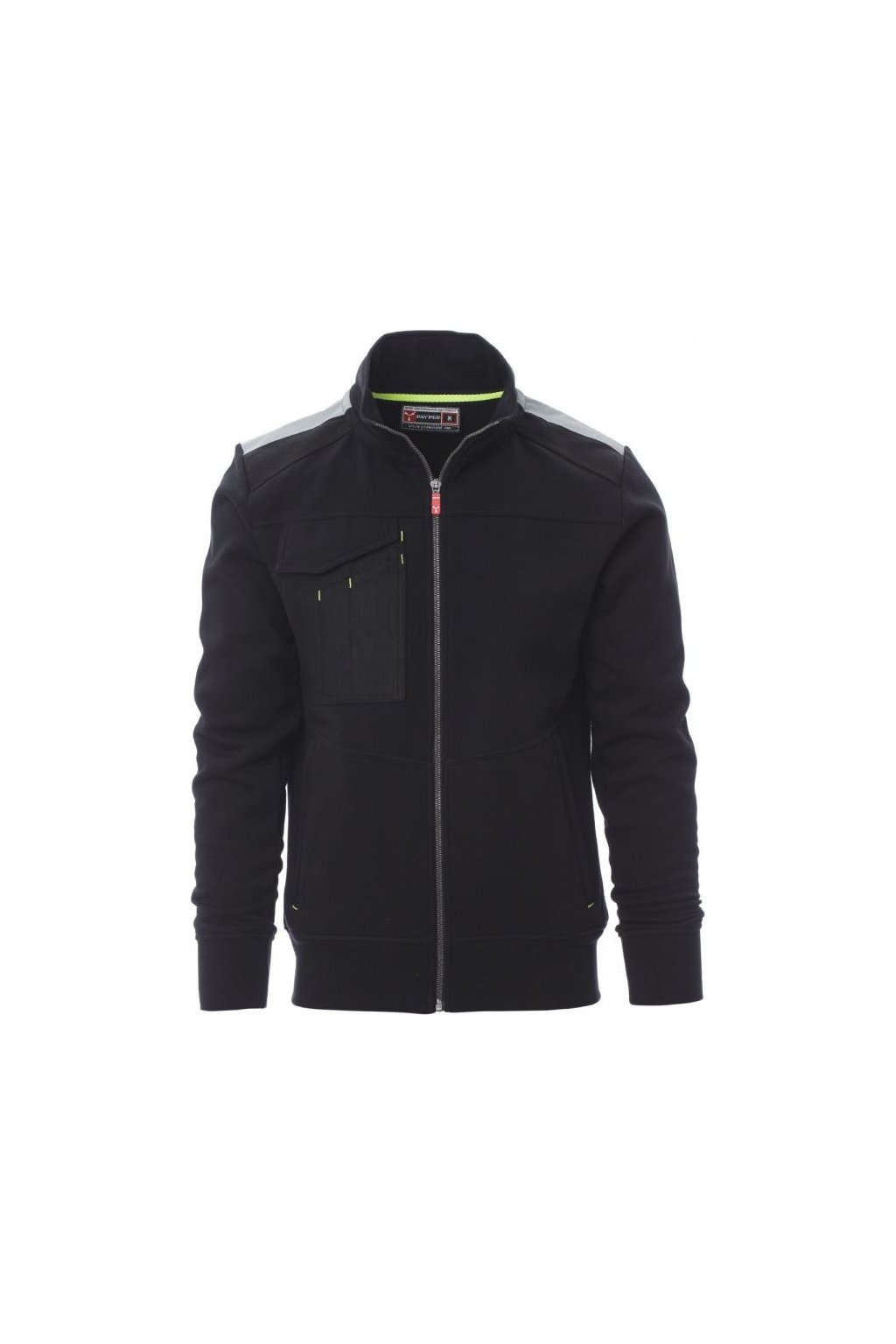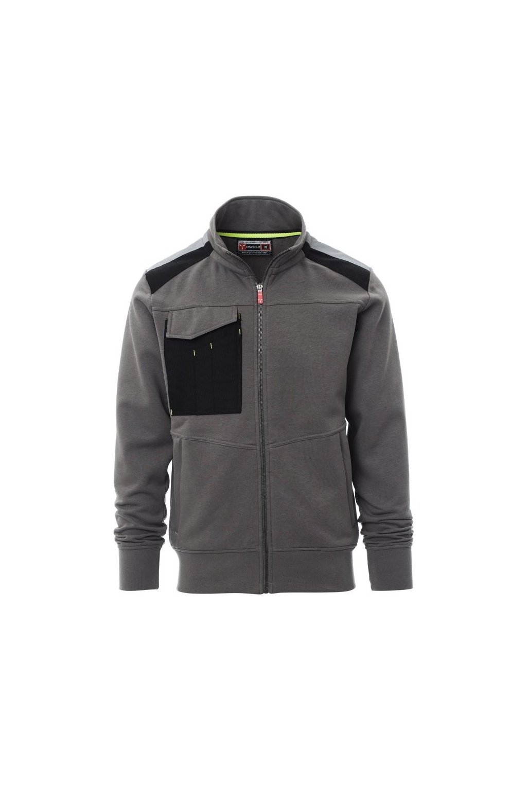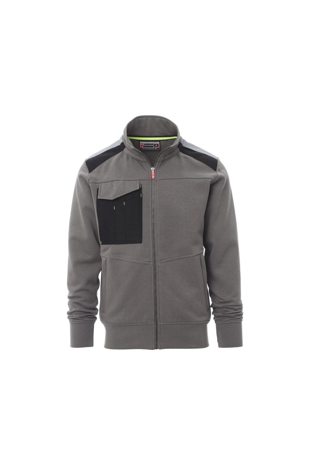 Pánská mikina, plastový celozip SBS s kovovým jezdcem „semi-auto lock", dvě kapsy na zip, víceúčelová kapsa na hrudi se skrytým pouzdrem na jmenovku a uzavírací klopou LOCK SYSTEM, reflexní pruhy na ramenou, manžety a pas s elastickým žebrováním, dvojité prošití na límci, rukávech a v pase, límeček vyztužen páskou. Vodoodpudivé ošetření tkaniny.