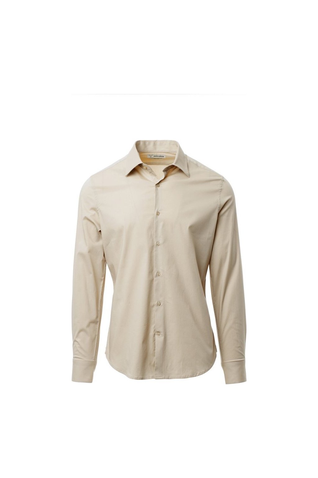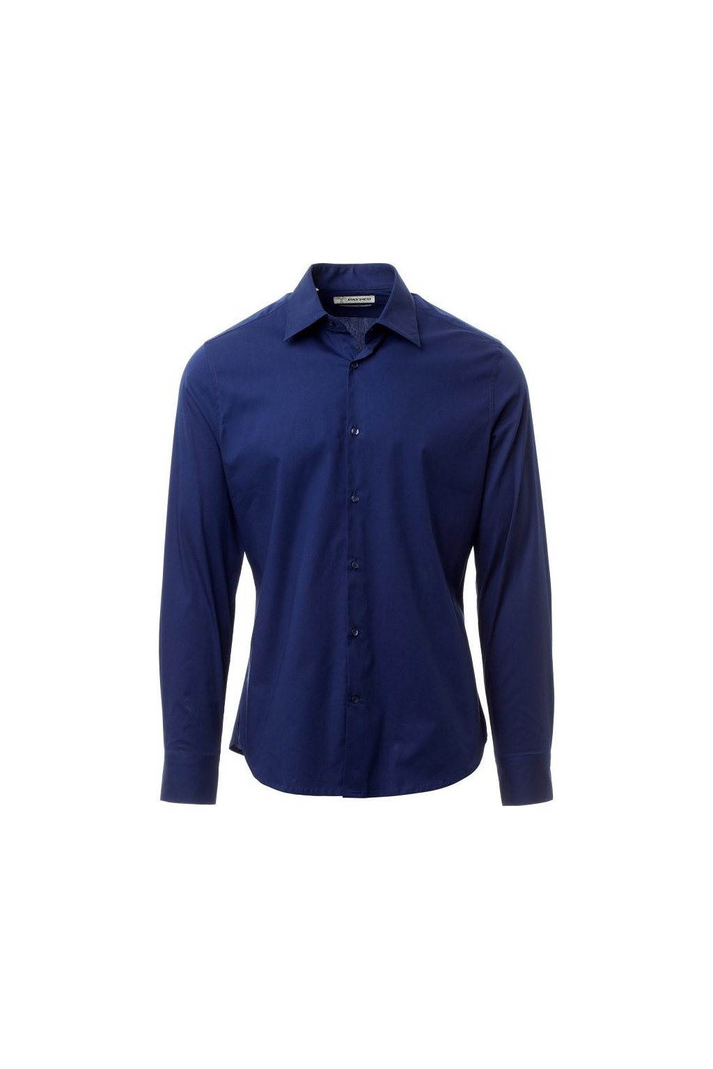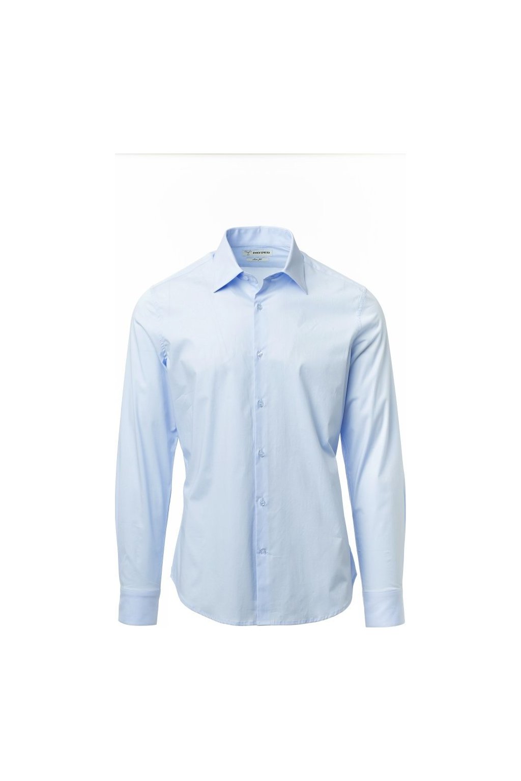 Pánská košile slim střihu, tvarovaný italský límeček s uzavřeným stojáčkem a odnímatelnými kosticemi, vnitřní nařasená léga, viditelné zapínání, hladké zádové sedlo, záševky uprostřed zad, zakončení látkovým klínkem na bocích, zaoblené manžety s 1 knoflíkem.