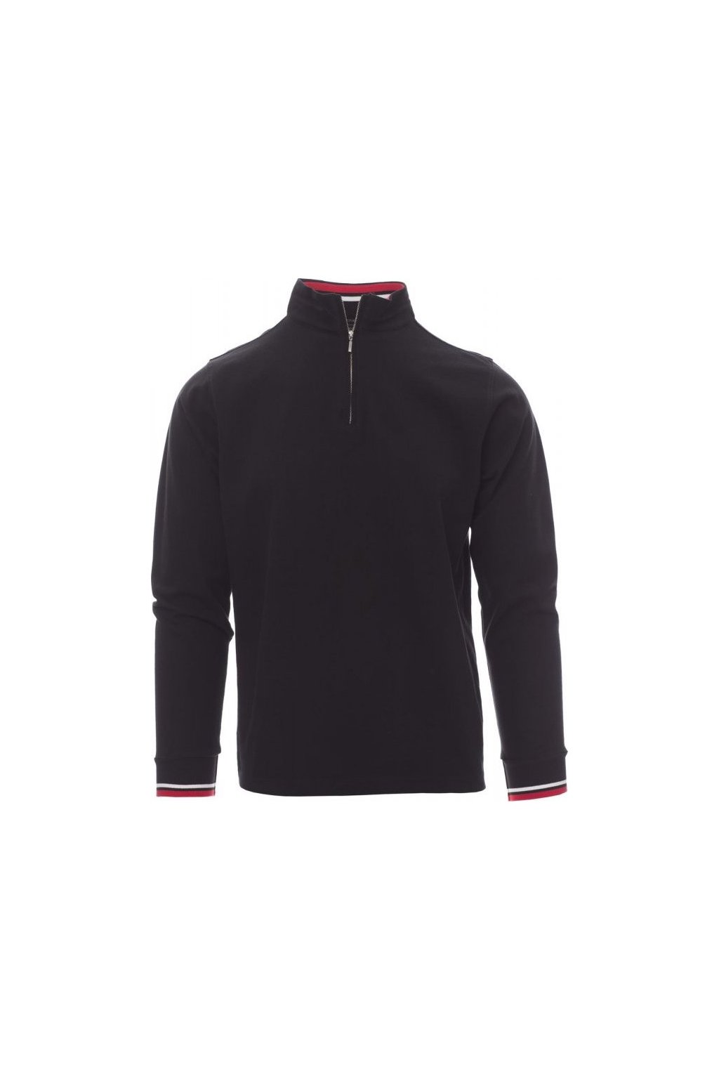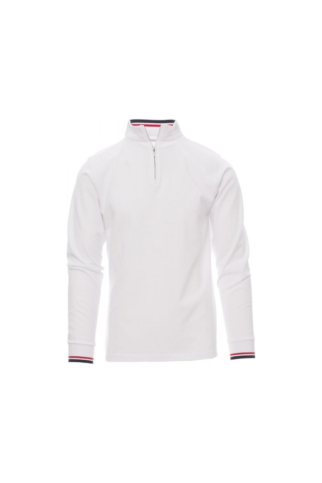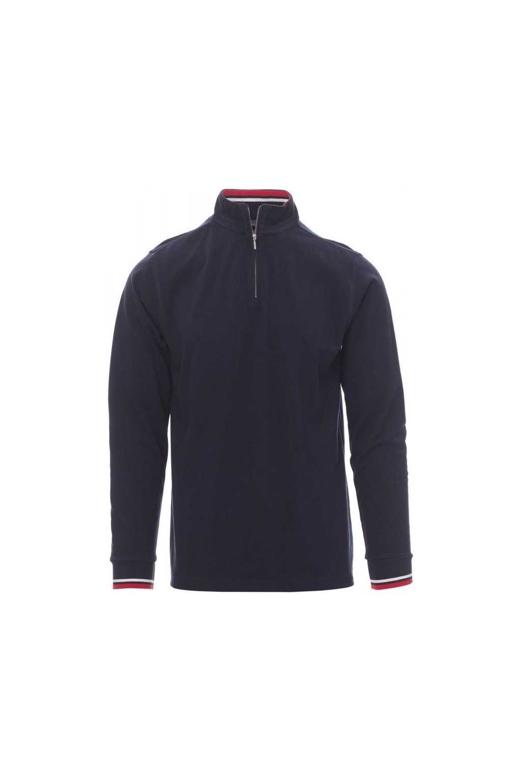 Polokošile s dlouhým rukávem s kovovým polozipem a tenkým límečkem, rovné strany, manžety s elastickým žebrováním, kontrastní lem na vnitřní straně límečku a na manžetách, tvarovaná výztuž na spodní straně límečku.