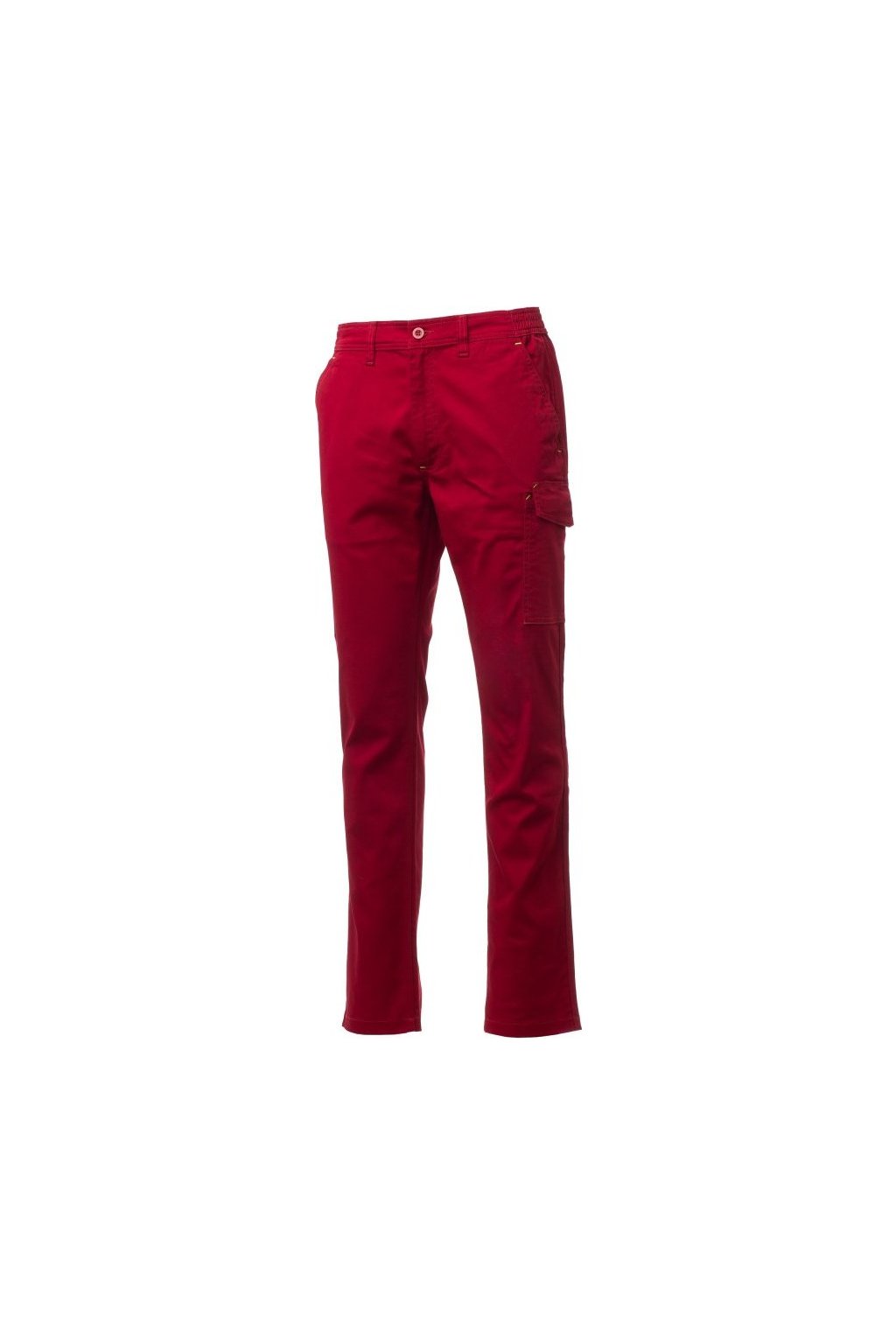 Kalhoty s poutky a elastickým páskem v pase, zapínání na zip a knoflík. Dvě přední kapsy klasického střihu, kapsička na mince, pravá postranní kapsa na svinovací metr, levá postranní kapsa s uzavírací klopou LOCK SYSTEM, dvě zadní kapsy, z nichž jedna s klopou na suchý zip. Prošití trojjehlou.