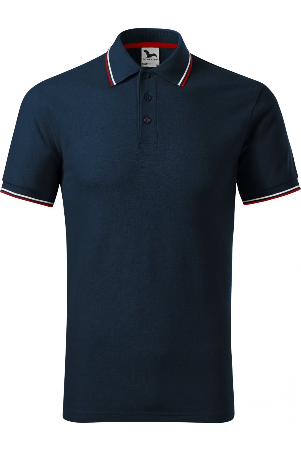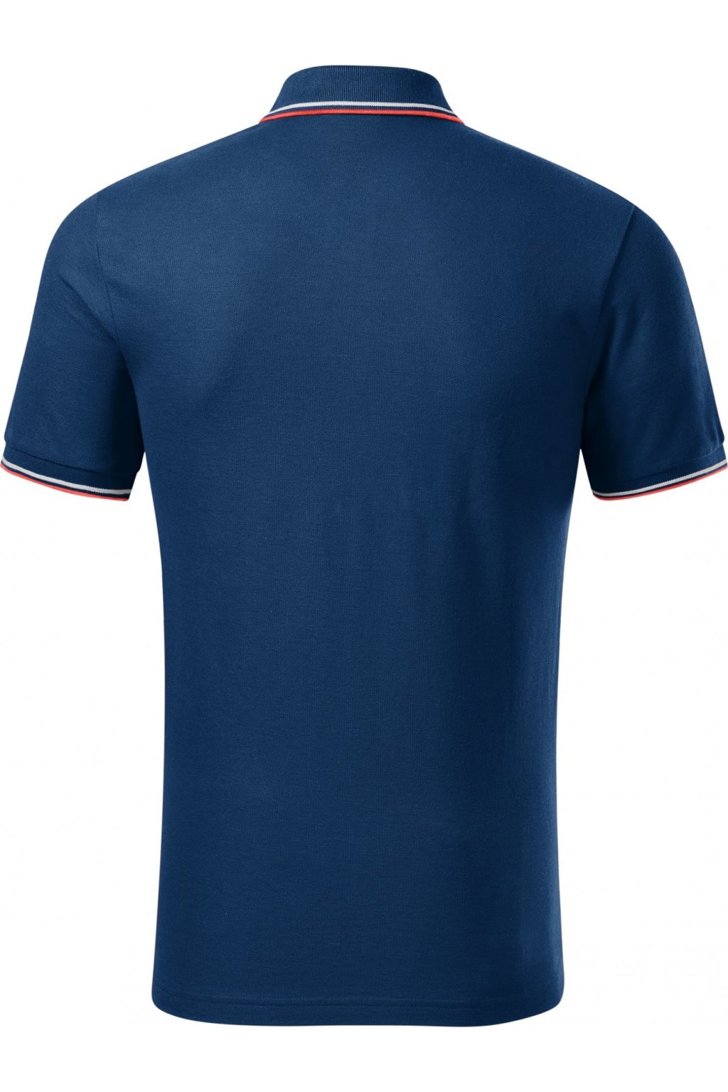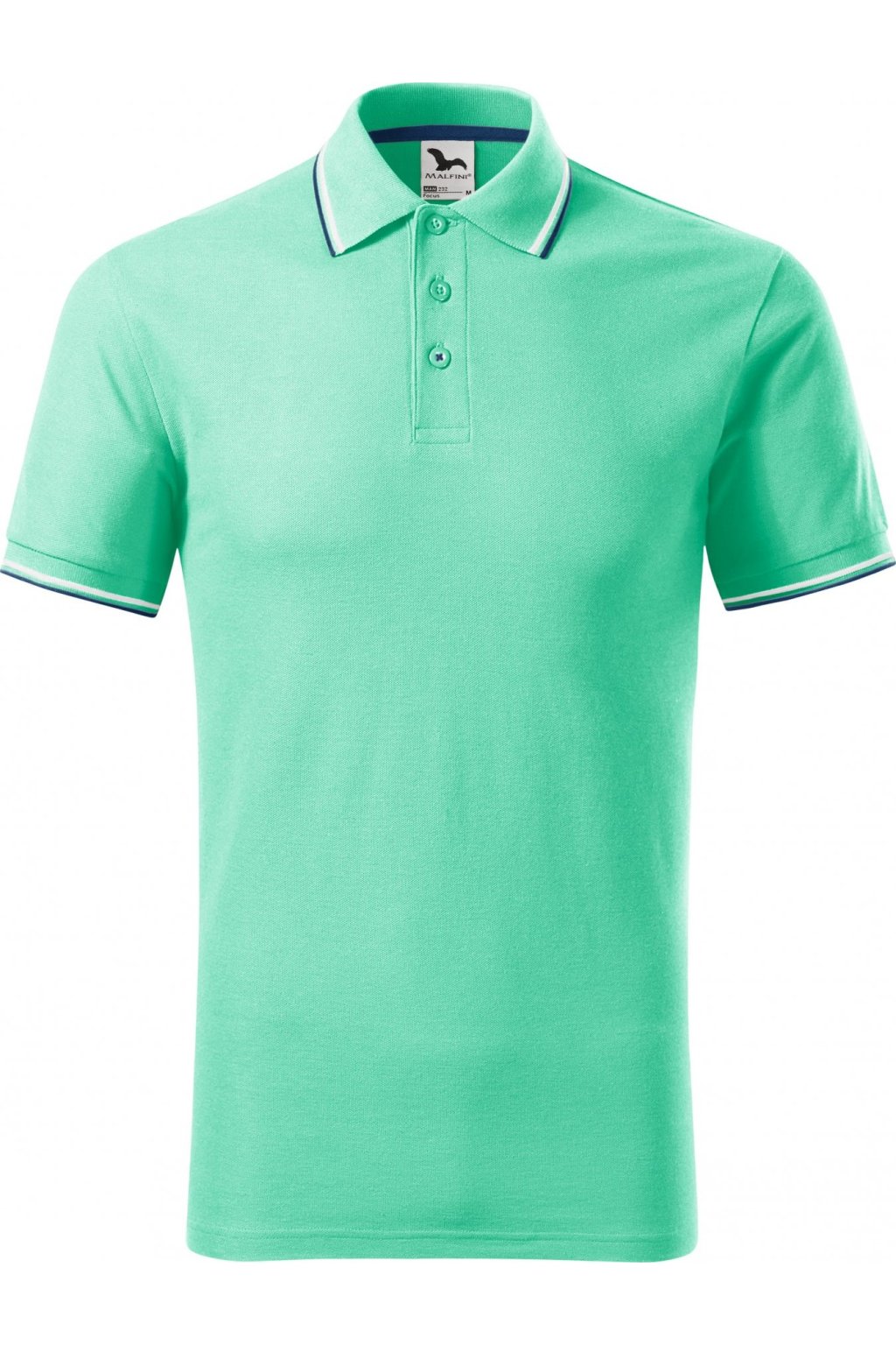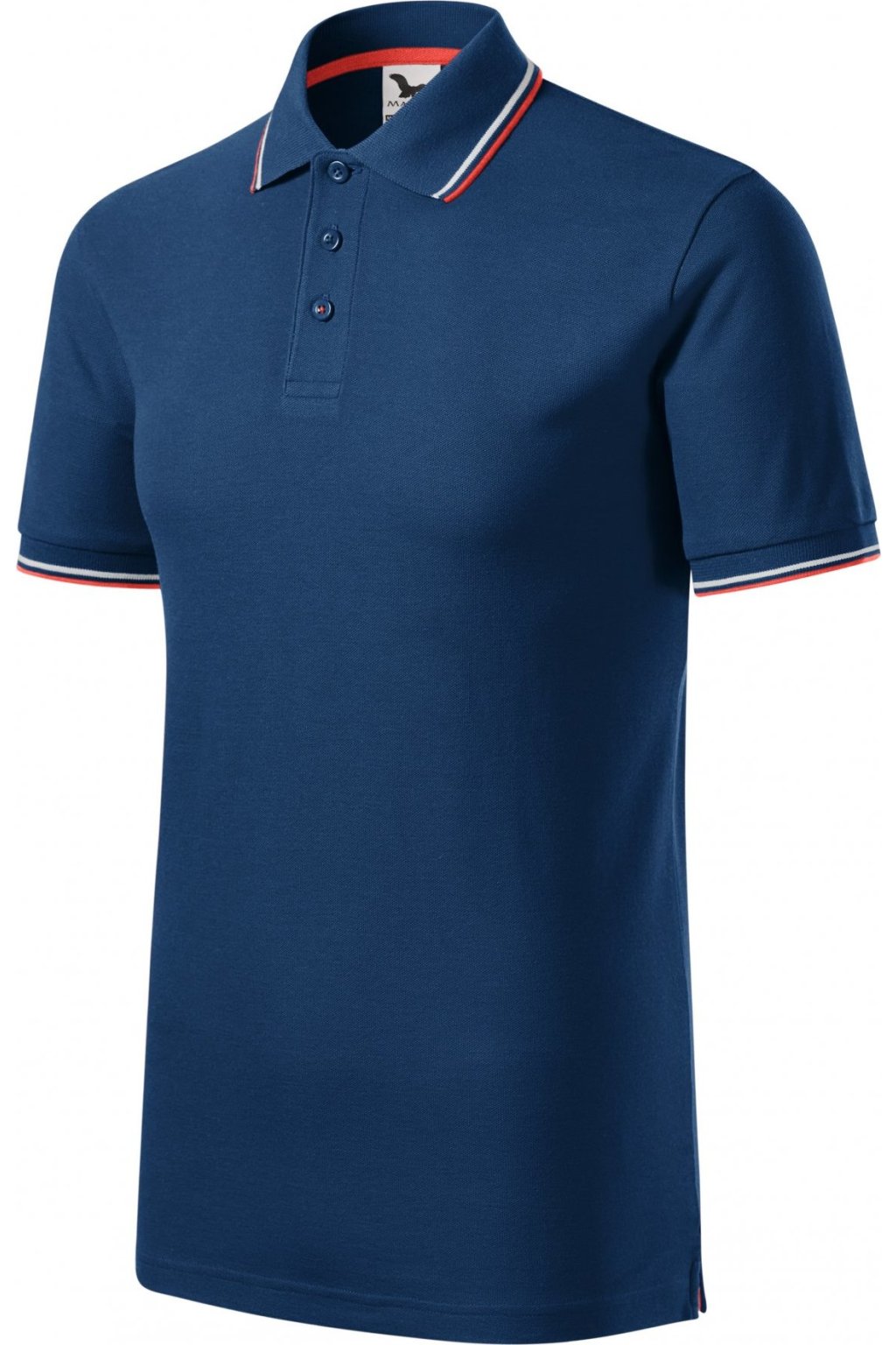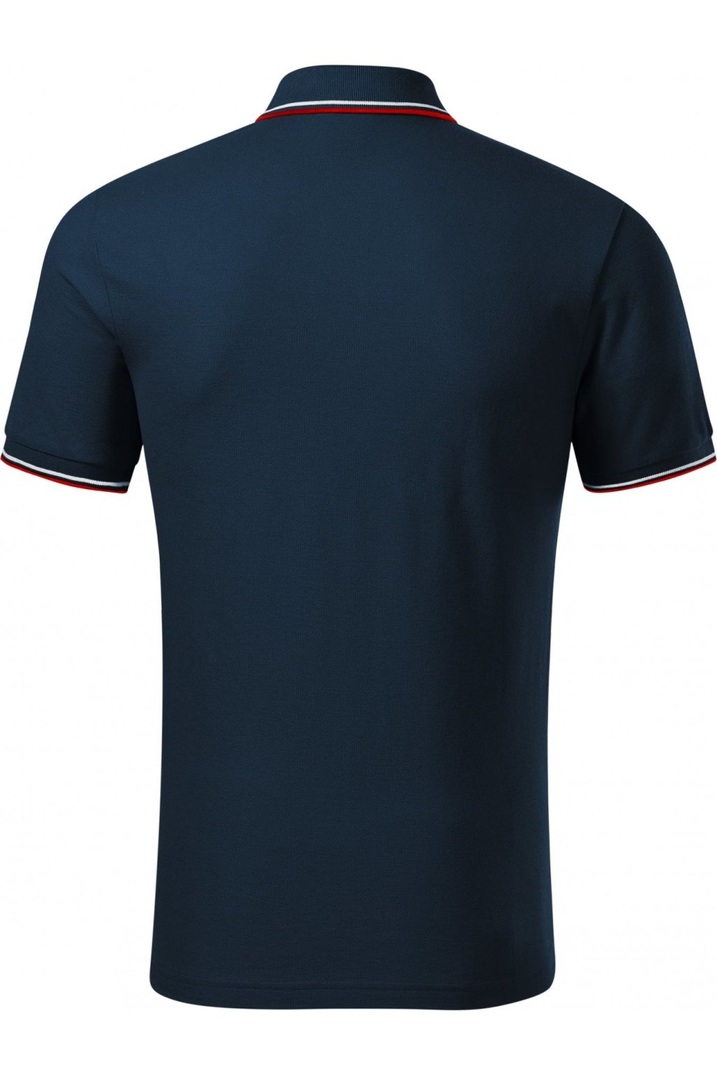 střih s bočními švy, límeček z žebrového úpletu 1:1, 2 kontrastní proužky na rukávu a límečku , léga s 3 knoflíčky v barvě materiálu, spodní knoflíček přišitý kontrastní nití, vnitřní průkrčník začištěn kontrastní páskou, zpevnění ramenních švů páskou, rozparky v bočních švech s kontrastní páskou, zboží II. jakosti, na zboží II. jakosti se nevztahuje reklamace