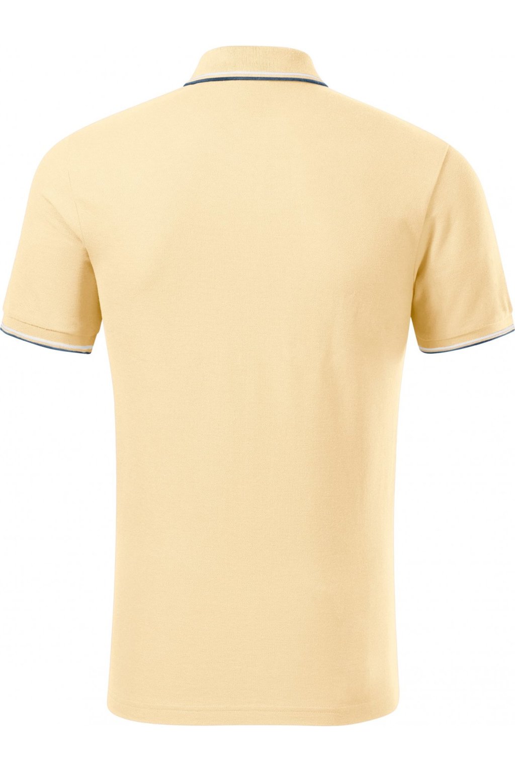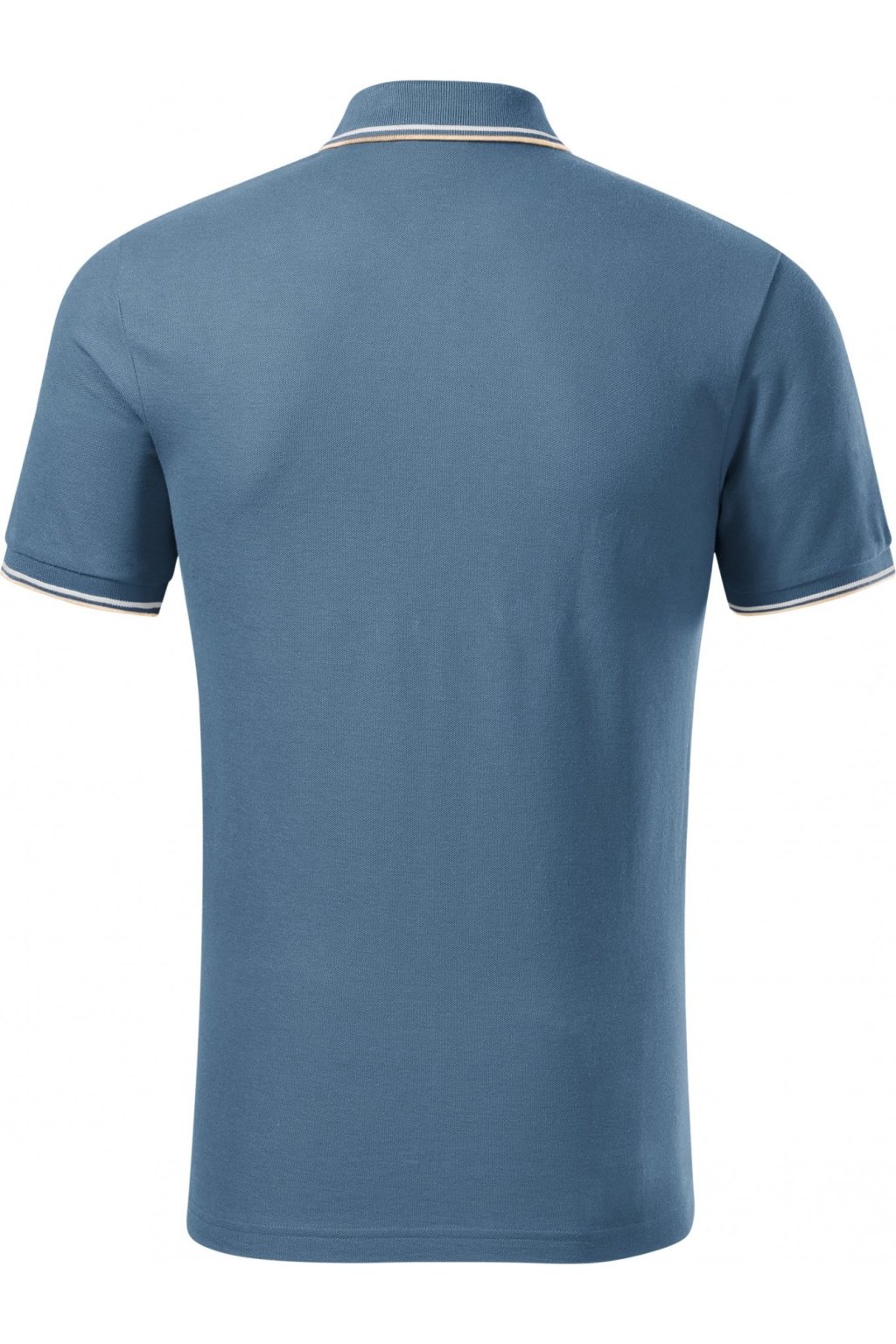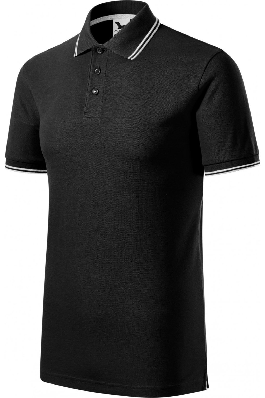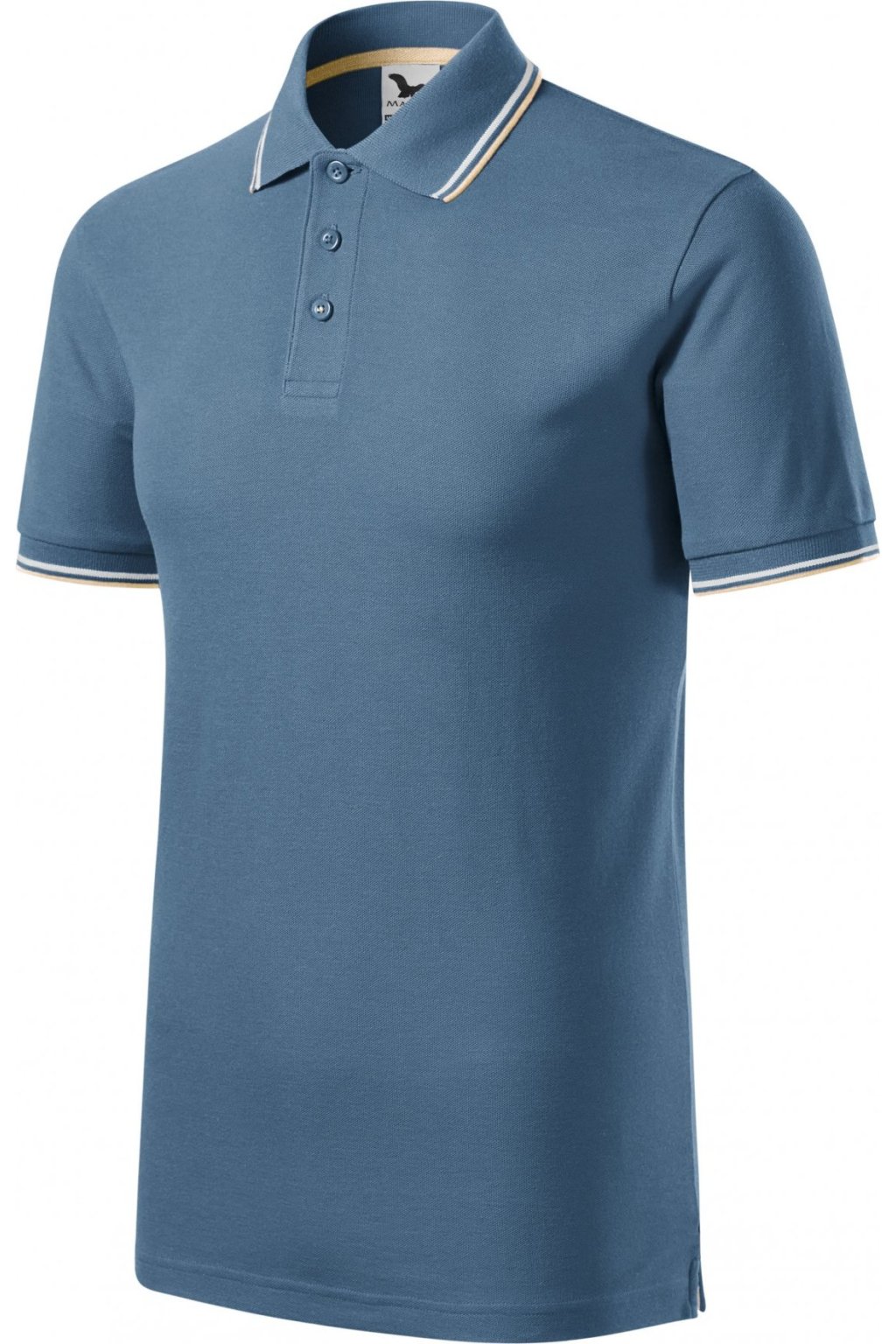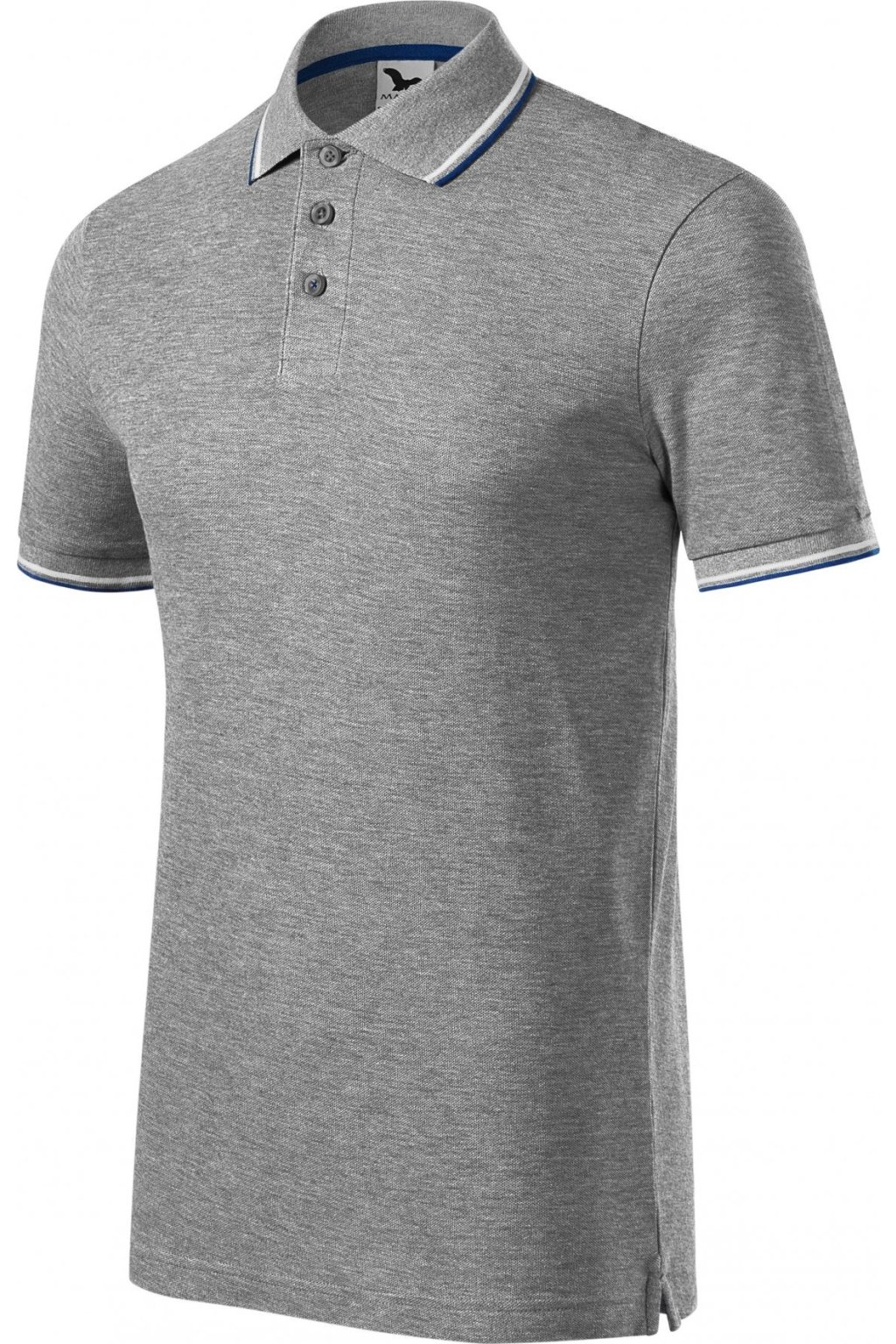 střih s bočními švy, límeček z žebrového úpletu 1:1, 2 kontrastní proužky na rukávu a límečku , léga s 3 knoflíčky v barvě materiálu, spodní knoflíček přišitý kontrastní nití, vnitřní průkrčník začištěn kontrastní páskou, zpevnění ramenních švů páskou, rozparky v bočních švech s kontrastní páskou, zboží II. jakosti, na zboží II. jakosti se nevztahuje reklamace