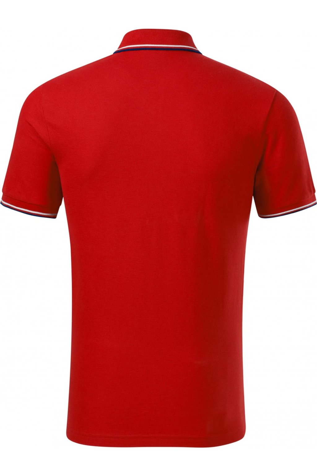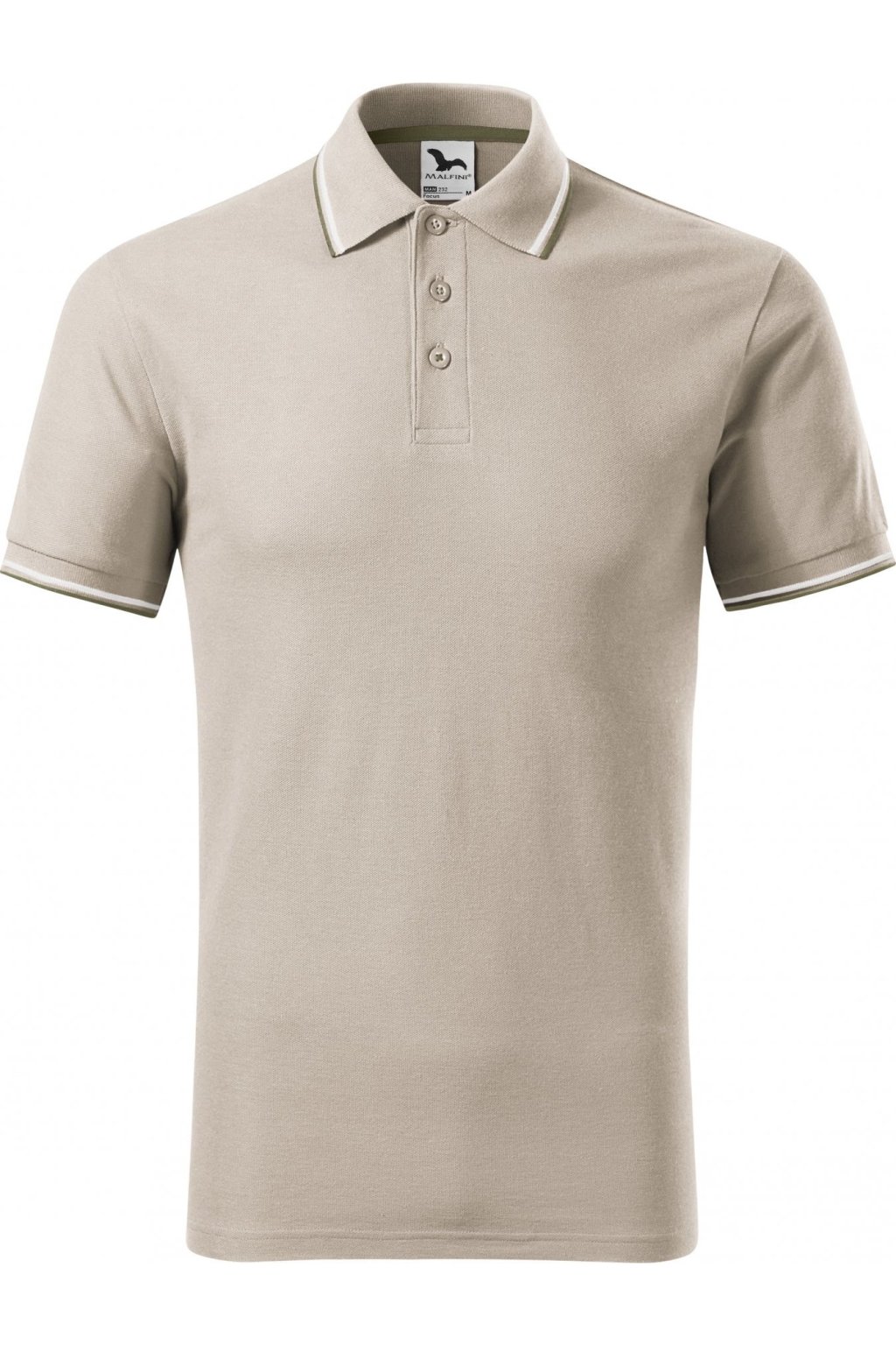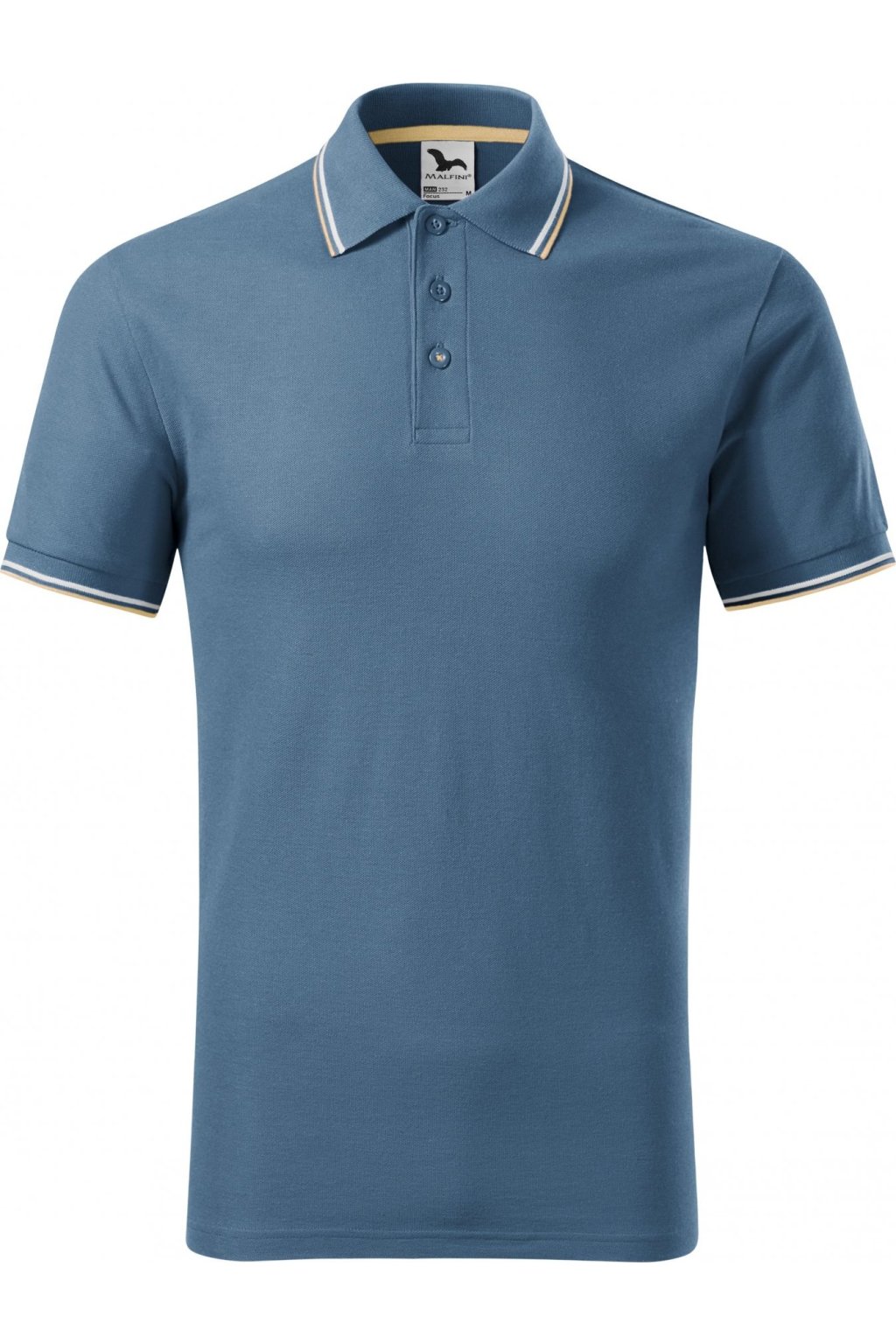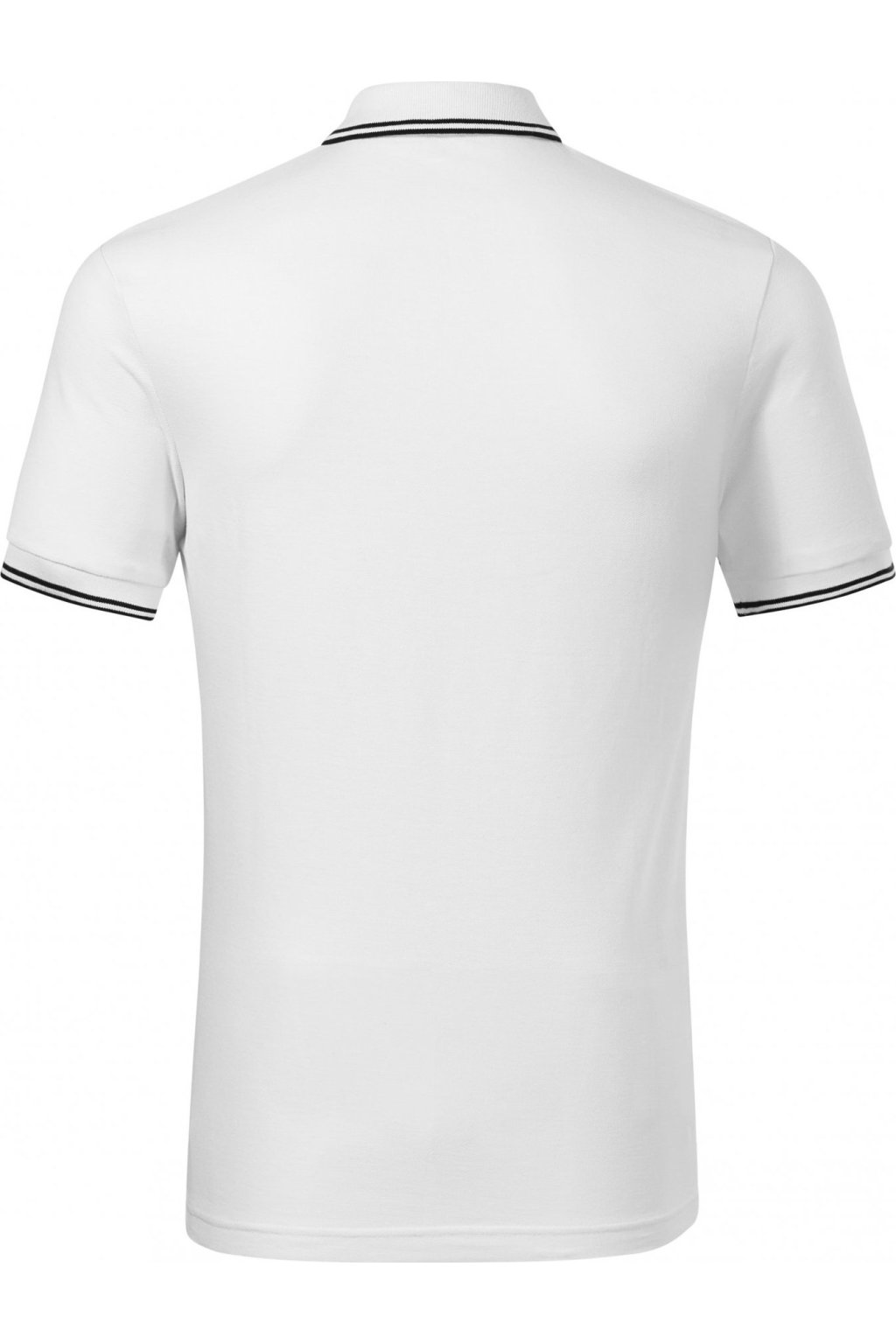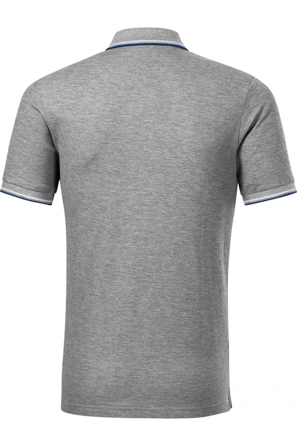 střih s bočními švy, límeček z žebrového úpletu 1:1, 2 kontrastní proužky na rukávu a límečku , léga s 3 knoflíčky v barvě materiálu, spodní knoflíček přišitý kontrastní nití, vnitřní průkrčník začištěn kontrastní páskou, zpevnění ramenních švů páskou, rozparky v bočních švech s kontrastní páskou, zboží II. jakosti, na zboží II. jakosti se nevztahuje reklamace