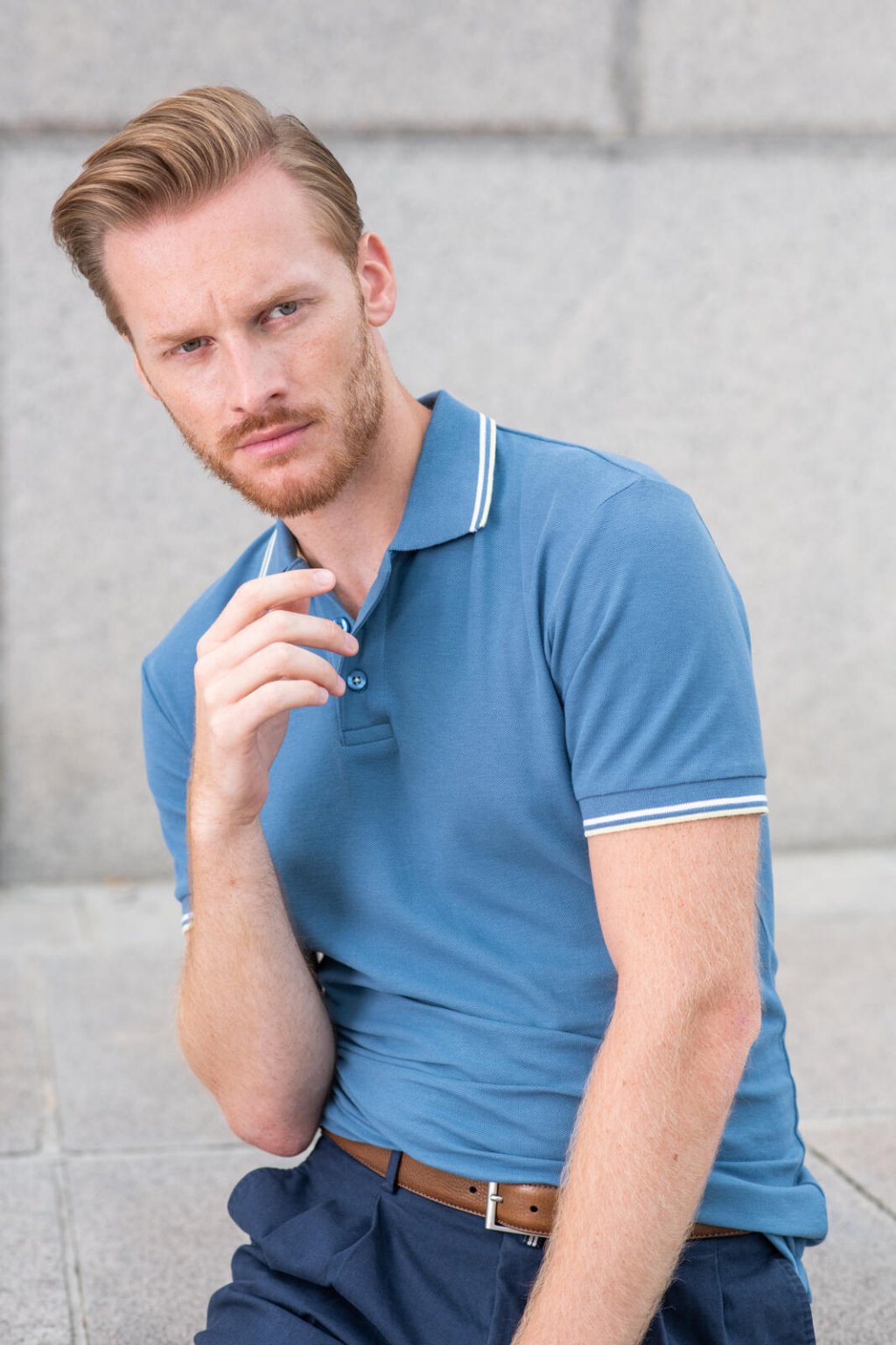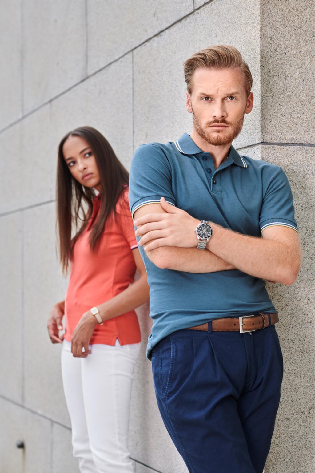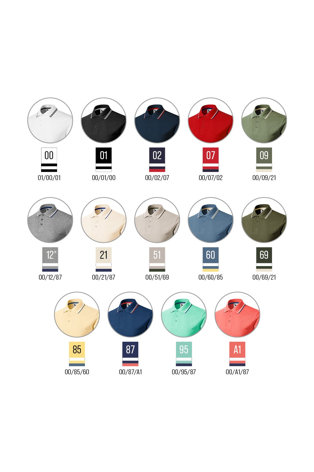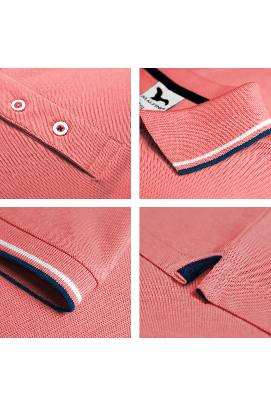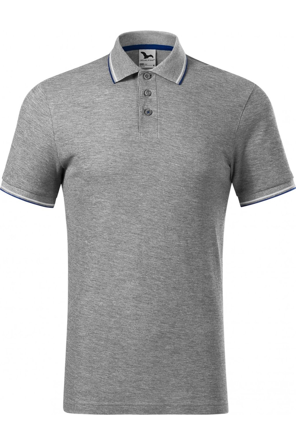 střih s bočními švy, límeček z žebrového úpletu 1:1, 2 kontrastní proužky na rukávu a límečku , léga s 3 knoflíčky v barvě materiálu, spodní knoflíček přišitý kontrastní nití, vnitřní průkrčník začištěn kontrastní páskou, zpevnění ramenních švů páskou, rozparky v bočních švech s kontrastní páskou, zboží II. jakosti, na zboží II. jakosti se nevztahuje reklamace