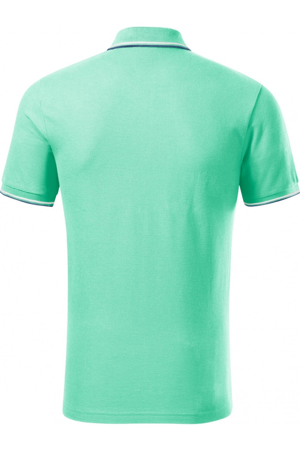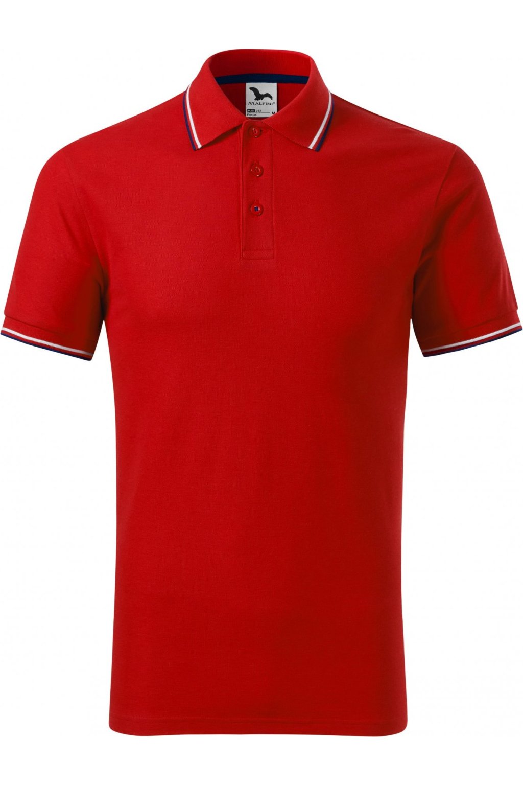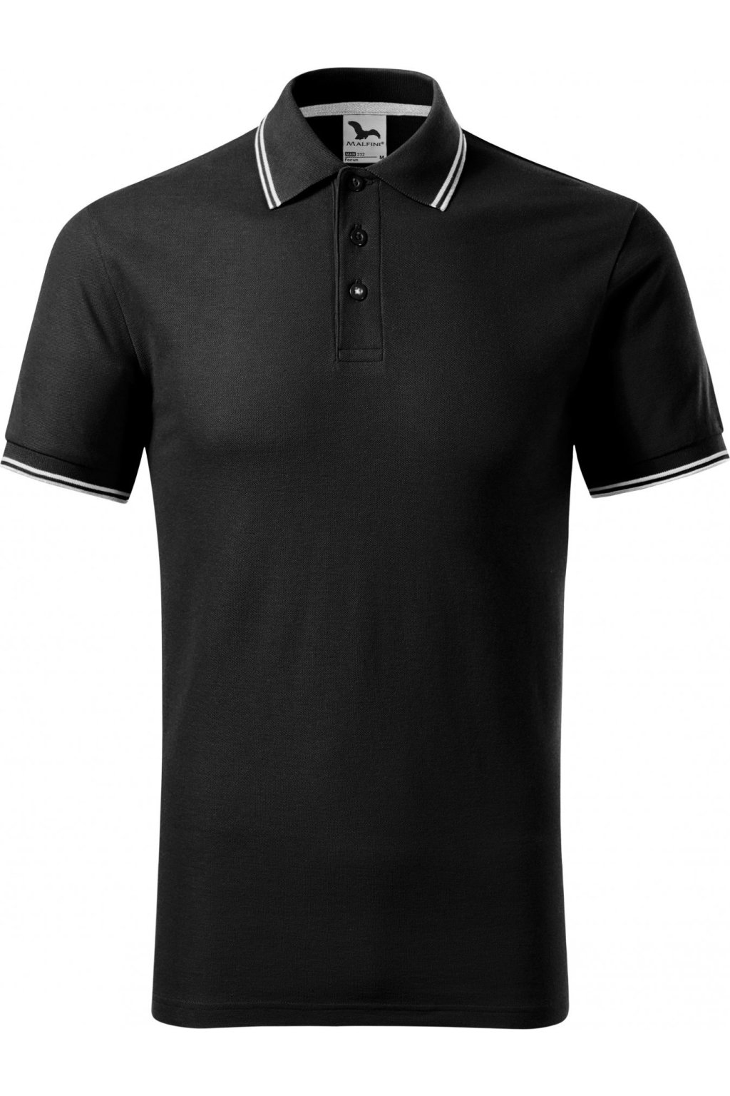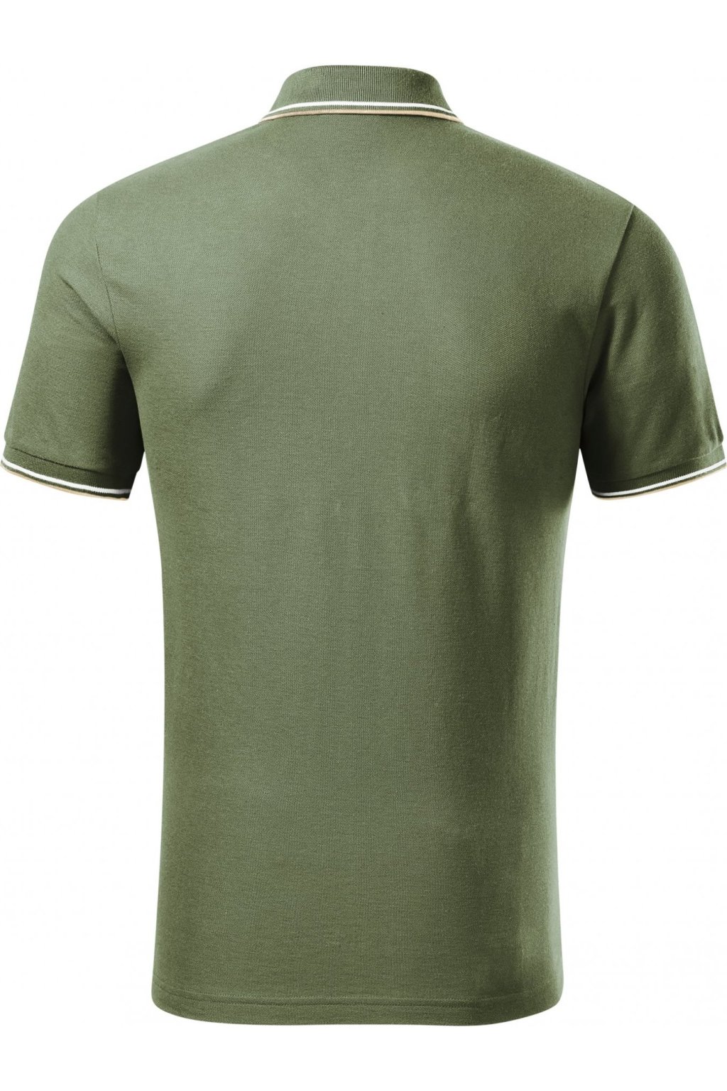 střih s bočními švy, límeček z žebrového úpletu 1:1, 2 kontrastní proužky na rukávu a límečku , léga s 3 knoflíčky v barvě materiálu, spodní knoflíček přišitý kontrastní nití, vnitřní průkrčník začištěn kontrastní páskou, zpevnění ramenních švů páskou, rozparky v bočních švech s kontrastní páskou, zboží II. jakosti, na zboží II. jakosti se nevztahuje reklamace