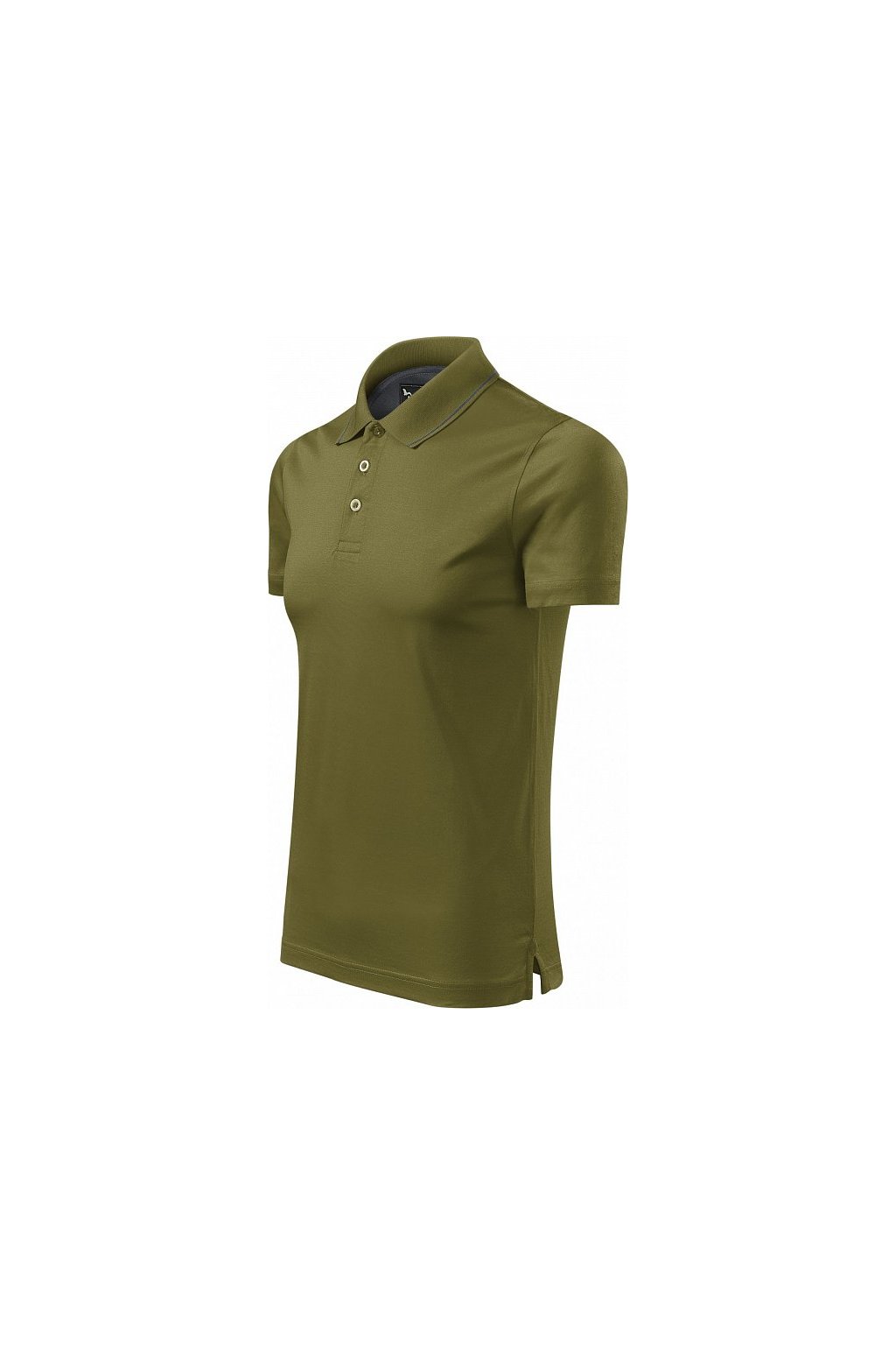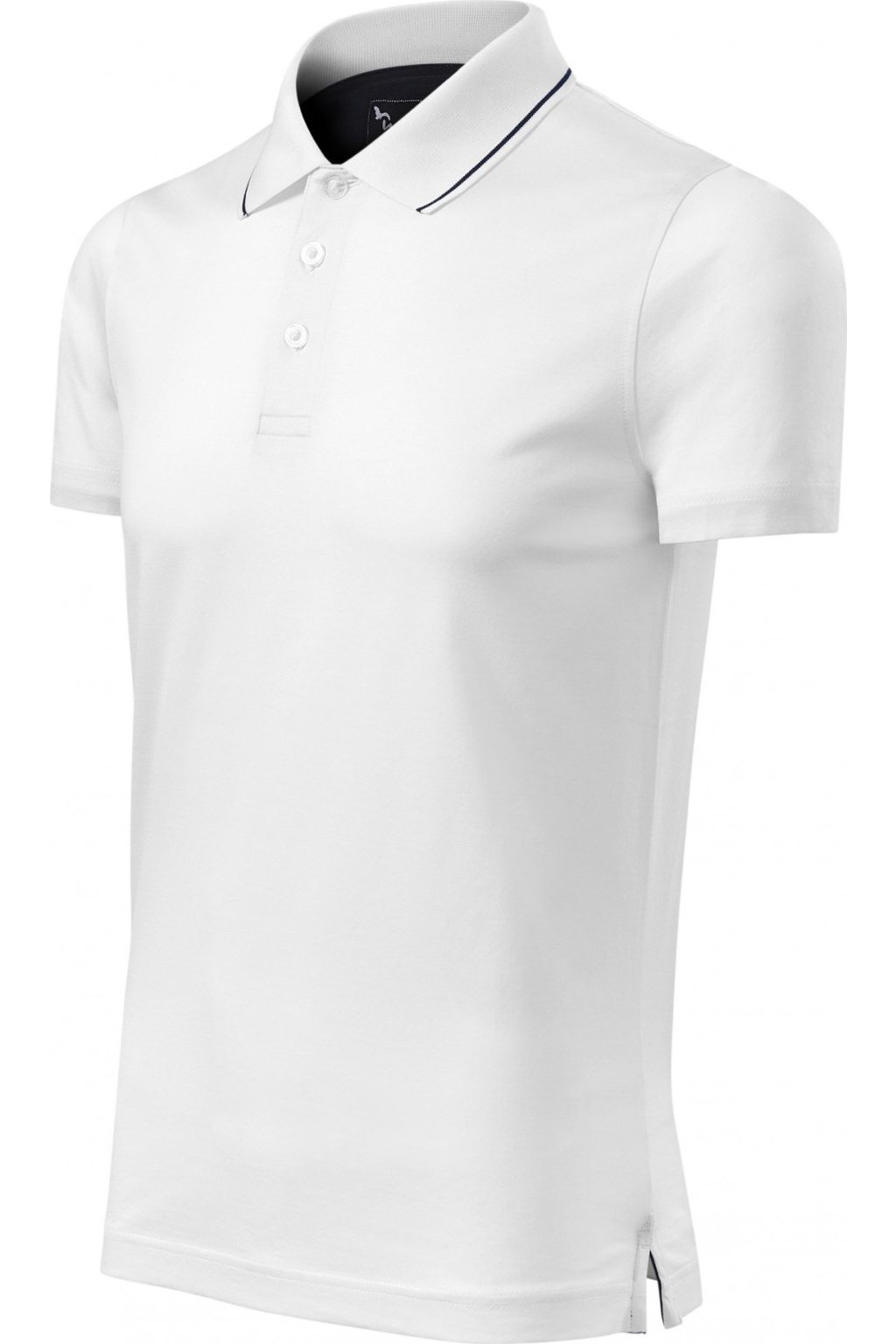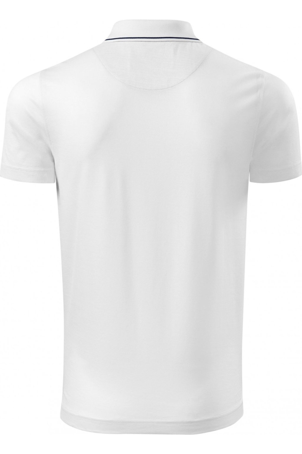 střih s bočními švy, límeček s kontrastním proužkem z žebrového úpletu 1:1, léga s 3 knoflíčky v barvě materiálu, rozparky v bočních švech s kontrastní páskou, vnitřní průkrčník začištěn kontrastní páskou, zpevnění ramenních švů páskou, bavlna zušlechtěna mercerací