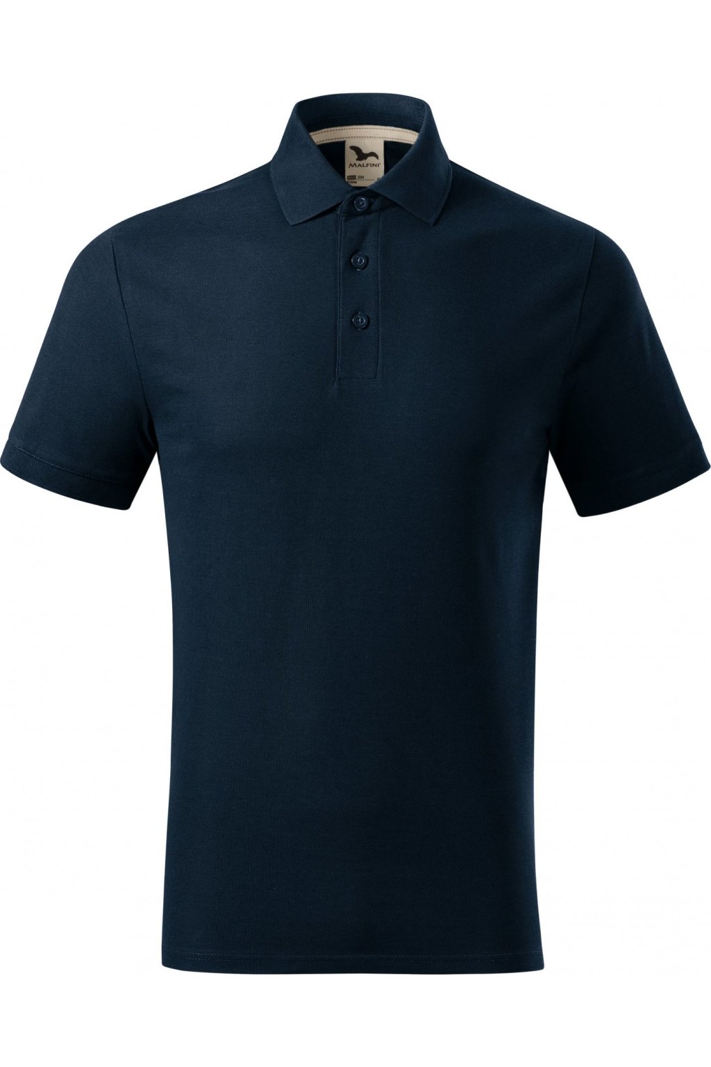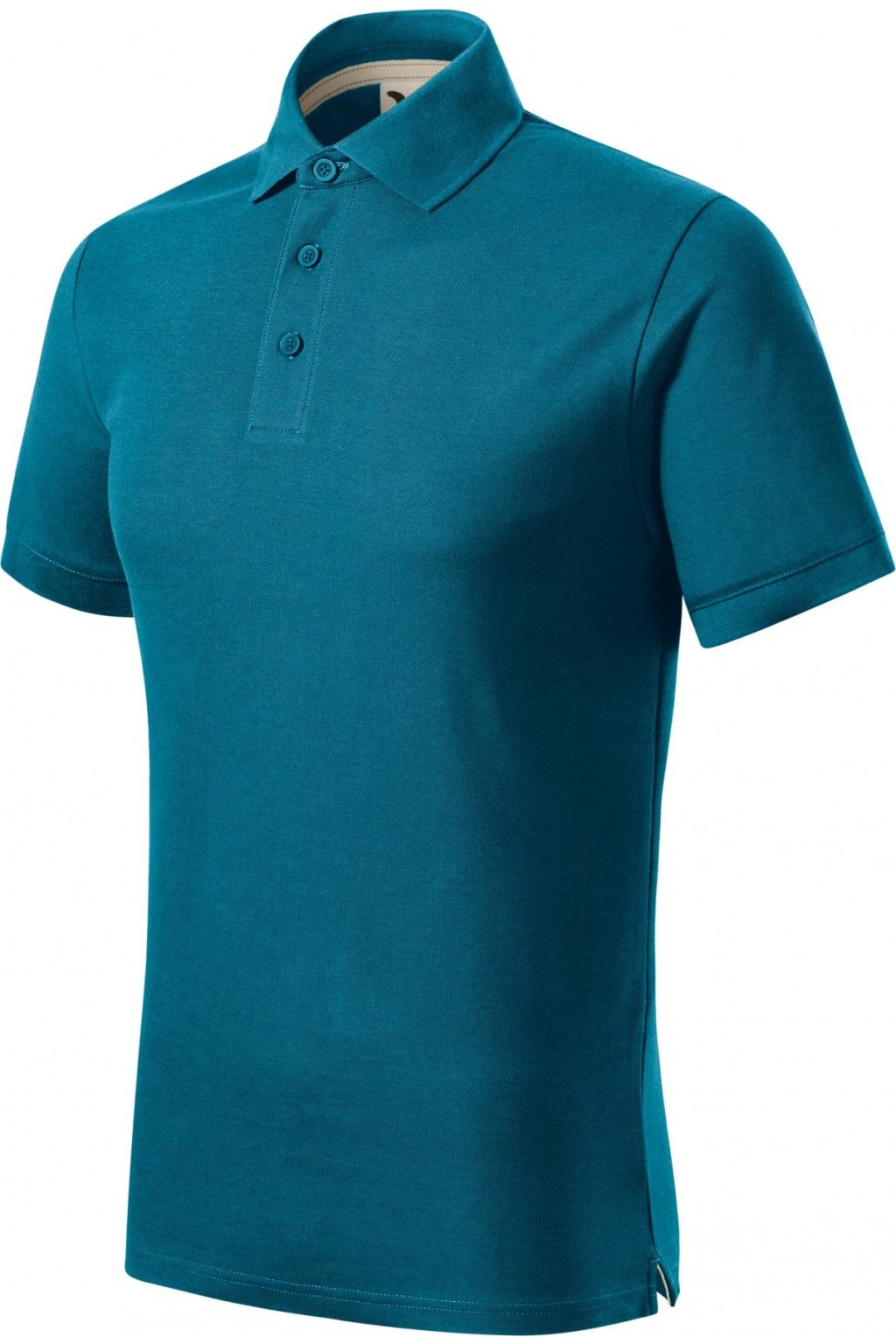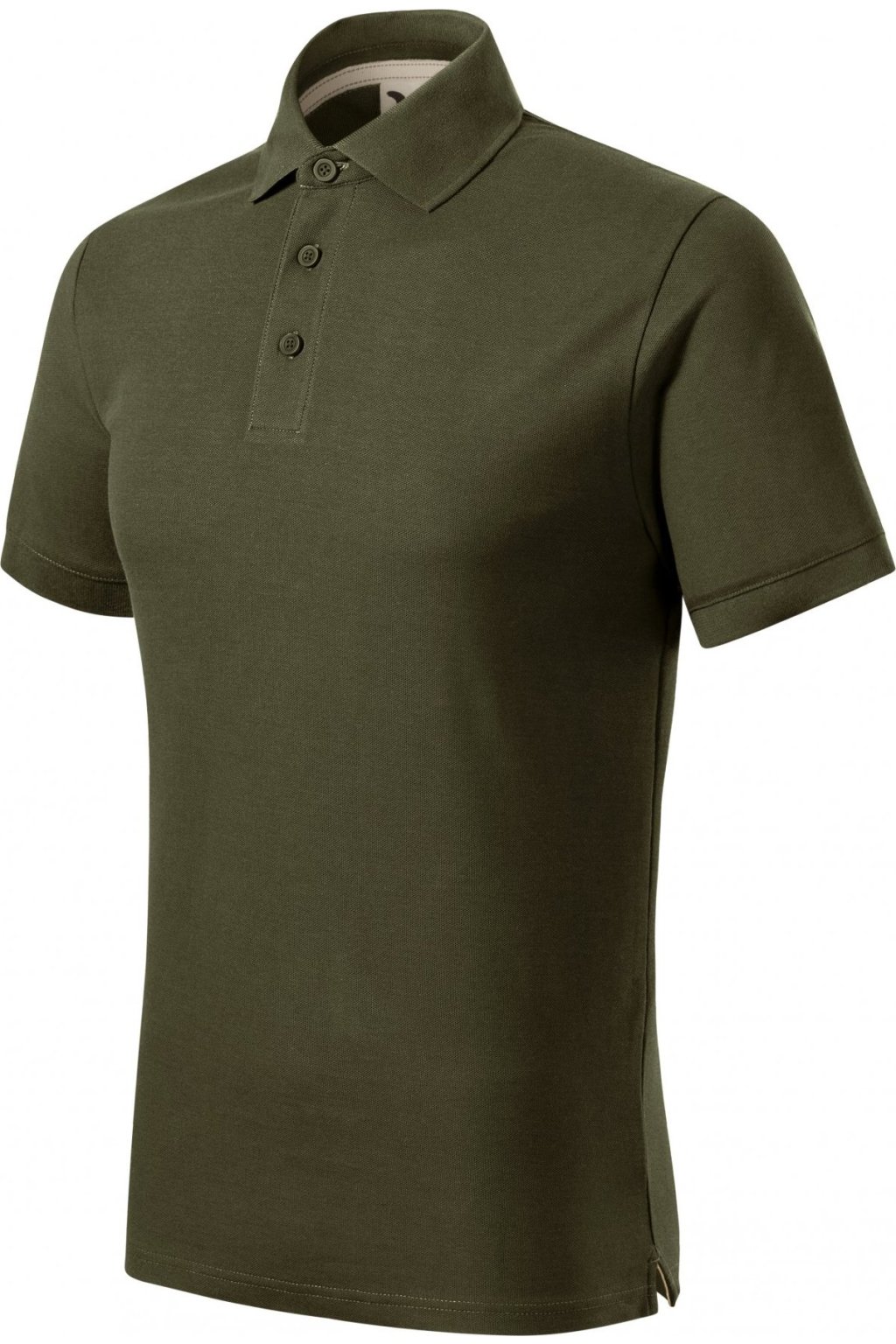 certifikovaná organická bavlna, střih s bočními švy, límeček a lemy rukávů z žebrového úpletu 1:1, léga s 3 knoflíčky v barvě materiálu, vnitřní průkrčník začištěn kontrastní páskou, zpevnění ramenních švů páskou, rozparky v bočních švech s kontrastní páskou