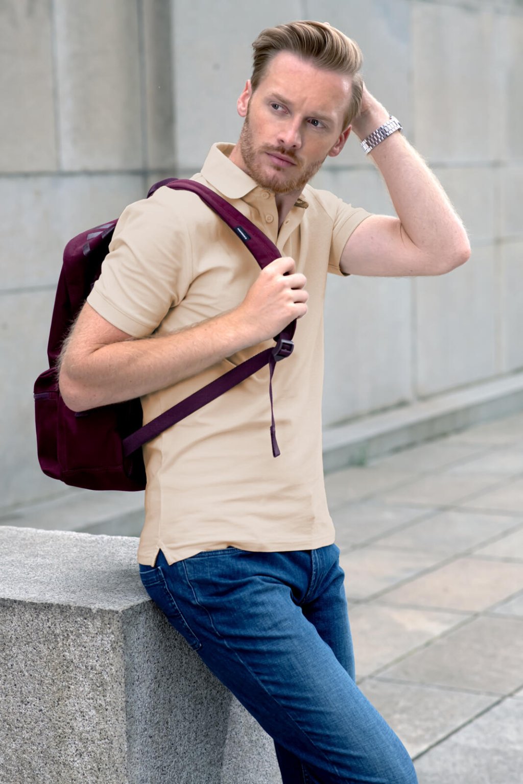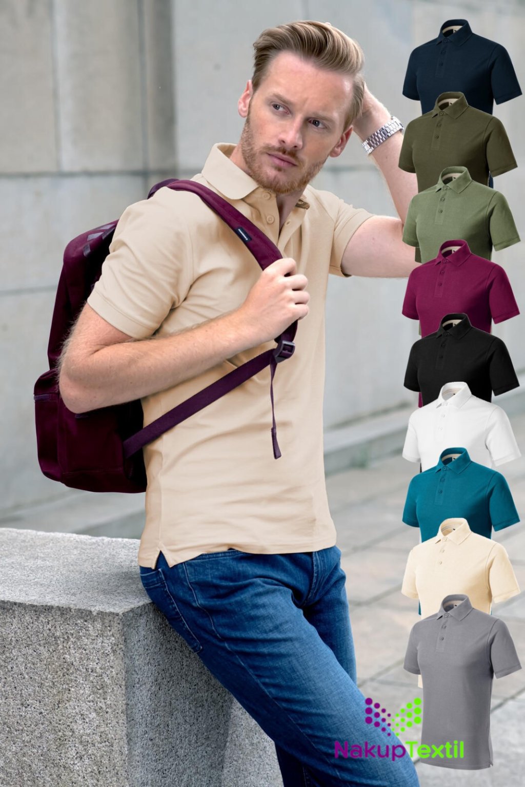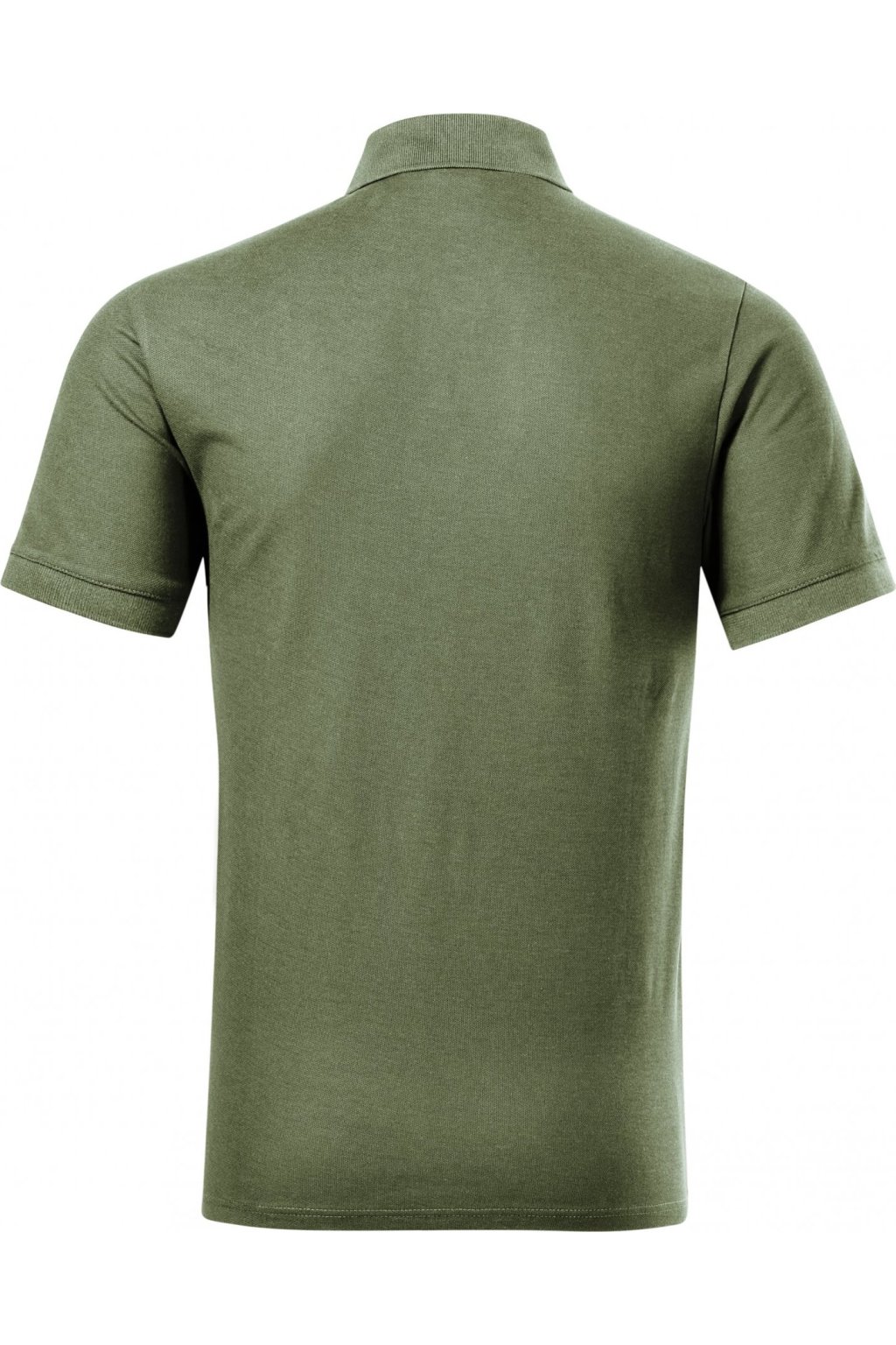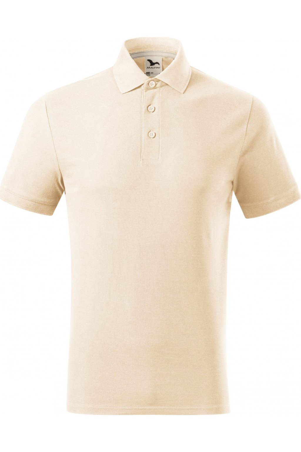 certifikovaná organická bavlna, střih s bočními švy, límeček a lemy rukávů z žebrového úpletu 1:1, léga s 3 knoflíčky v barvě materiálu, vnitřní průkrčník začištěn kontrastní páskou, zpevnění ramenních švů páskou, rozparky v bočních švech s kontrastní páskou