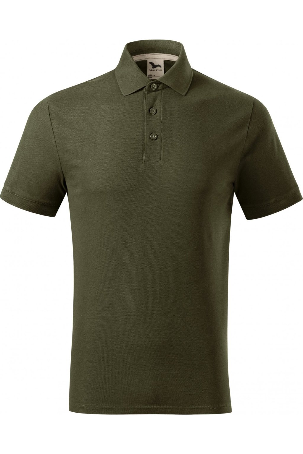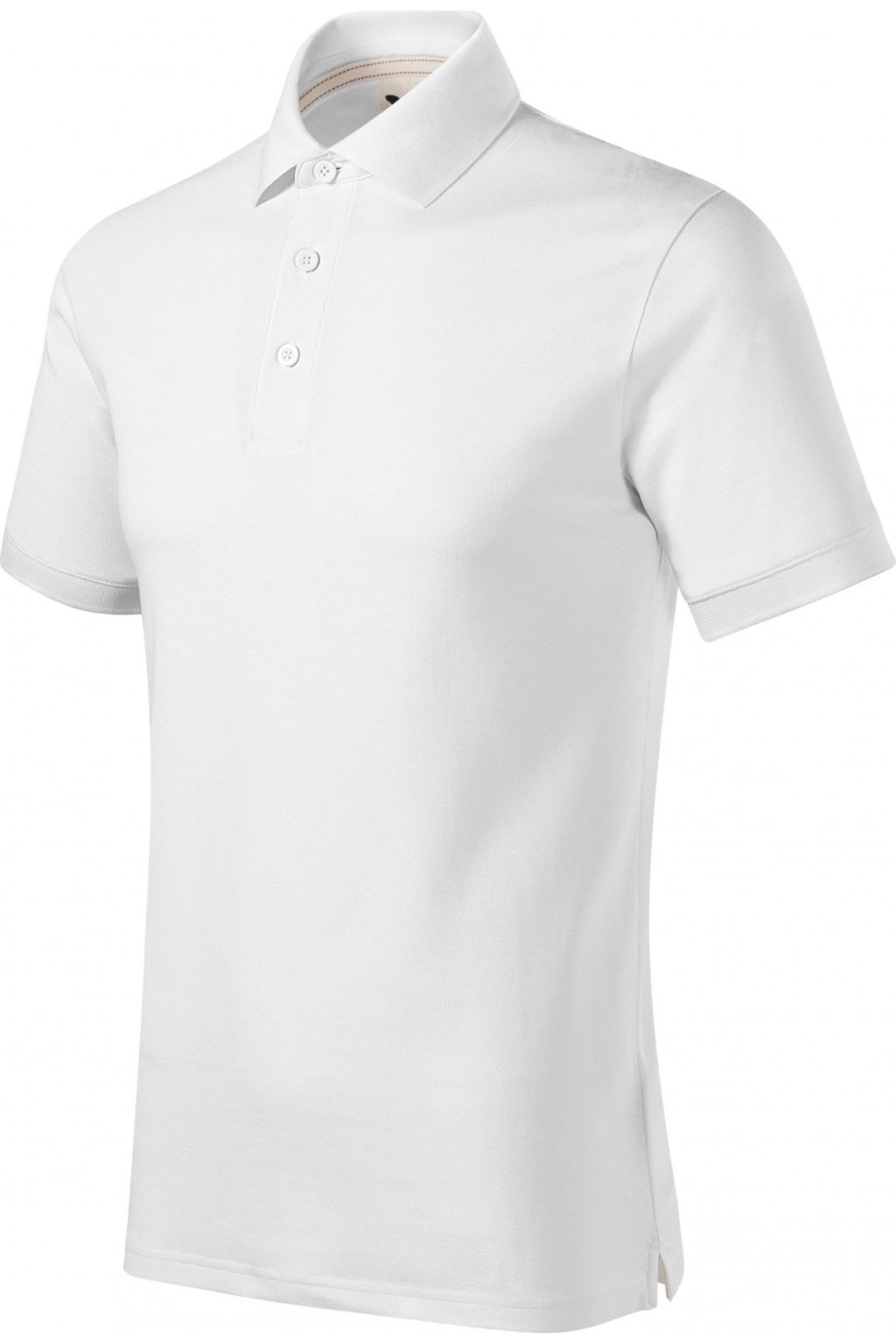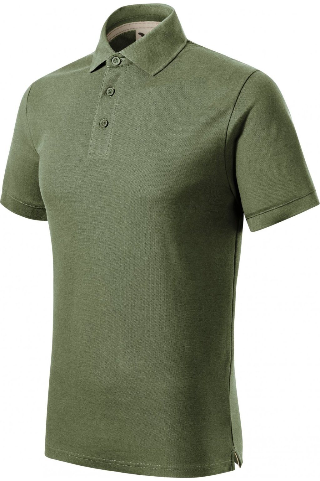 certifikovaná organická bavlna, střih s bočními švy, límeček a lemy rukávů z žebrového úpletu 1:1, léga s 3 knoflíčky v barvě materiálu, vnitřní průkrčník začištěn kontrastní páskou, zpevnění ramenních švů páskou, rozparky v bočních švech s kontrastní páskou