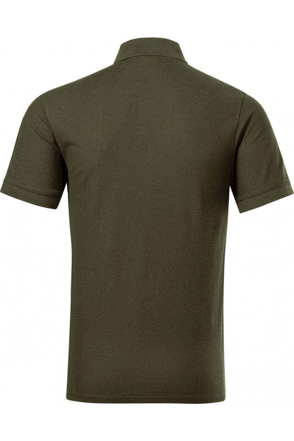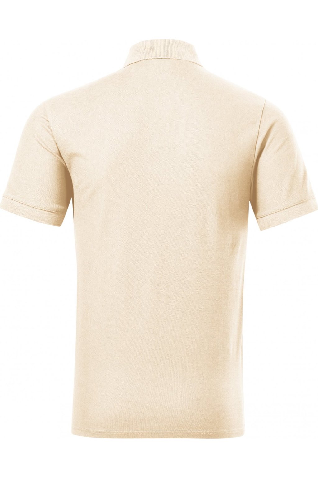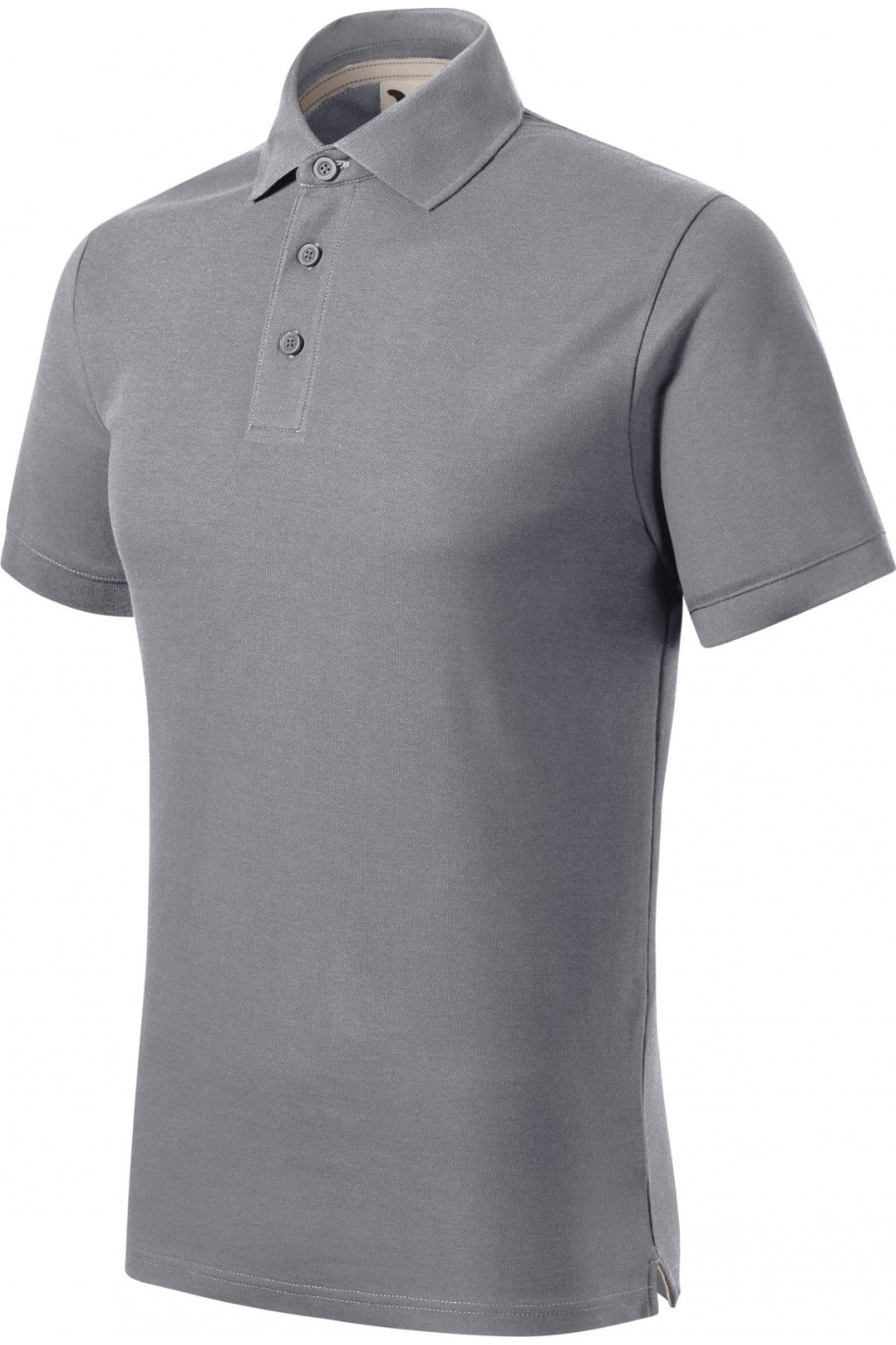 certifikovaná organická bavlna, střih s bočními švy, límeček a lemy rukávů z žebrového úpletu 1:1, léga s 3 knoflíčky v barvě materiálu, vnitřní průkrčník začištěn kontrastní páskou, zpevnění ramenních švů páskou, rozparky v bočních švech s kontrastní páskou