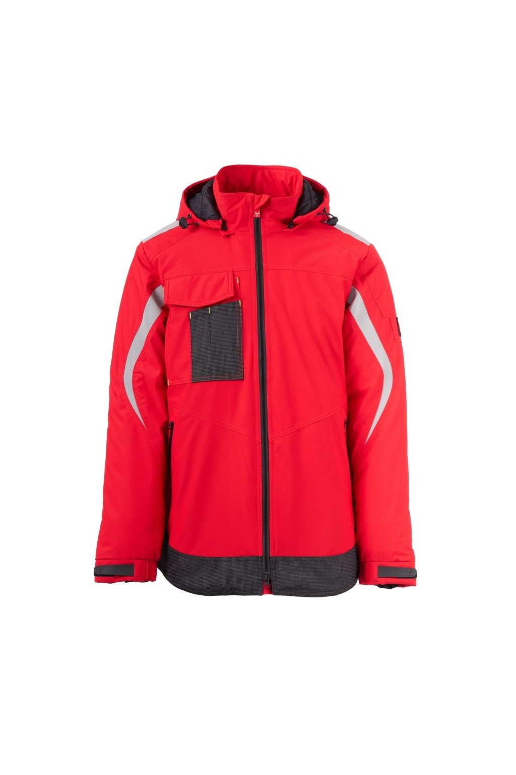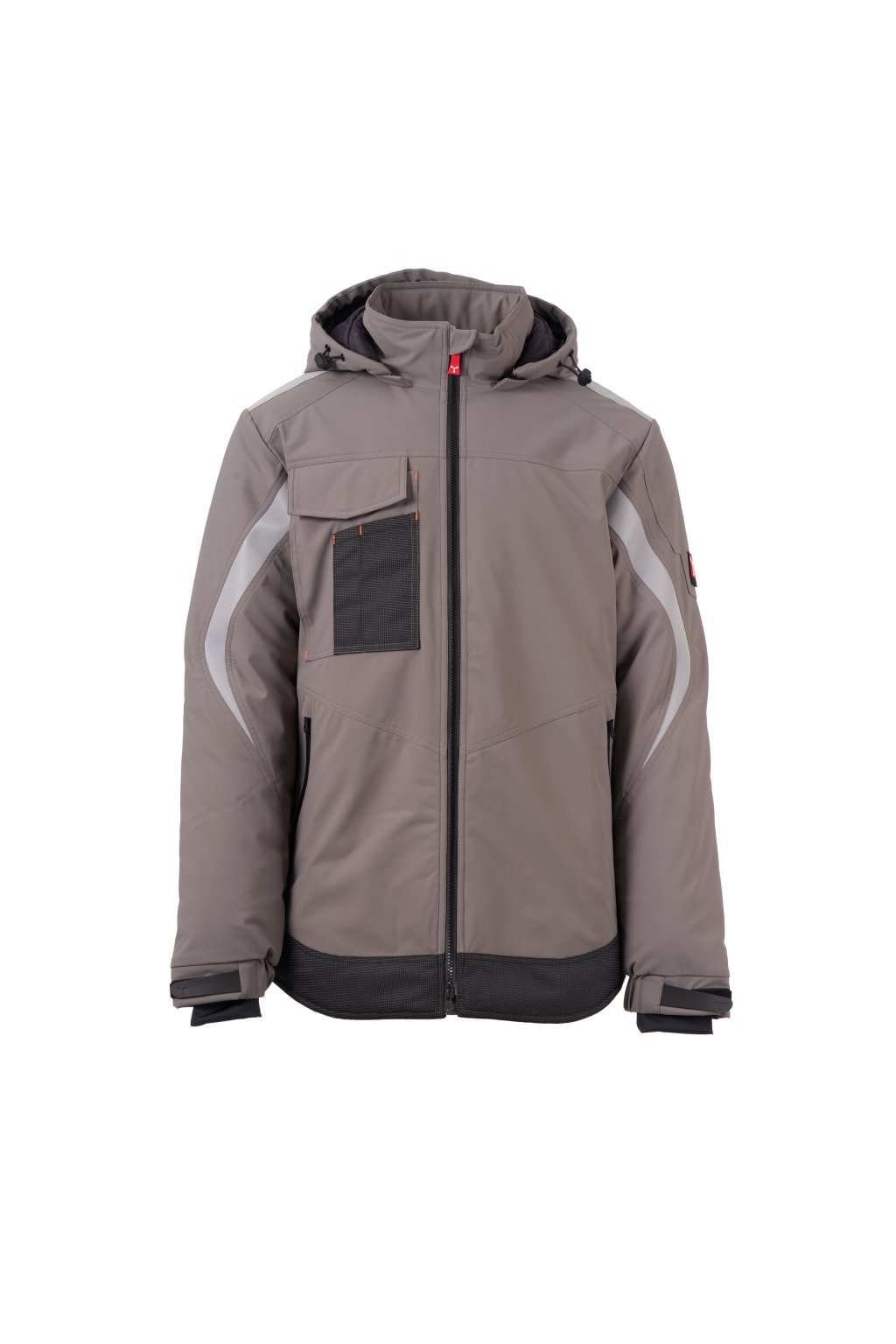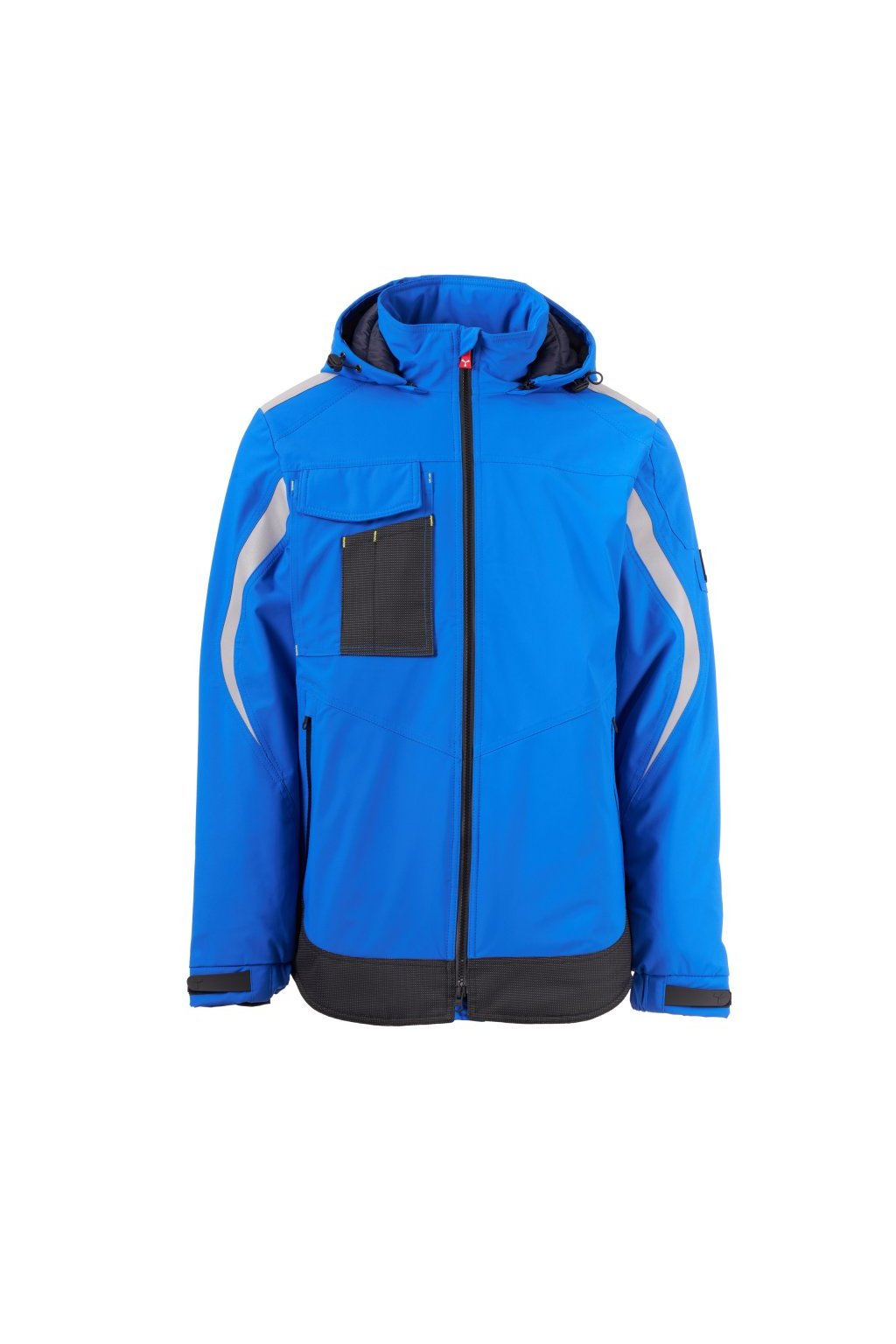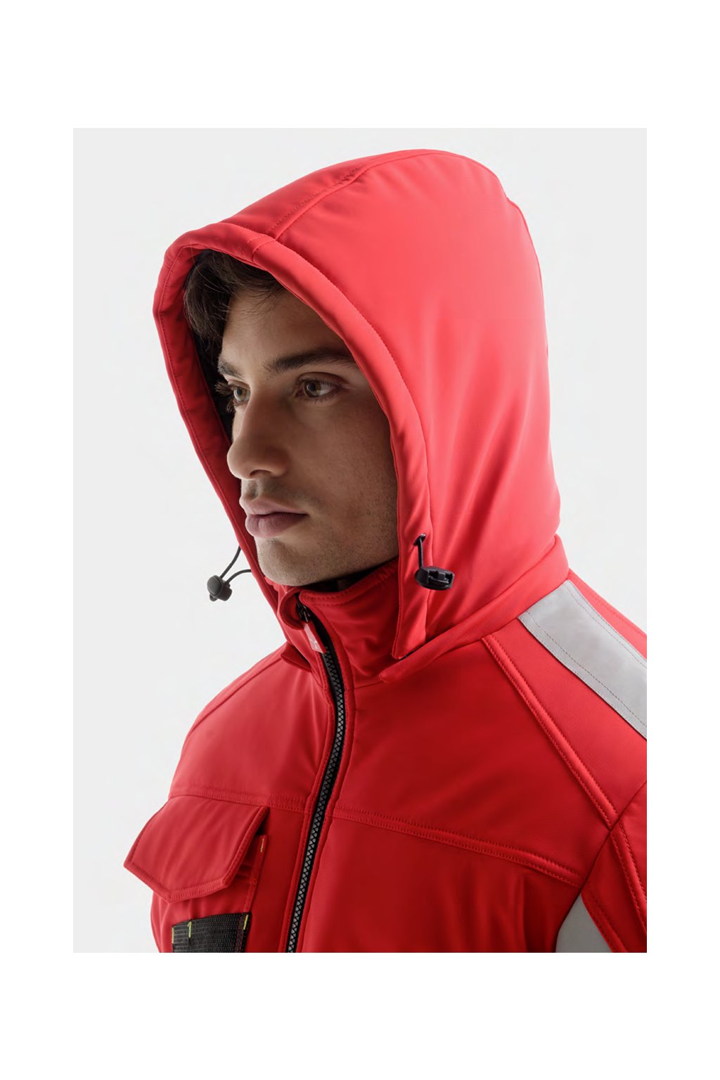 WP 8000 mm H₂O, WVT 5000 g/m² 24h. Pánský softshell 3 vrstvy, střední výplň (140g/m²), zapínání na zip SBS s kovovým jezdcem „semi-auto lock“ a přizpůsobeným taháčkem. Odnímatelná kapuce se stahovací šňůrkou. Reflexní páska na ramenou a pažích. Elastické stahovací manžety na suchý zip a s vnitřní manžetou. Kapsa na hrudi Lock System s klopou, kroužkem na jmenovku a očkem na pero. Dvě boční kapsy s voděodolným zipem. Prvek „life-saving“ na zadní straně, s vnitřním reflexním logem a voděodolným zipem. Dvě vnitřní kapsy, z nichž jedna tvarovaná na zip na pravé straně hrudi a druhá na tablet se zapínáním na suchý zip na levé straně. Spodní část stažitelná pomocí přizpůsobených zarážek. Tečkovaná tkanina s reflexním efektem.
