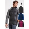 Pánská bunda v kombinaci dvou látek. Napevno přišitá padnoucí kapuce. Rukáv raglánového stylu. Na rukávech, postranních panelech a kapuci látka stylu softshell. Přední a zadní strana z jemné prošívané látky. Obrácený zip v ladící kombinaci s ochranou pro bradu a poutkem. Dvě přední kapsy se zipy. Elastická obruba v ladící kombinaci u krku, na manžetách a spodním lemu. Odnímatelný štítek. Bunda je odolná proti větru.