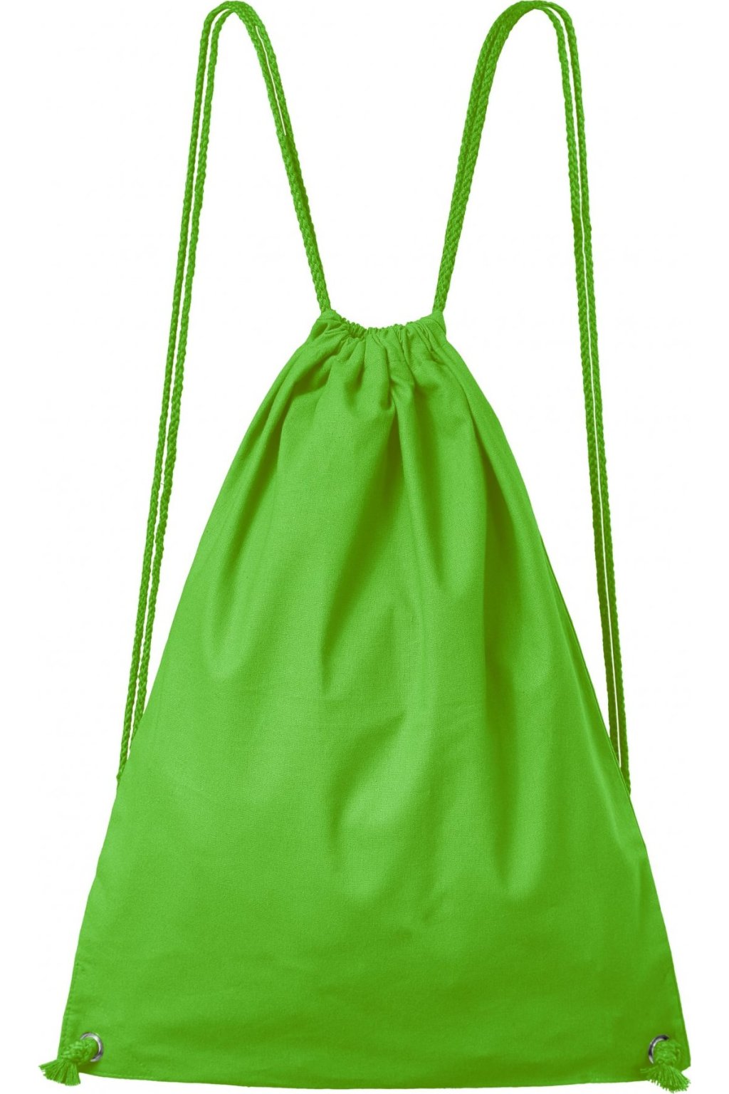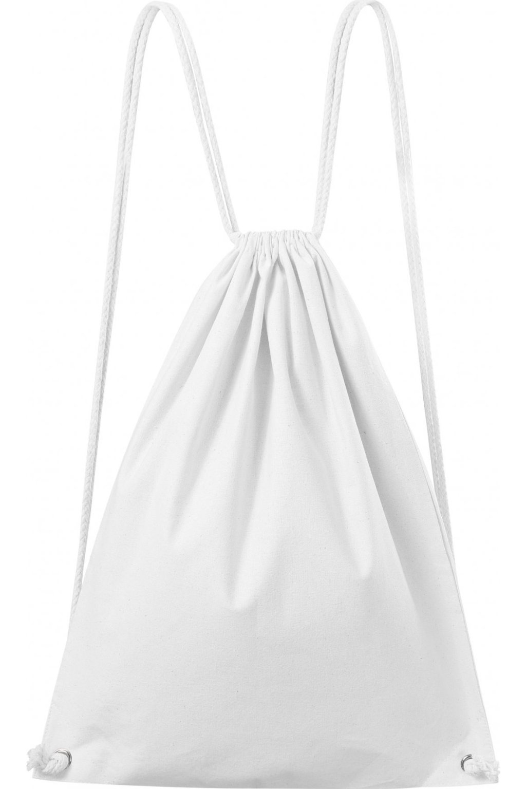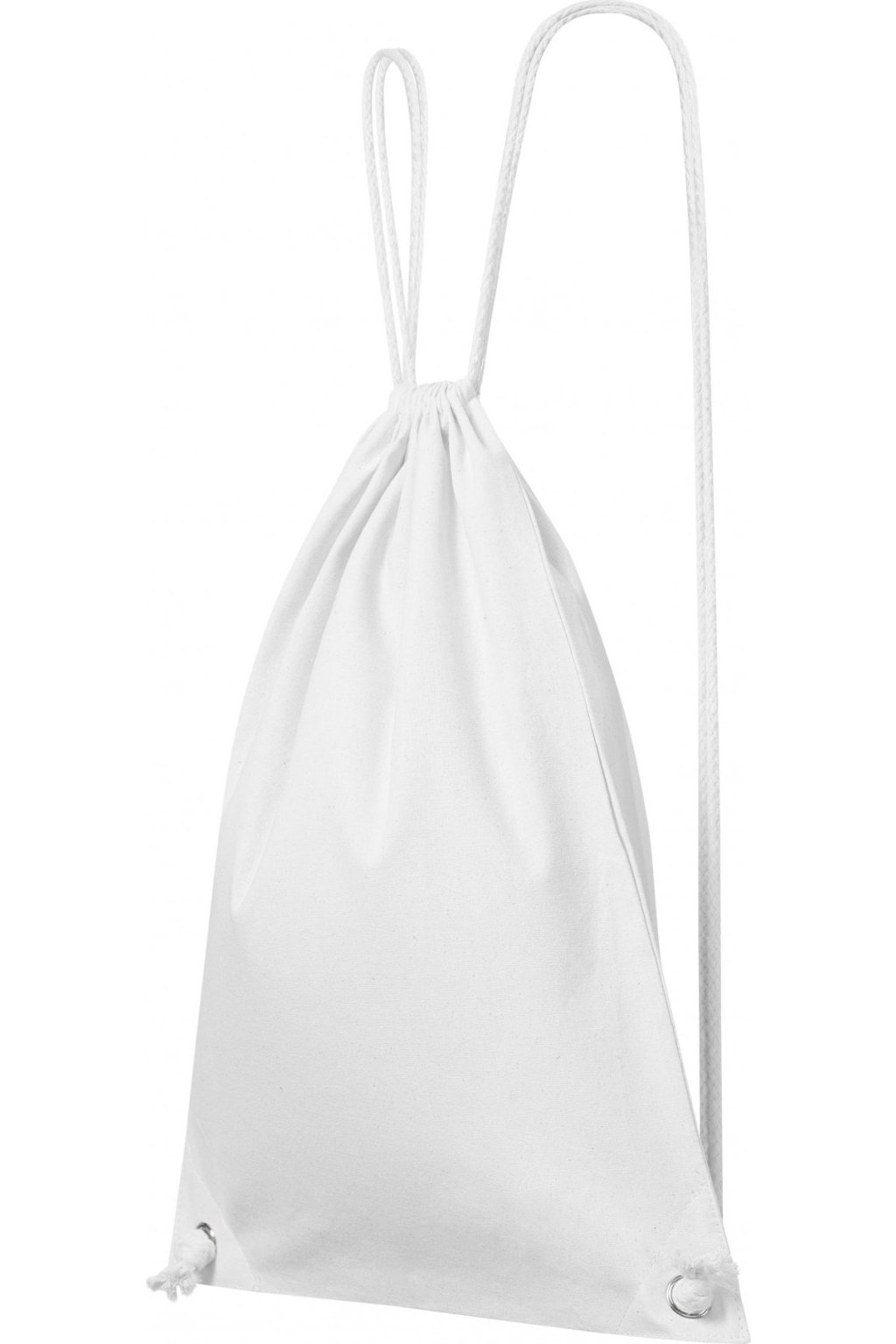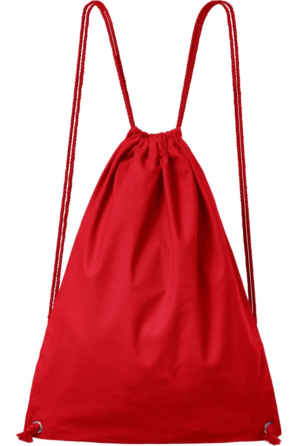 bavlněný tkaný batoh střední gramáže, zavírání na stahování, 2 bavlněné šňůrky v barvě vrchového materiálu, zpevněné dolní rohy dvojitým materiálem a kovovými kroužky, vnitřní kapsa na zip 20 x 23 cm, rozměry batohu 47 x 37 cm