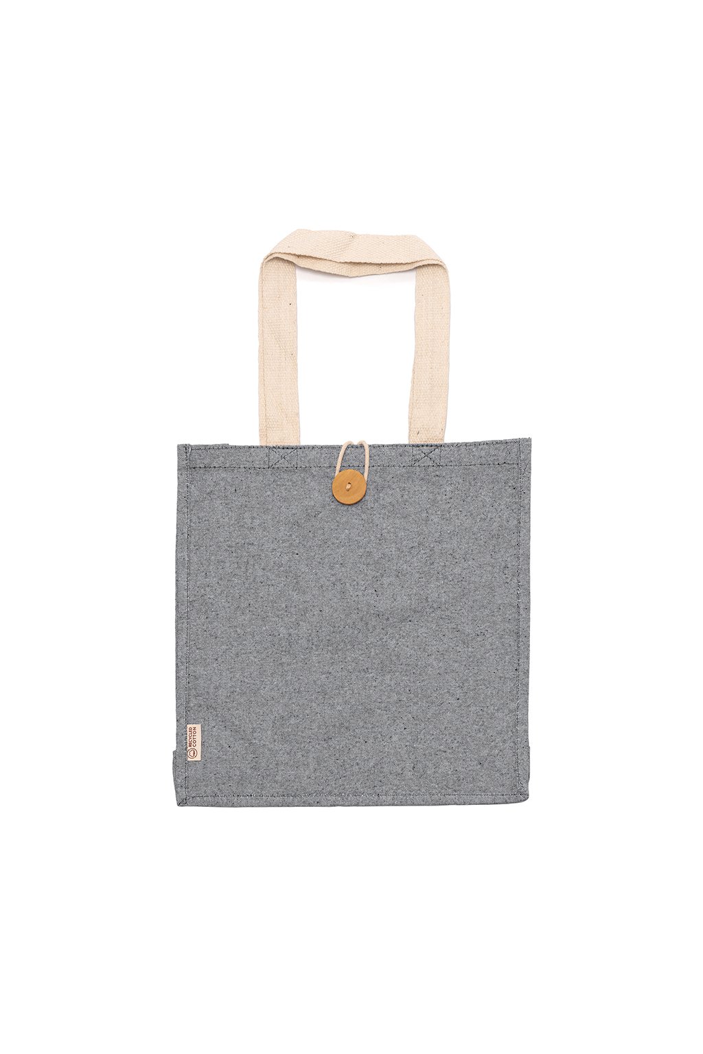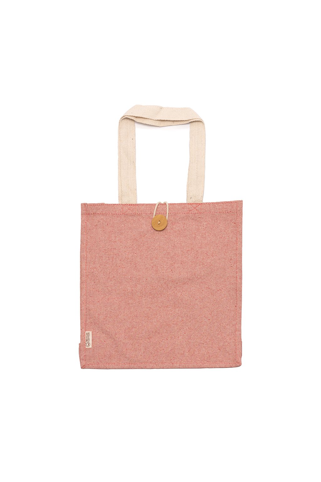 Taška z recyklované bavlny ve vřesovém provedení. Zesílená 70 cm dlouhá ucha. Zapínání na knoflíky.
