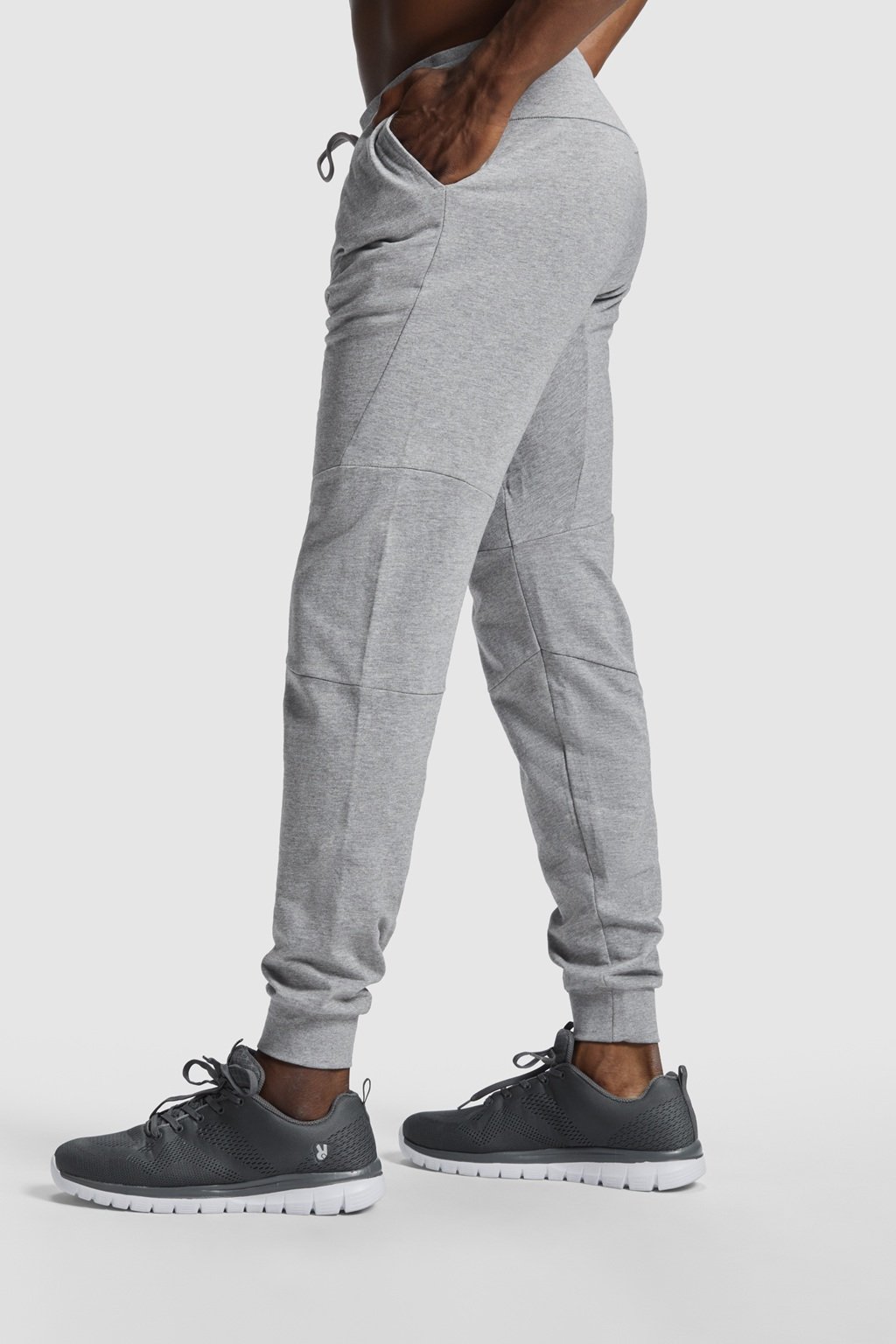 Pánské teplákové kalhoty s pružným pasem a nastavitelnou vnější šňůrkou.